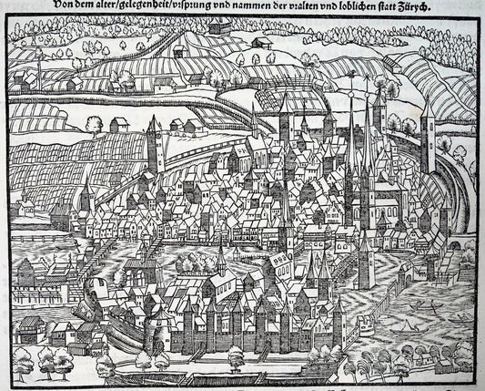 1548 Joh. Stumpf - Solothurn Switzerland - Master Woodcut - Map, Town Plan