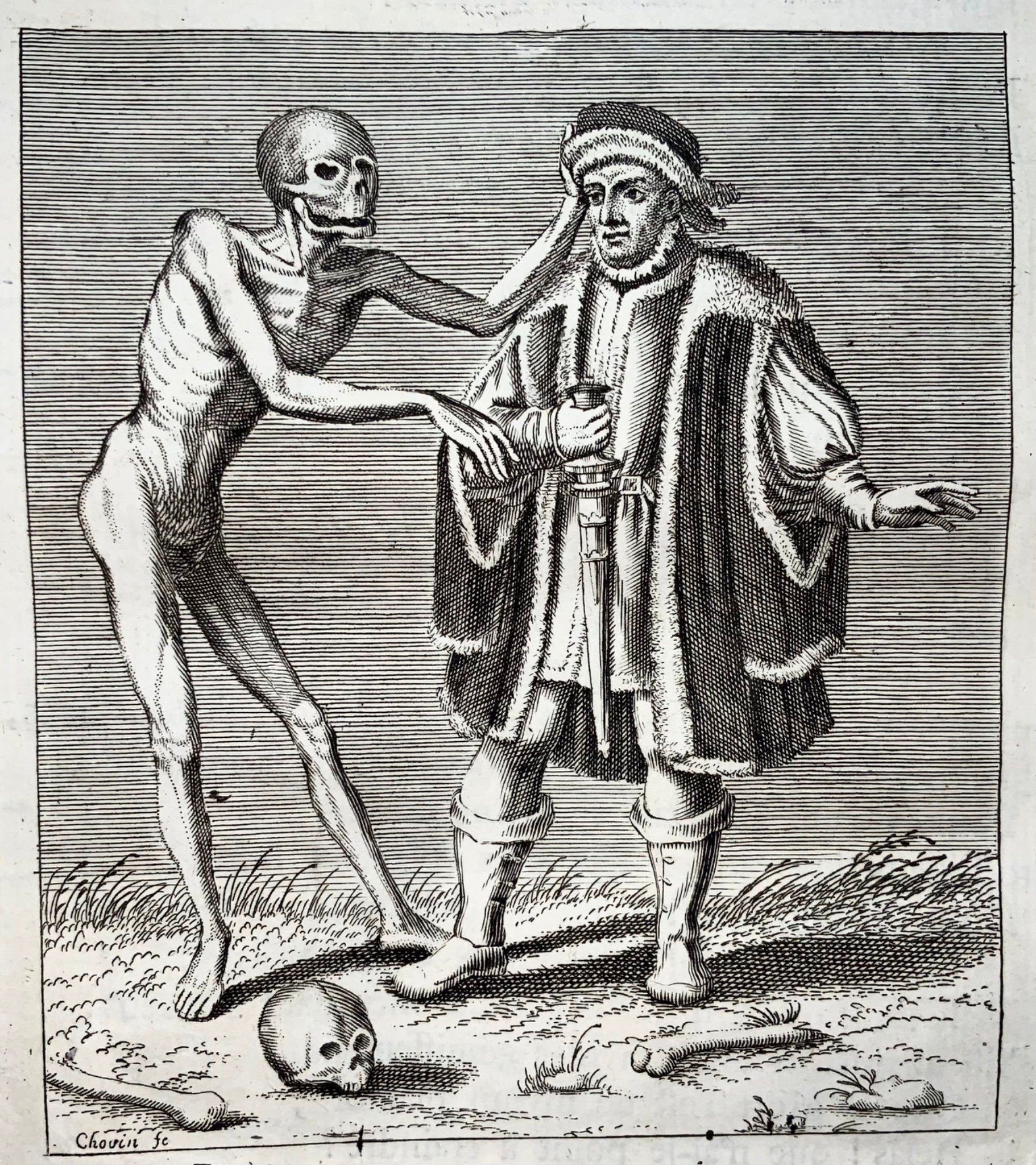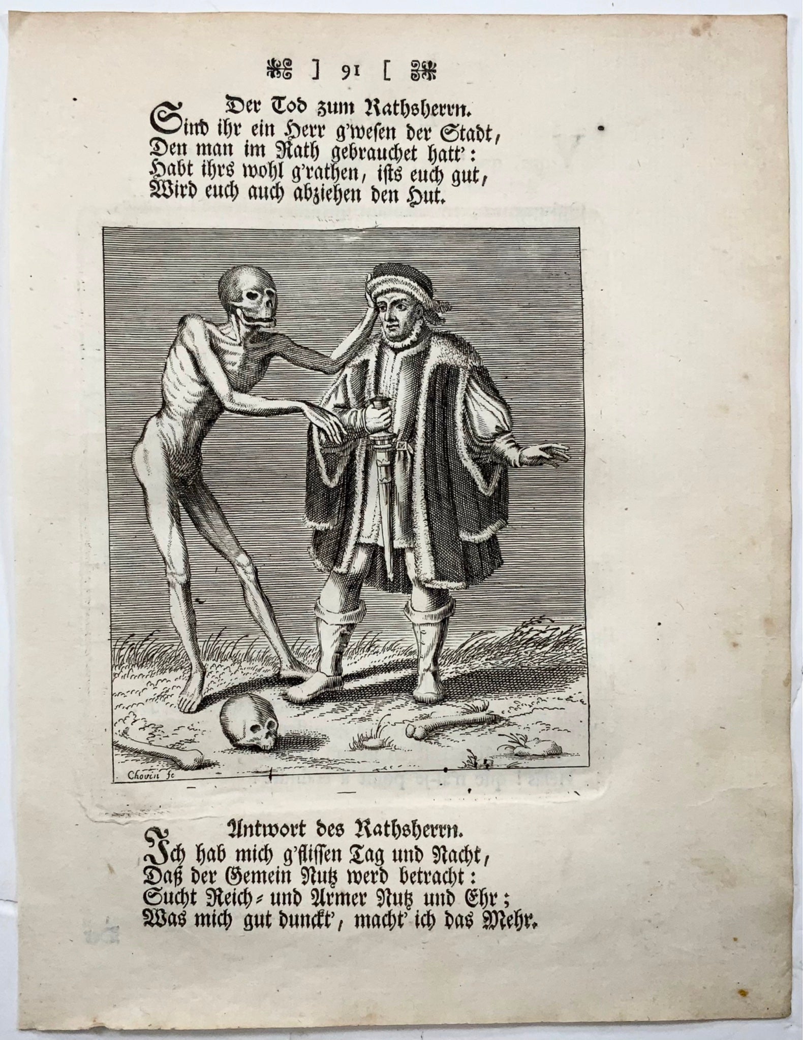 1744 Merian, Dance of Death, the Senator, copper engraving