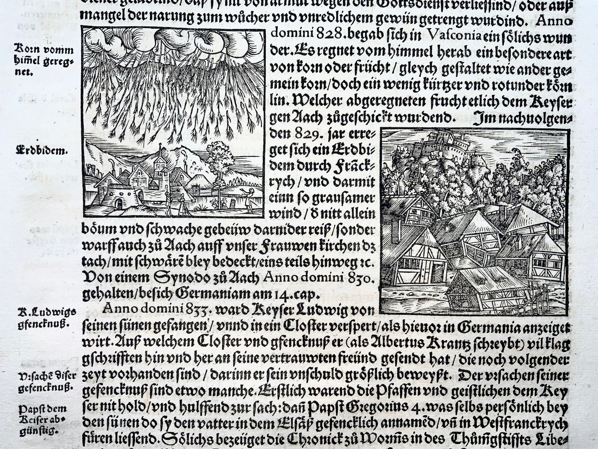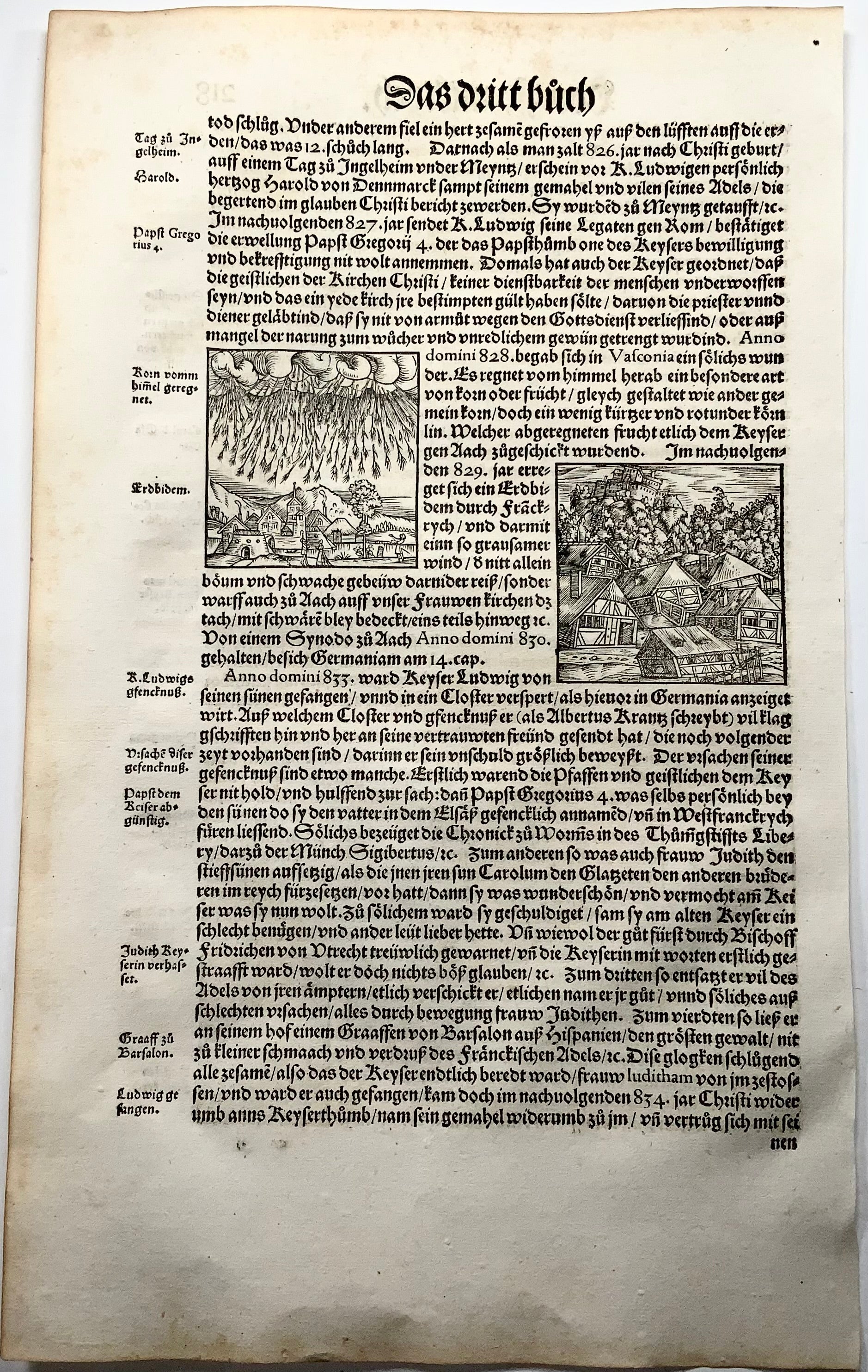 1548 Heinrich Vogtherr (the Elder) (1490-1556): Folio with woodcuts: Portents of Doom, Raining Corn, Earthquake
