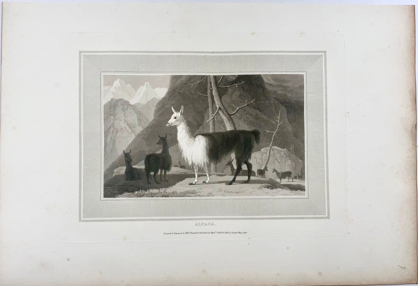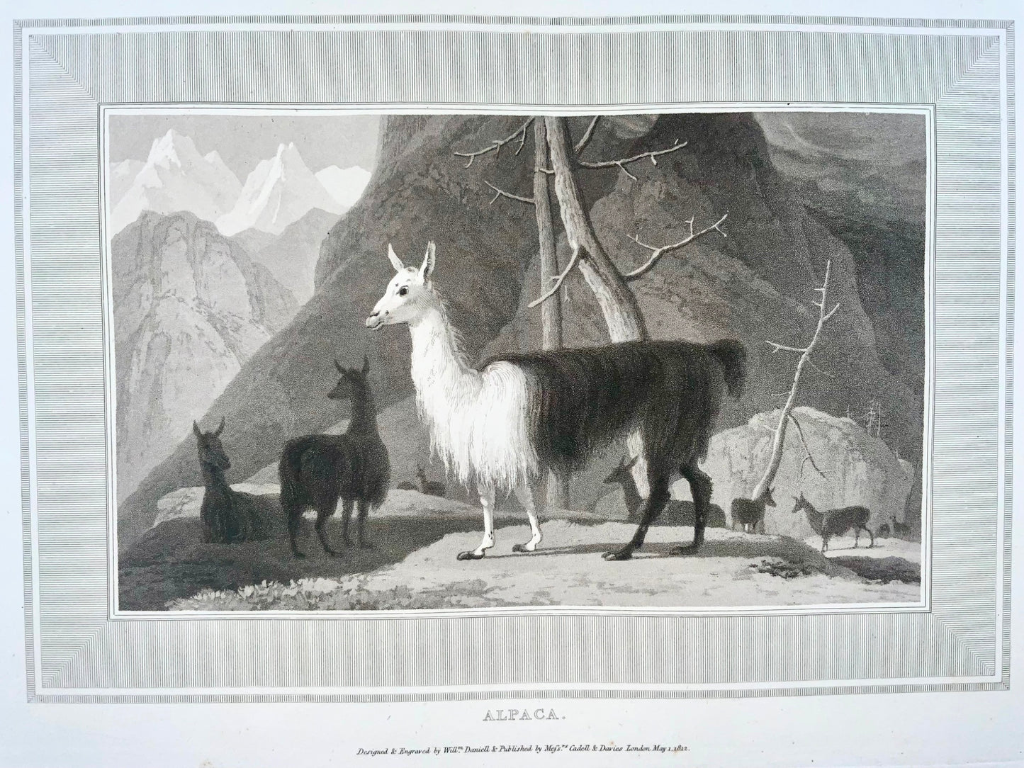 1807 William Daniell, Alpaca, mammal, fine folio aquatint