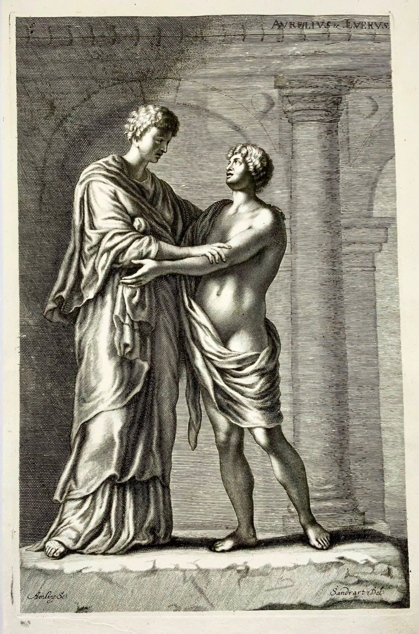 1676 Aurelius & Lucius Verus, J.J. Sandrart del., Amling sc., folio engraving, classical art