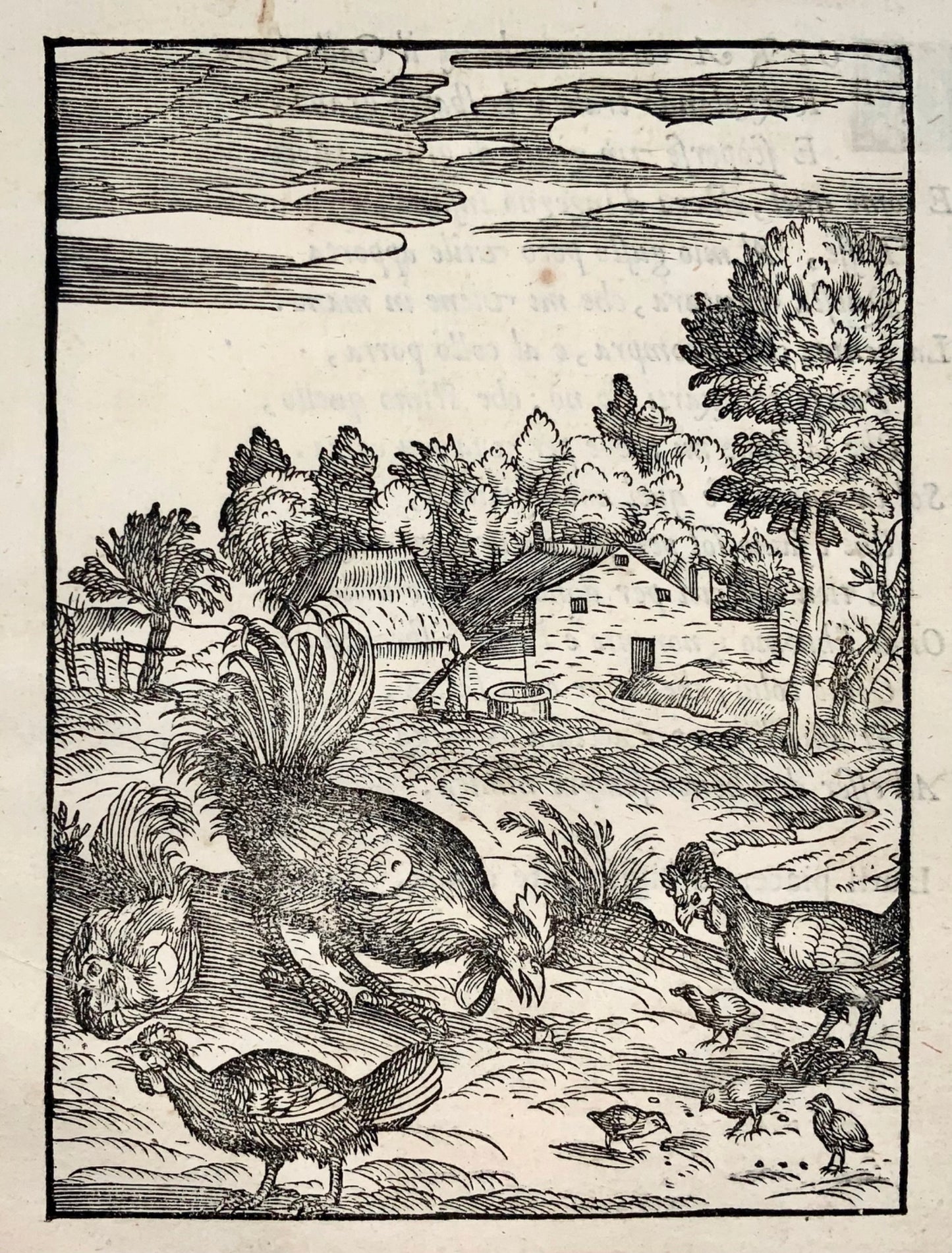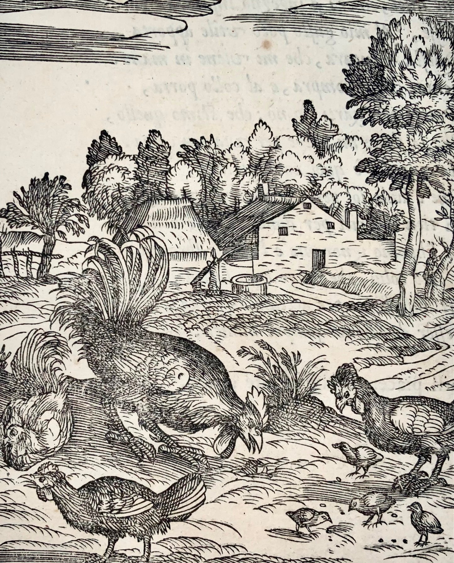 1570 Giovanni Maria Verdizzotti (1525-1600) - woodcut leaf - Poultry Gallo - Ornithology
