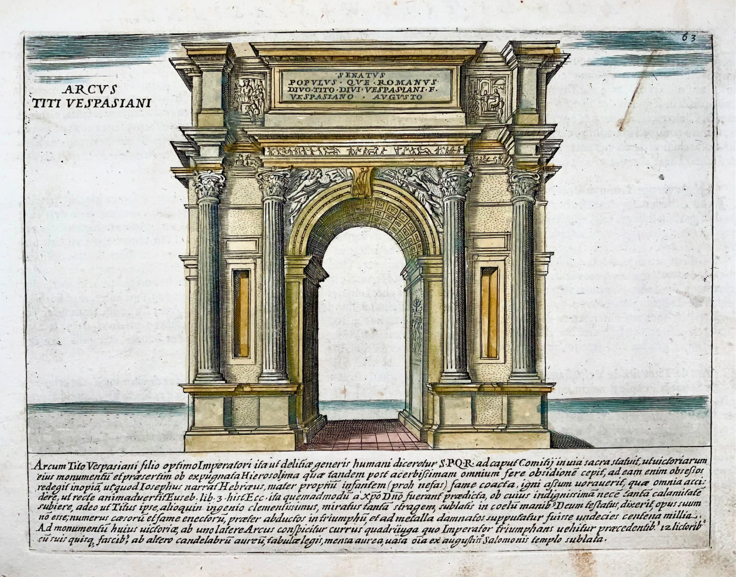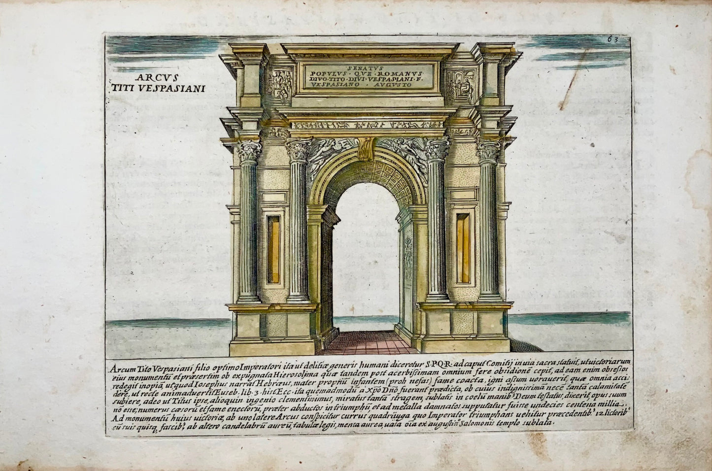 1624 Laurus (Lauro), Arch of Titus Vespasian, Rome, hand coloured engraving