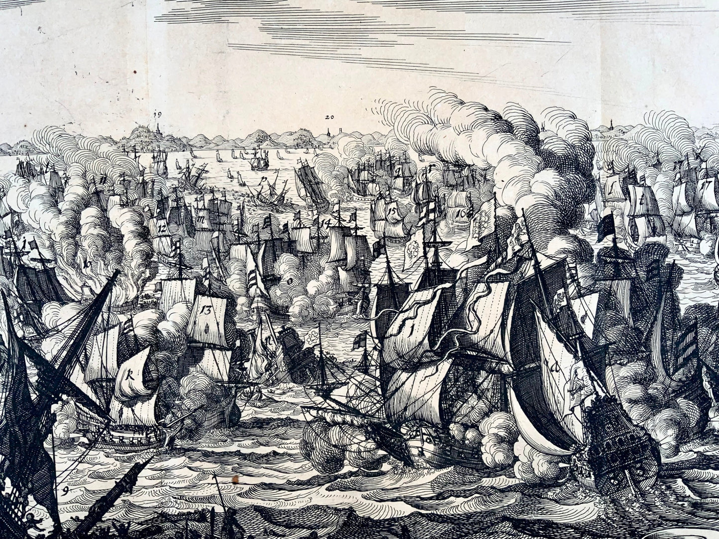 Superb naval battle scene depicted during the First Anglo Dutch war.