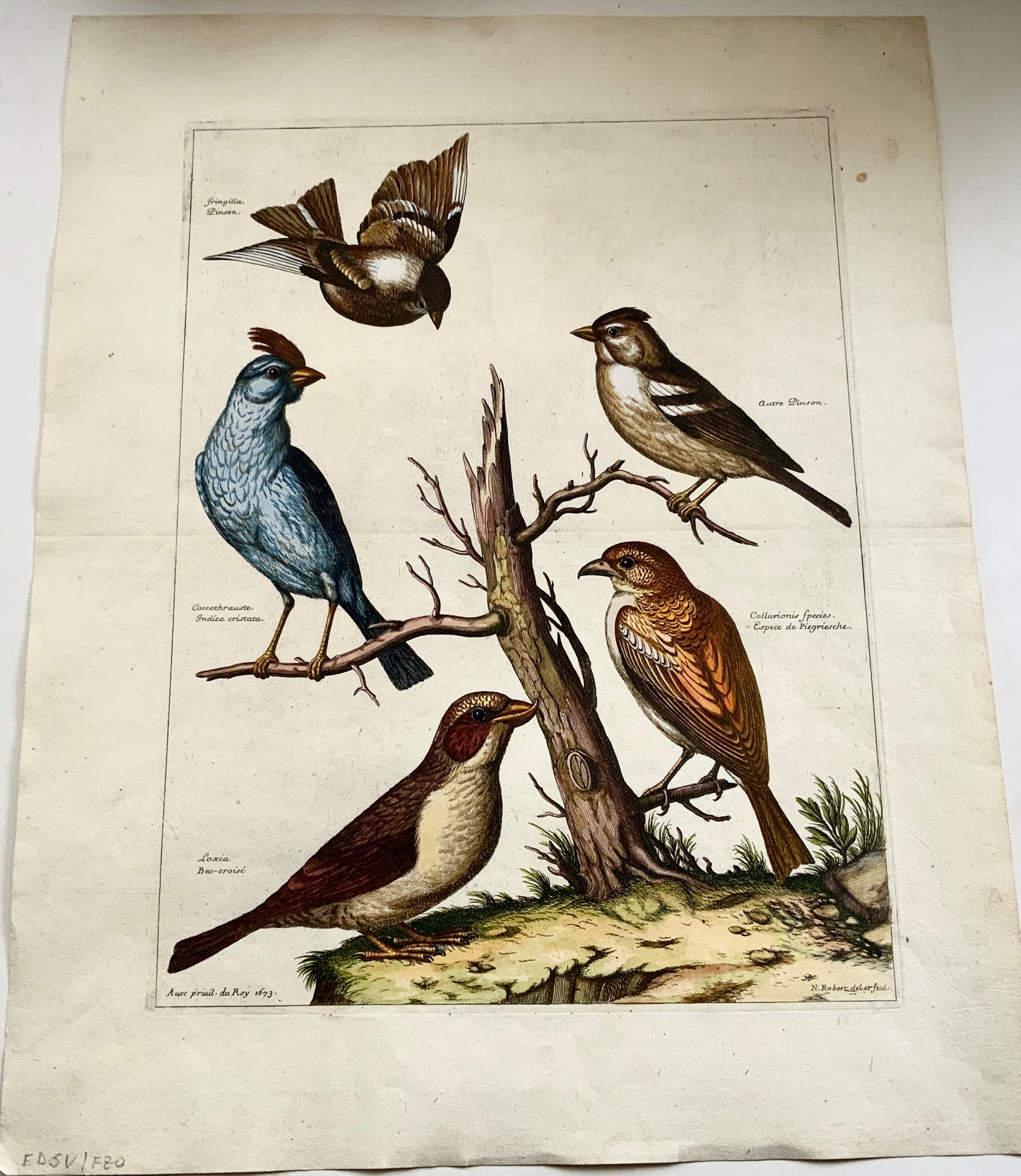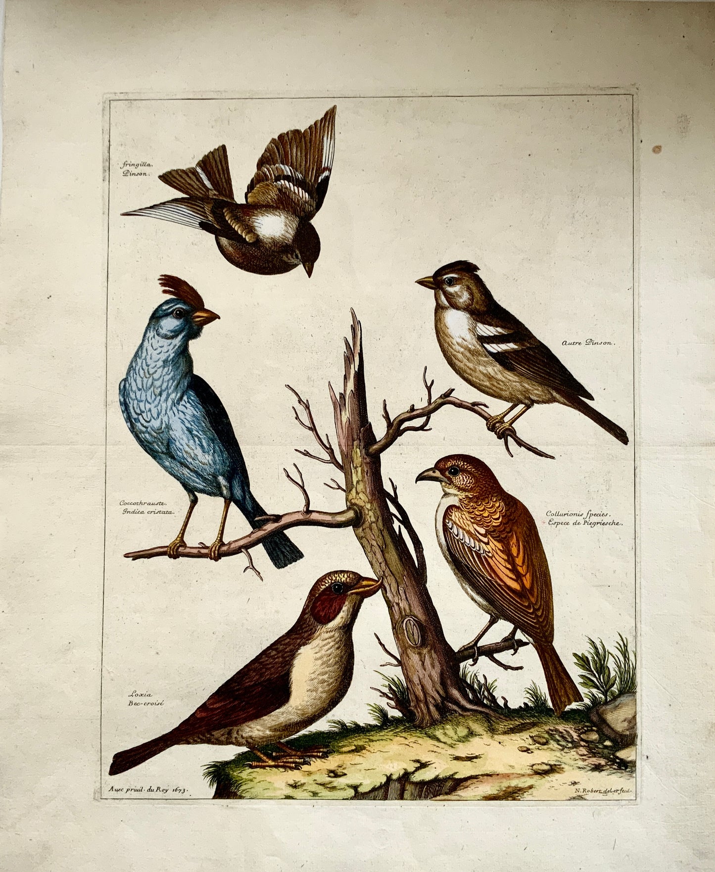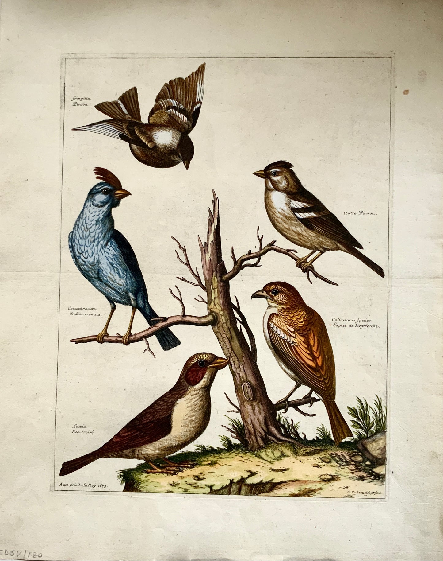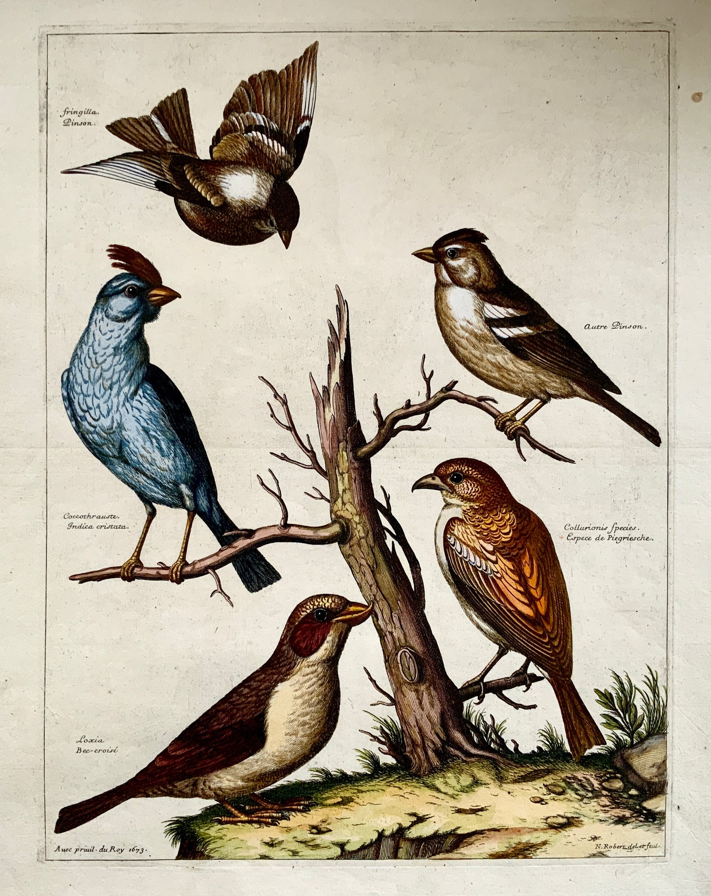 1673 Nicholas Robert (1610-1684); Chaffinch Finch Shrike - 46.5 cm - Ornithology - Master Engraving