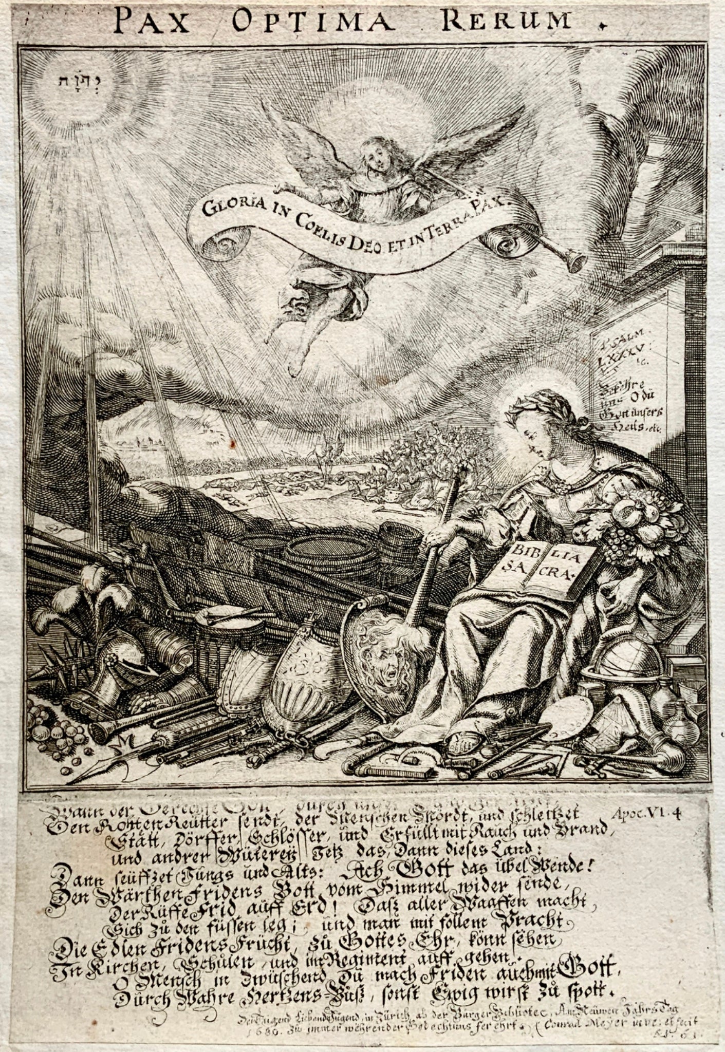 1680 EINBLATTDRUCK Conrad Meyer; Pax Optima Rerum. Gloria un Coelis - Religion