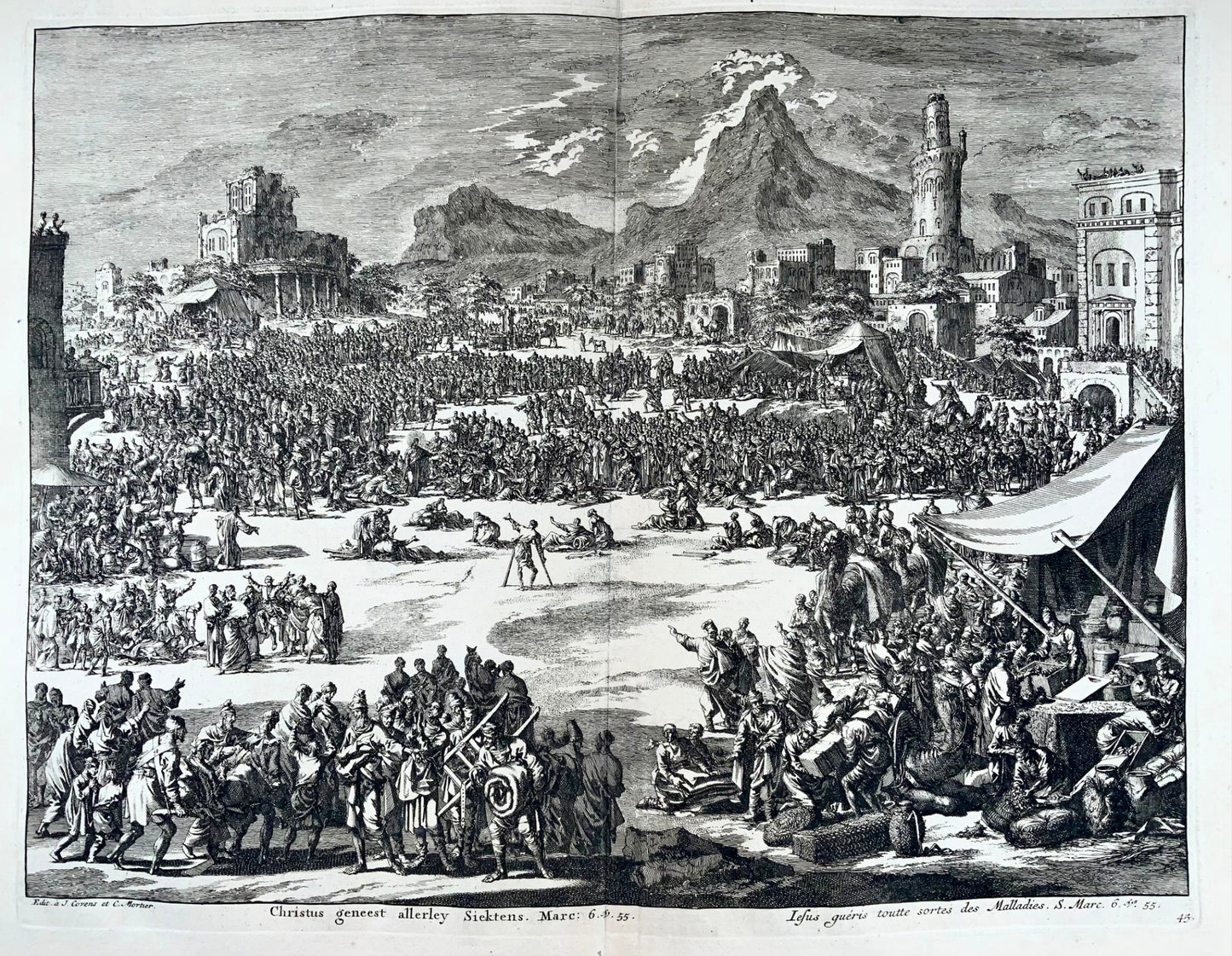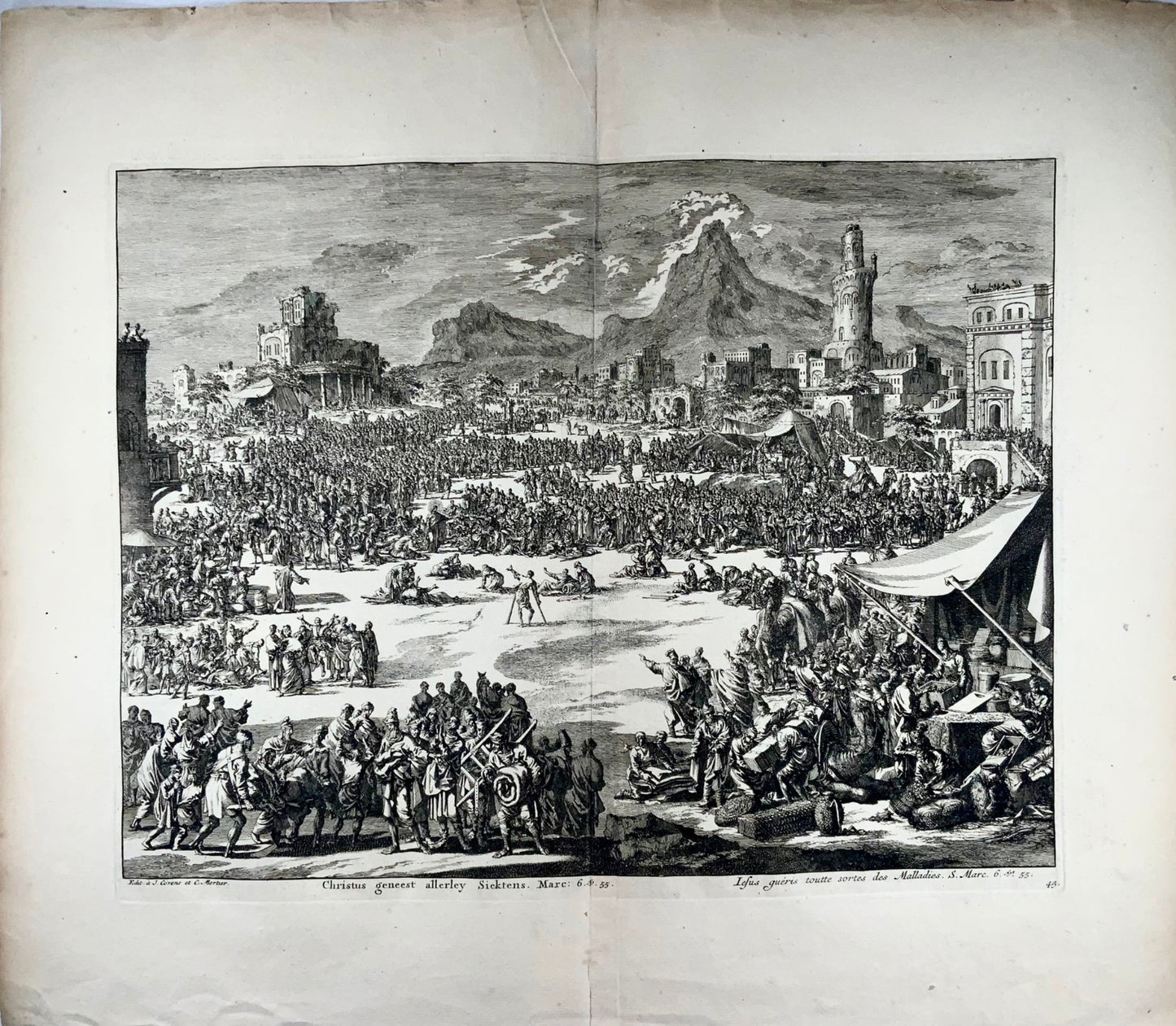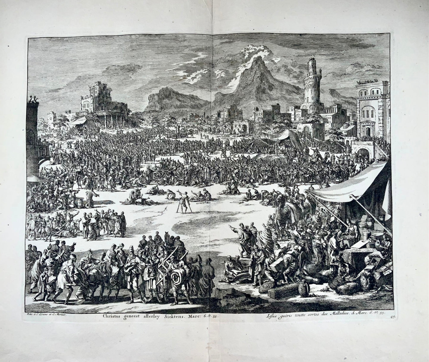 1708 Christ heals the Sick, Joh. Luyken, bible, large double page folio 52.8 cm