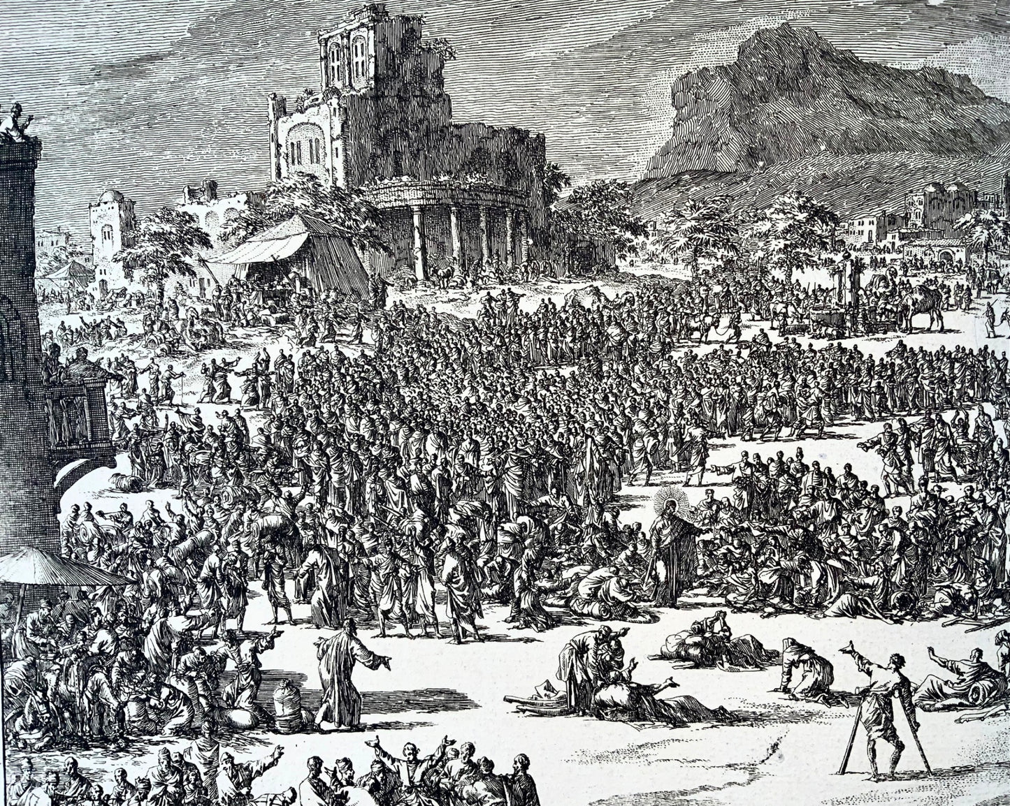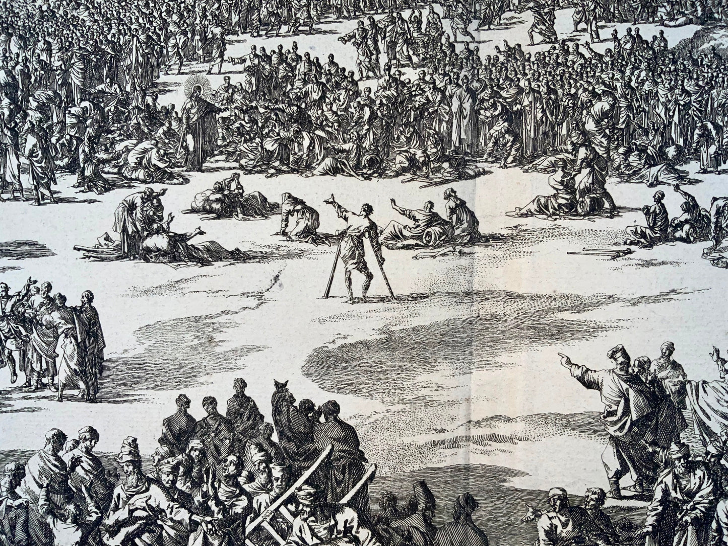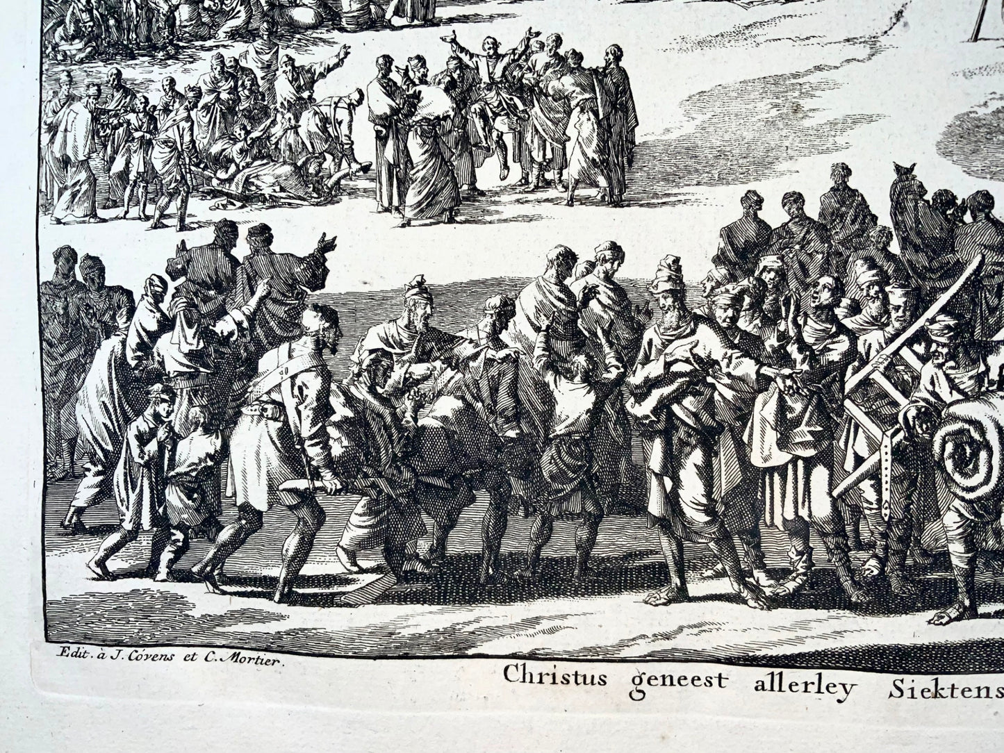 1708 Christ heals the Sick, Joh. Luyken, bible, large double page folio 52.8 cm