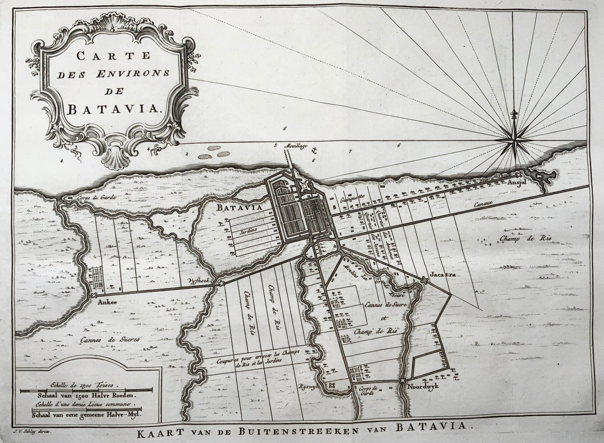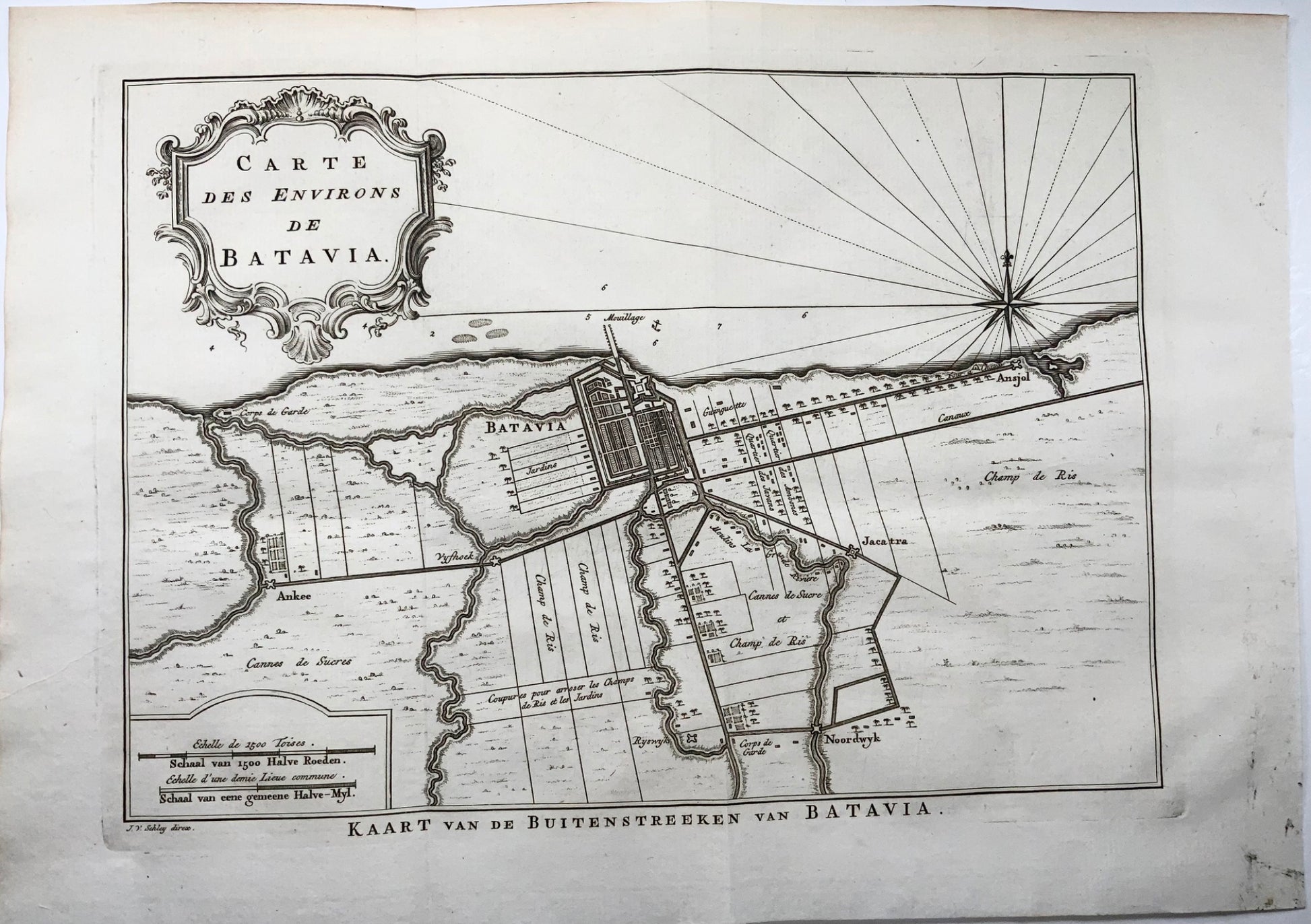 1752 J.V. Schley, Carte des Environs de Batavia, map, Indonesia, Travel