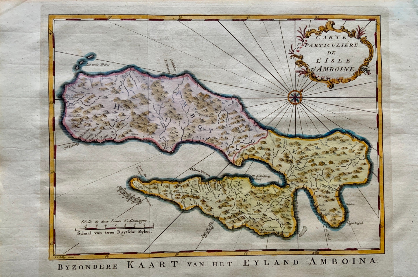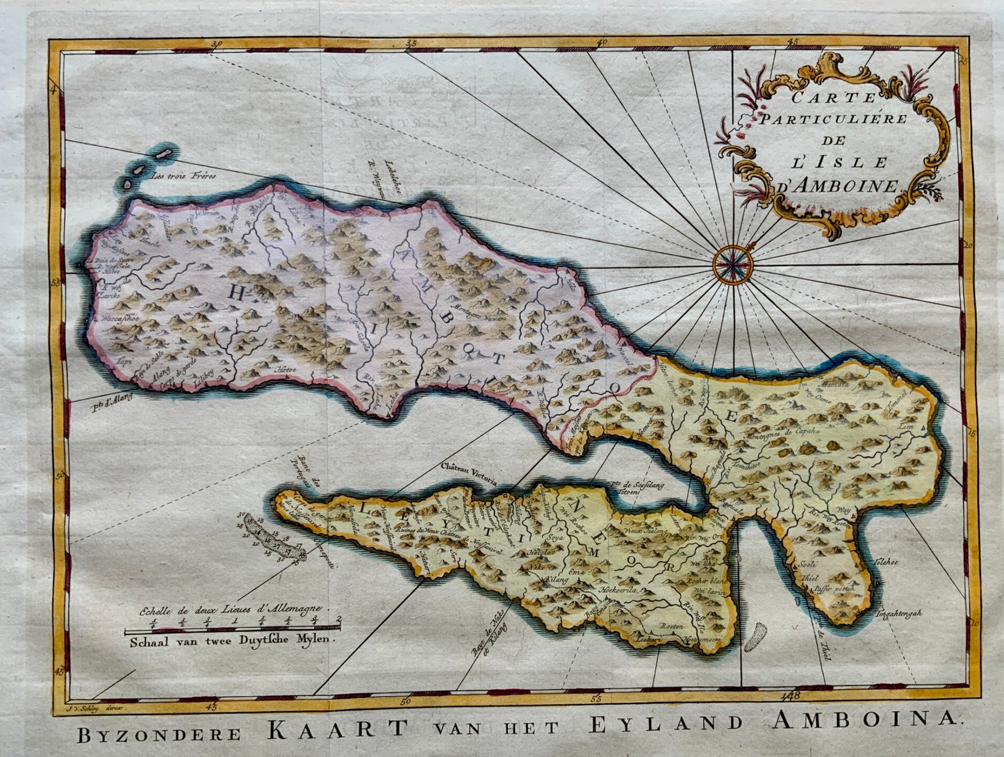 1758 Jakob Schley: Map of Indonesia, Ambon Island, Maluku Islands