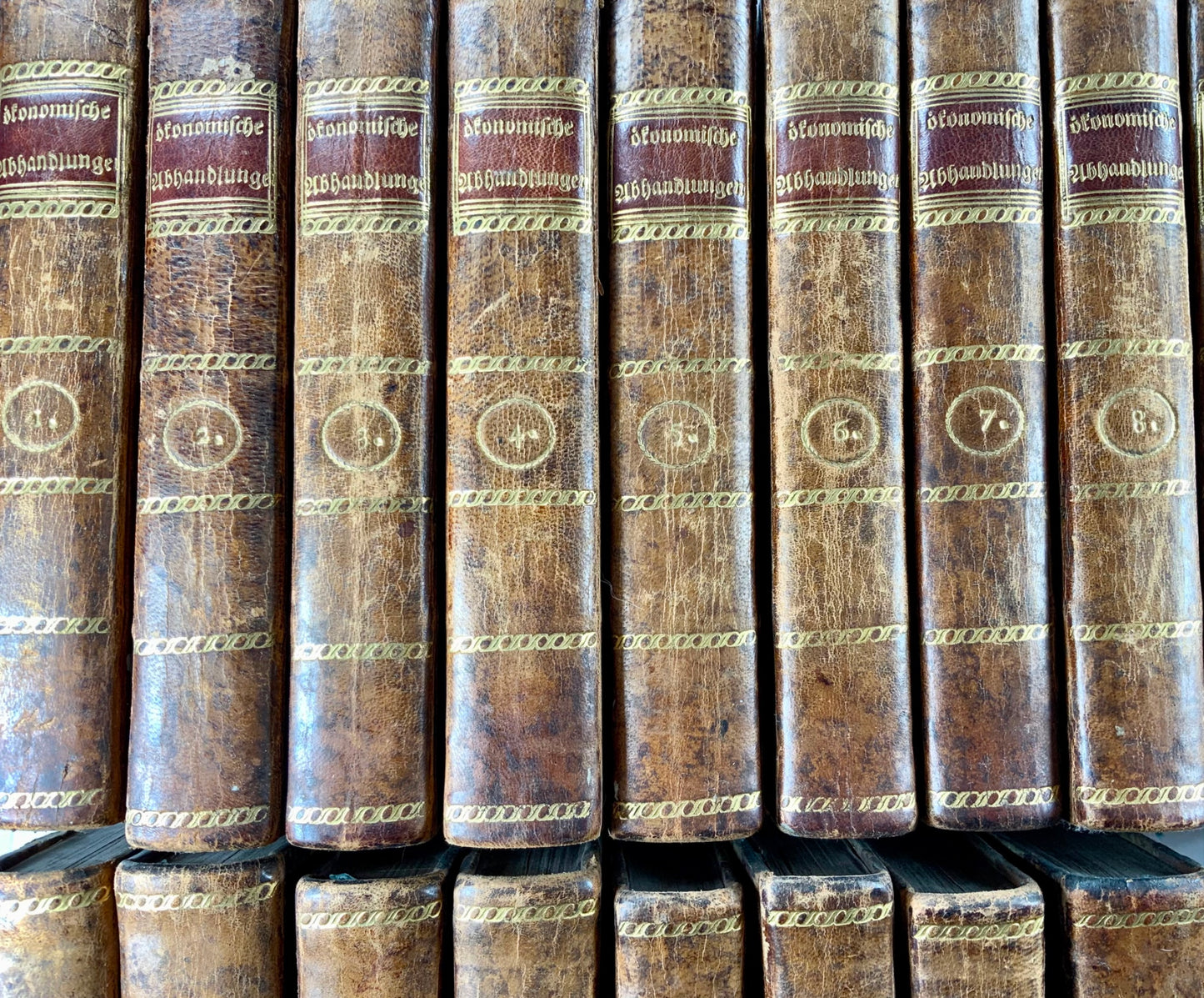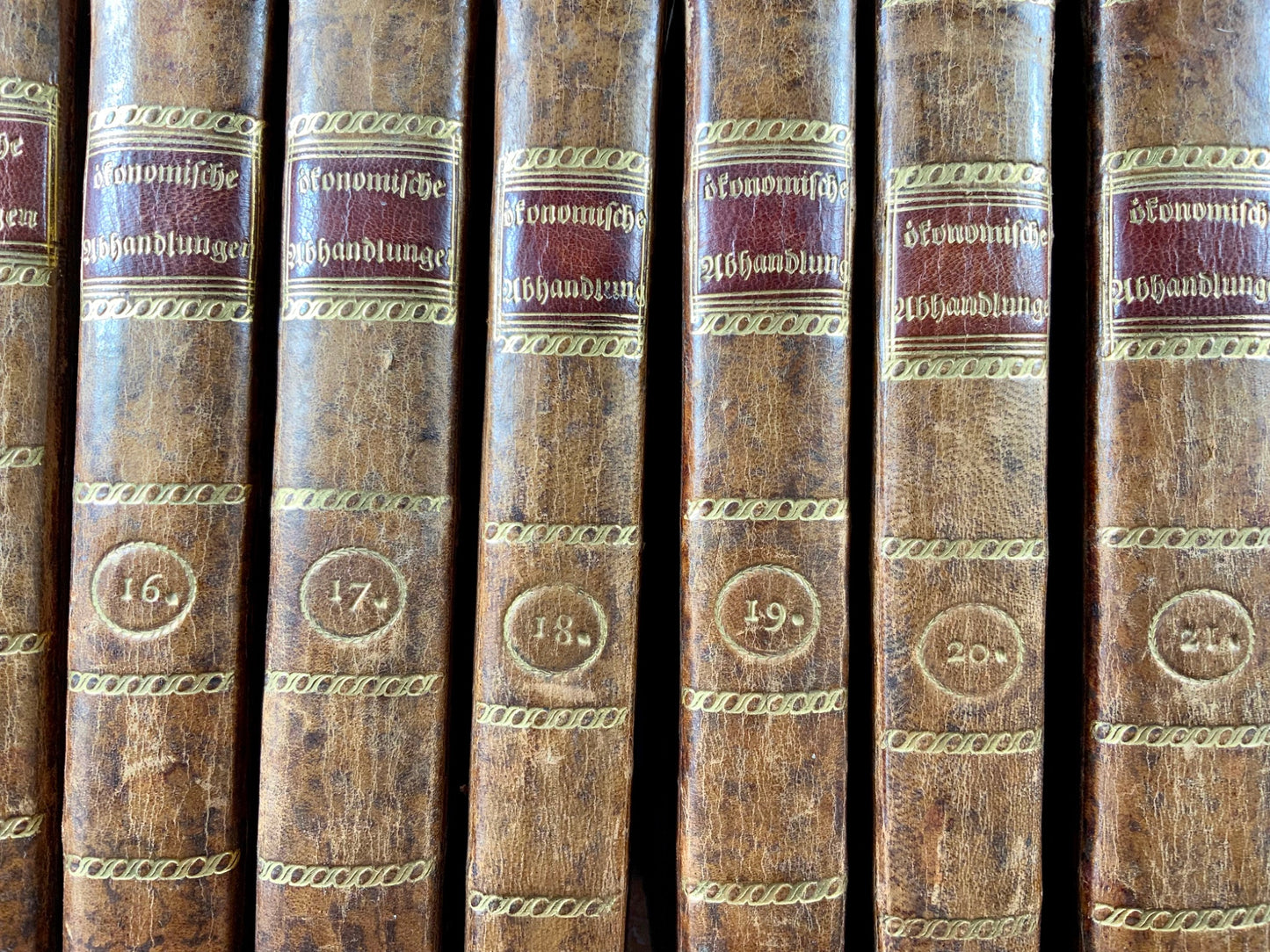 8vo. Complete set, 1760-1773. Economic Society of Berne. Uniformly bound with numerous engravings and tables. Partly with engraved title pages.