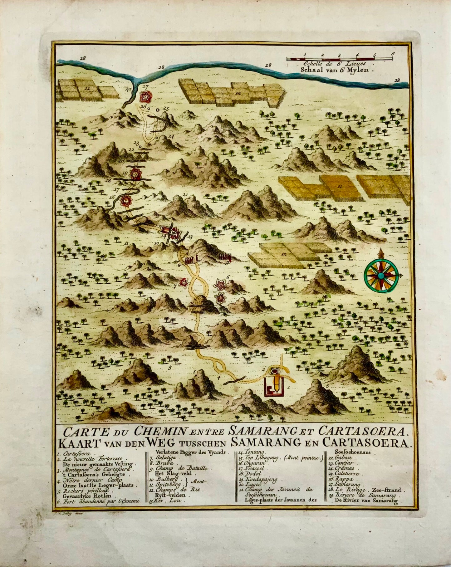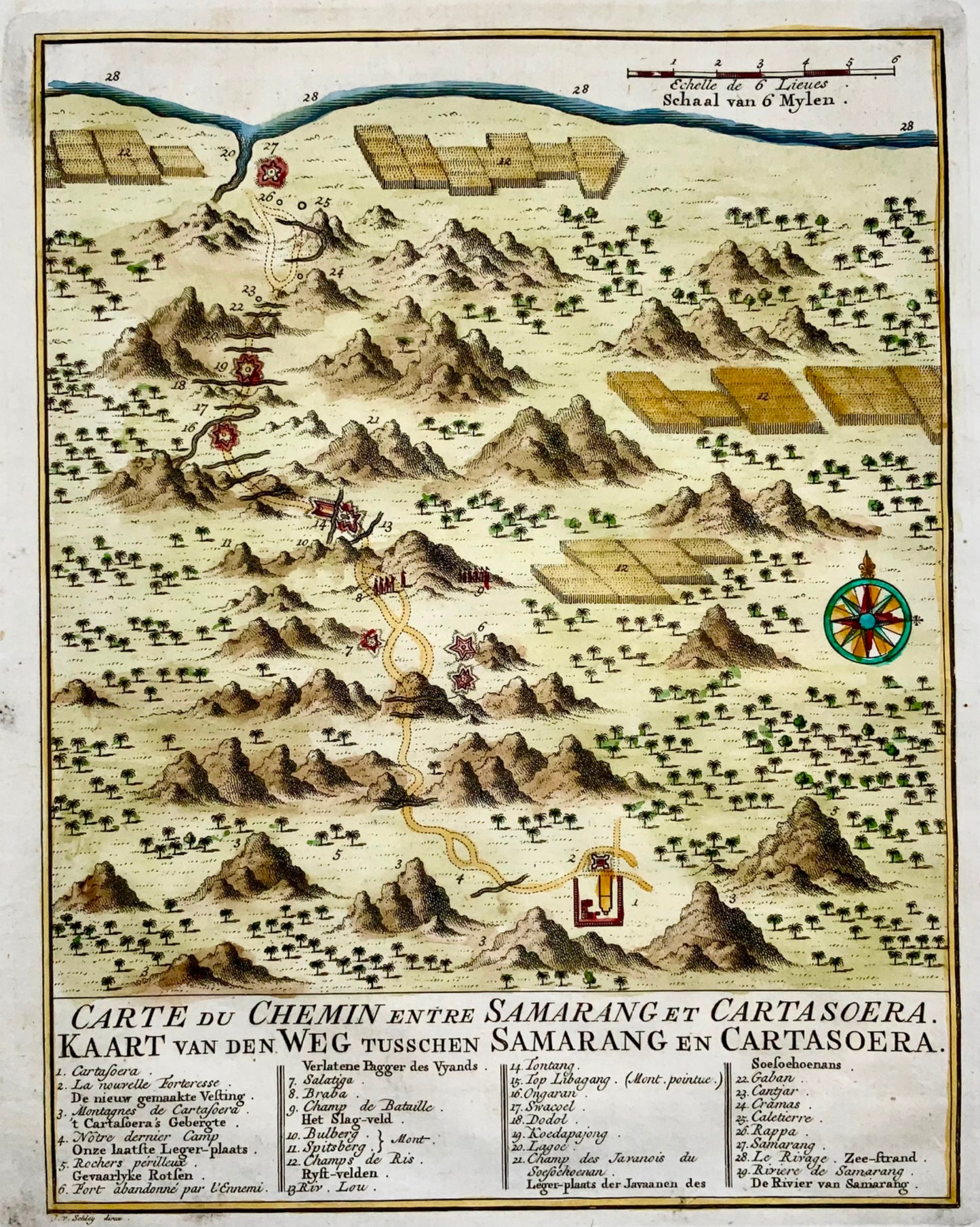 'Carte du Chemin entre Samarang et Cartasoera, kaart van den weg tusschen Samarang en Cartasoera'