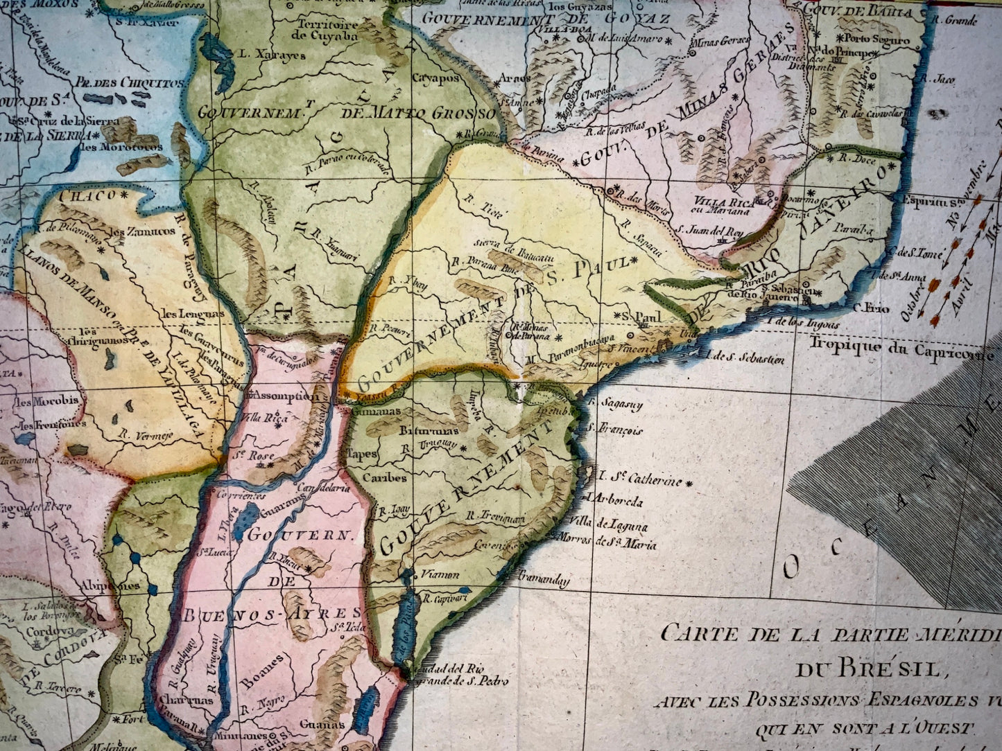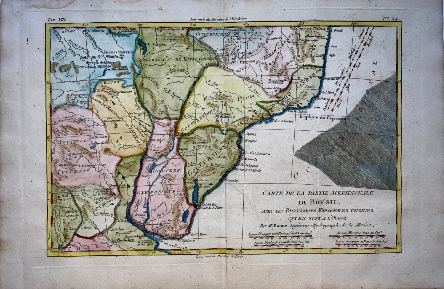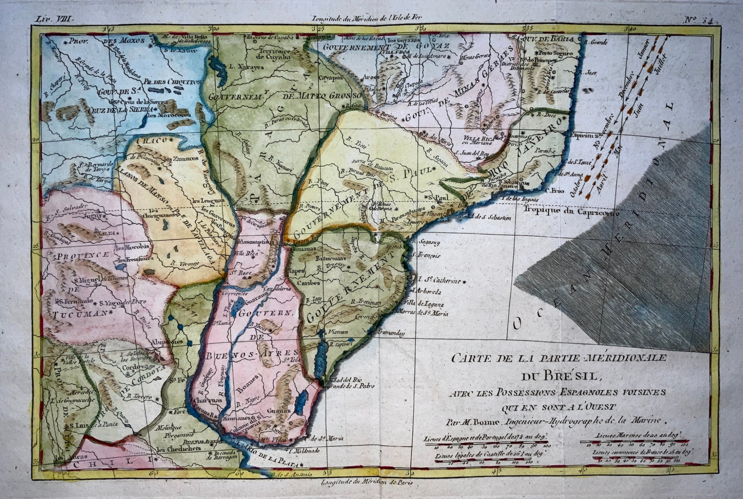 1780 Bonne - Antique Map of BRAZIL URUGUAY PARAGUAY Meridional Bresil
