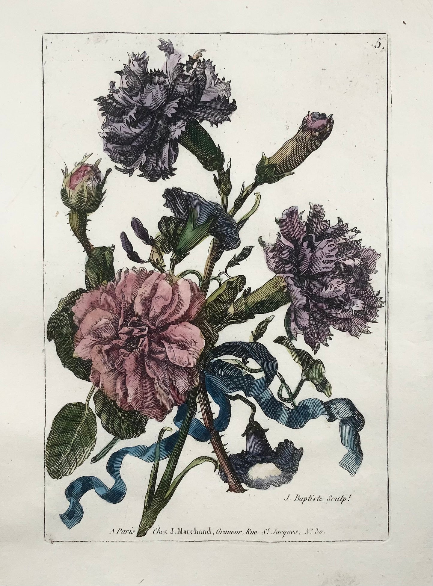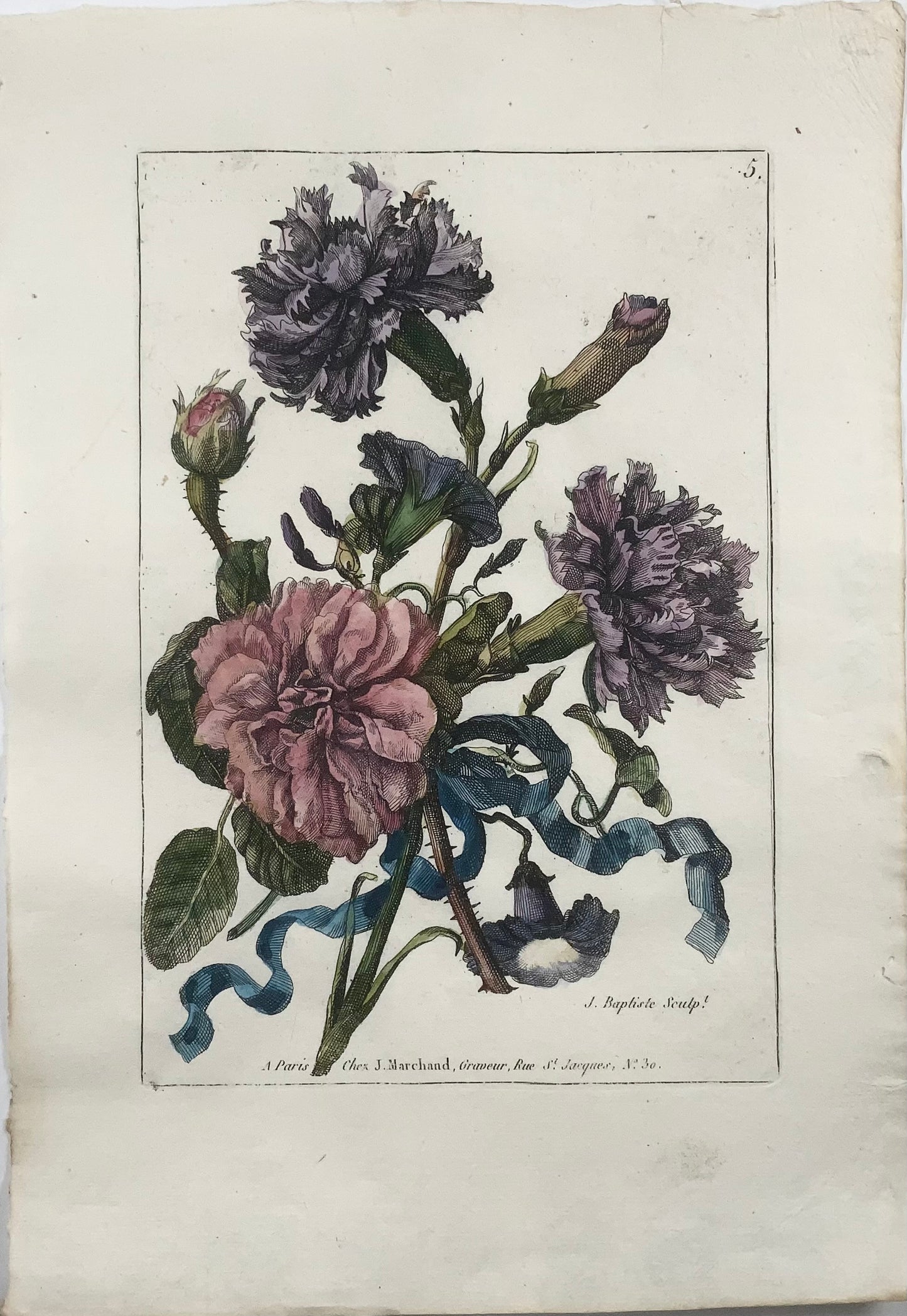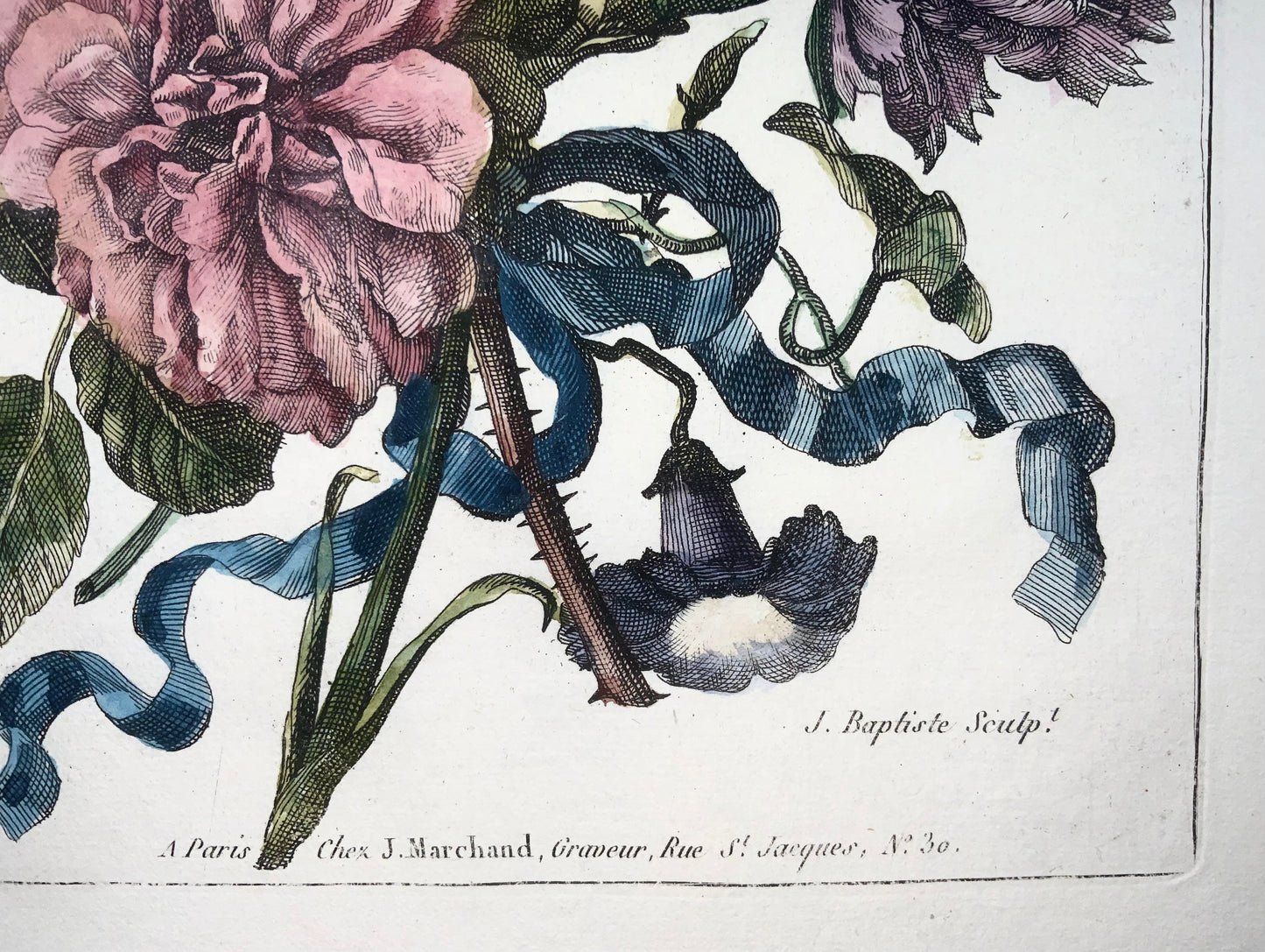 1780 Floral Bouquet, Jean-Baptiste Coste, roses, hand coloured, botany