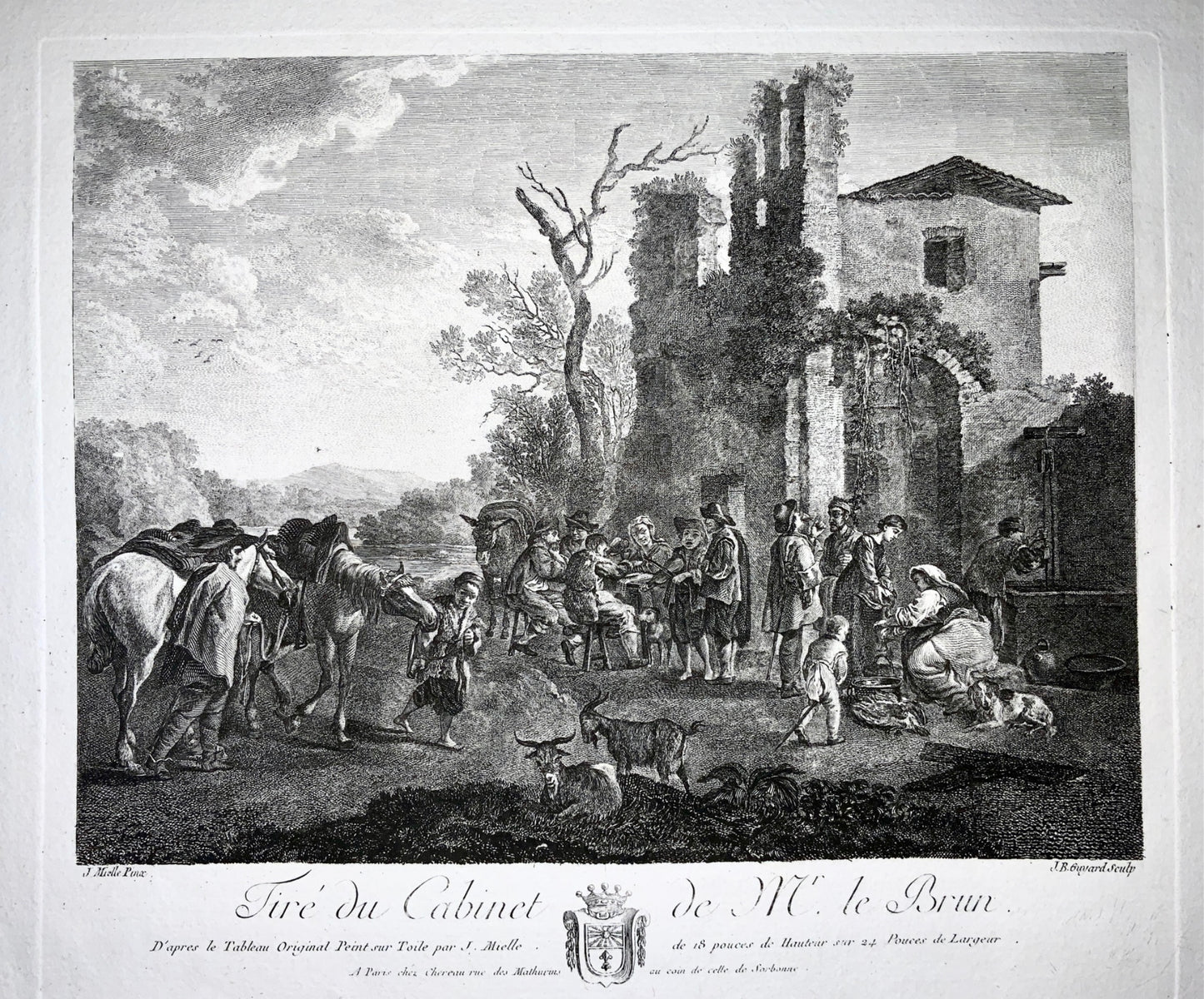 1783 J. Mielle Pinx.; J.B. Guyard Sculp. LANDSCAPE with travellers resting - Classical art