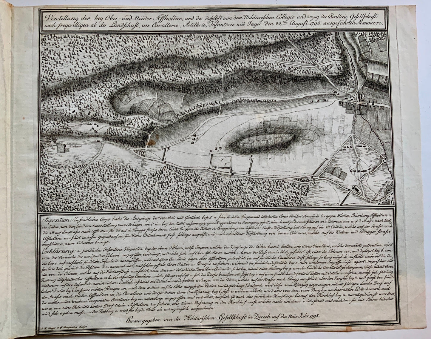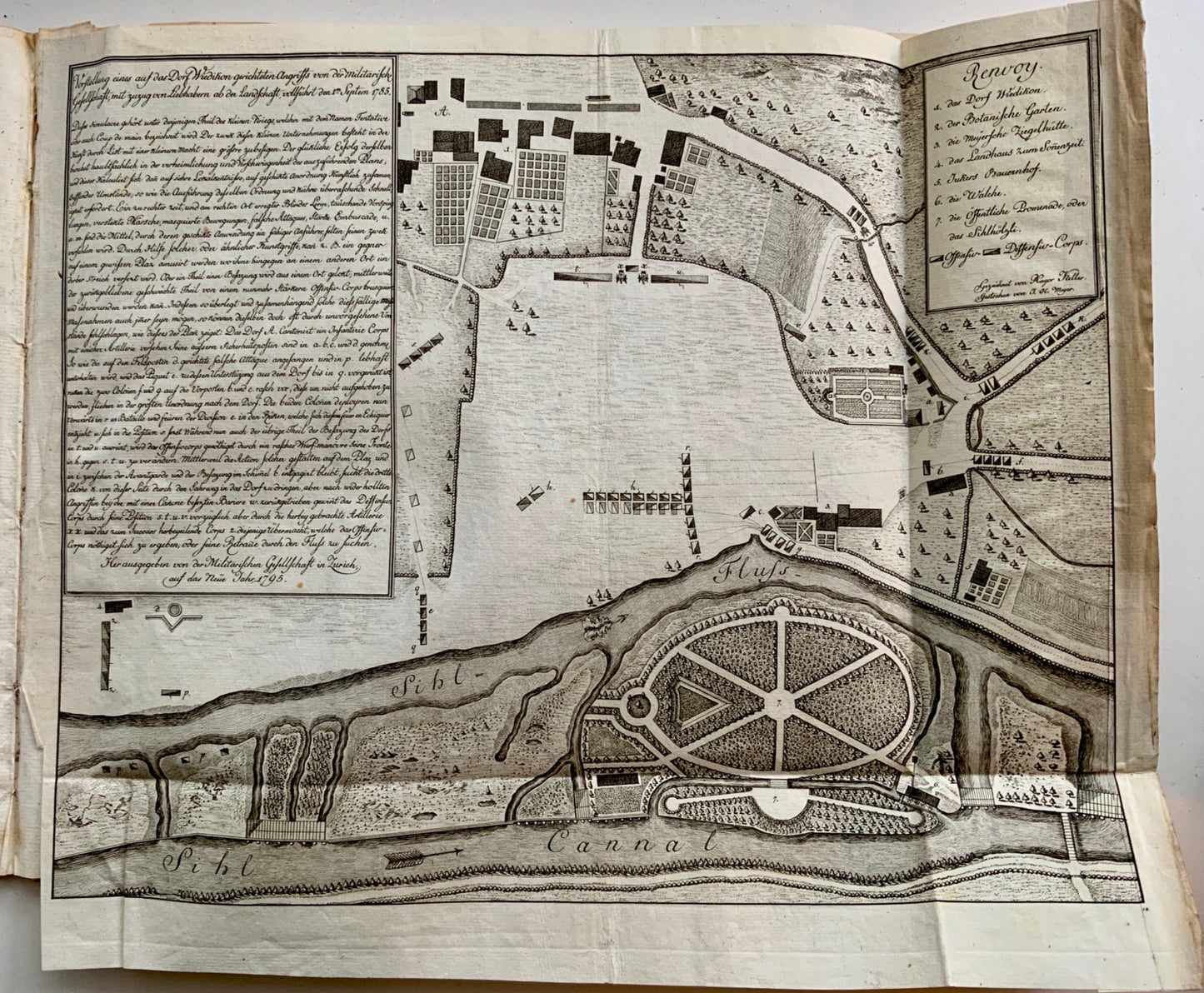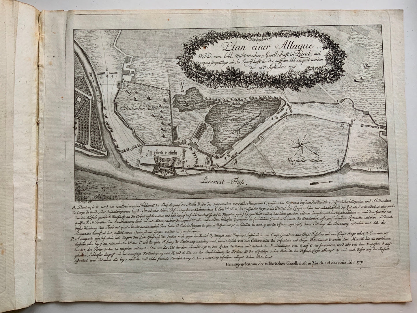 Sammlung derjenigen Final-Exercitien welche von der militärischen Gesellschaft in Zürich theils durch sich selbst, theils mit freywilligen Zuzügern ab der Landschaft vollführt worden / herausgegeben von der militärischen Gesellschaft auf das neue Jahr 1784. Kupfertitel u. 14 Kupfertafeln.