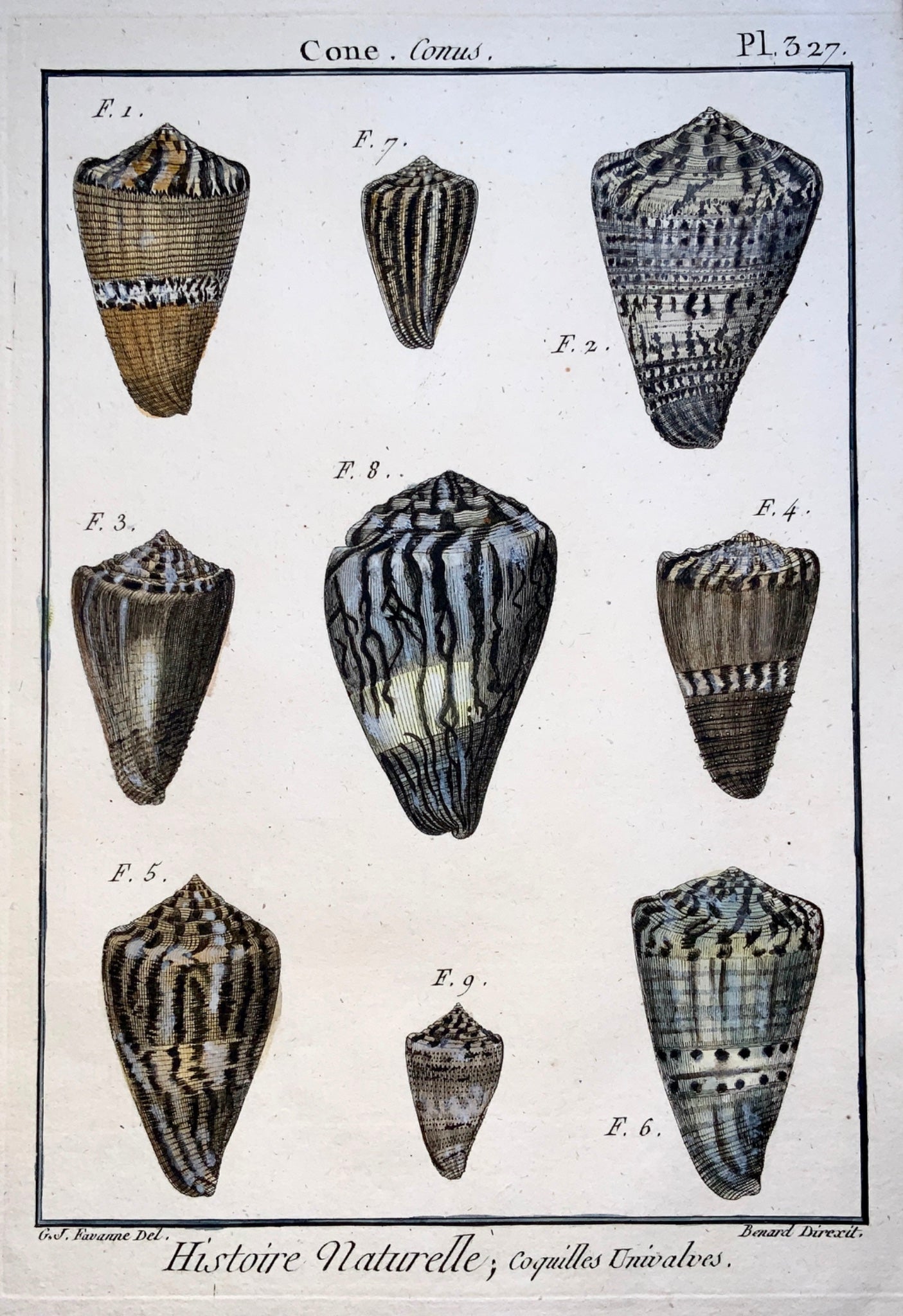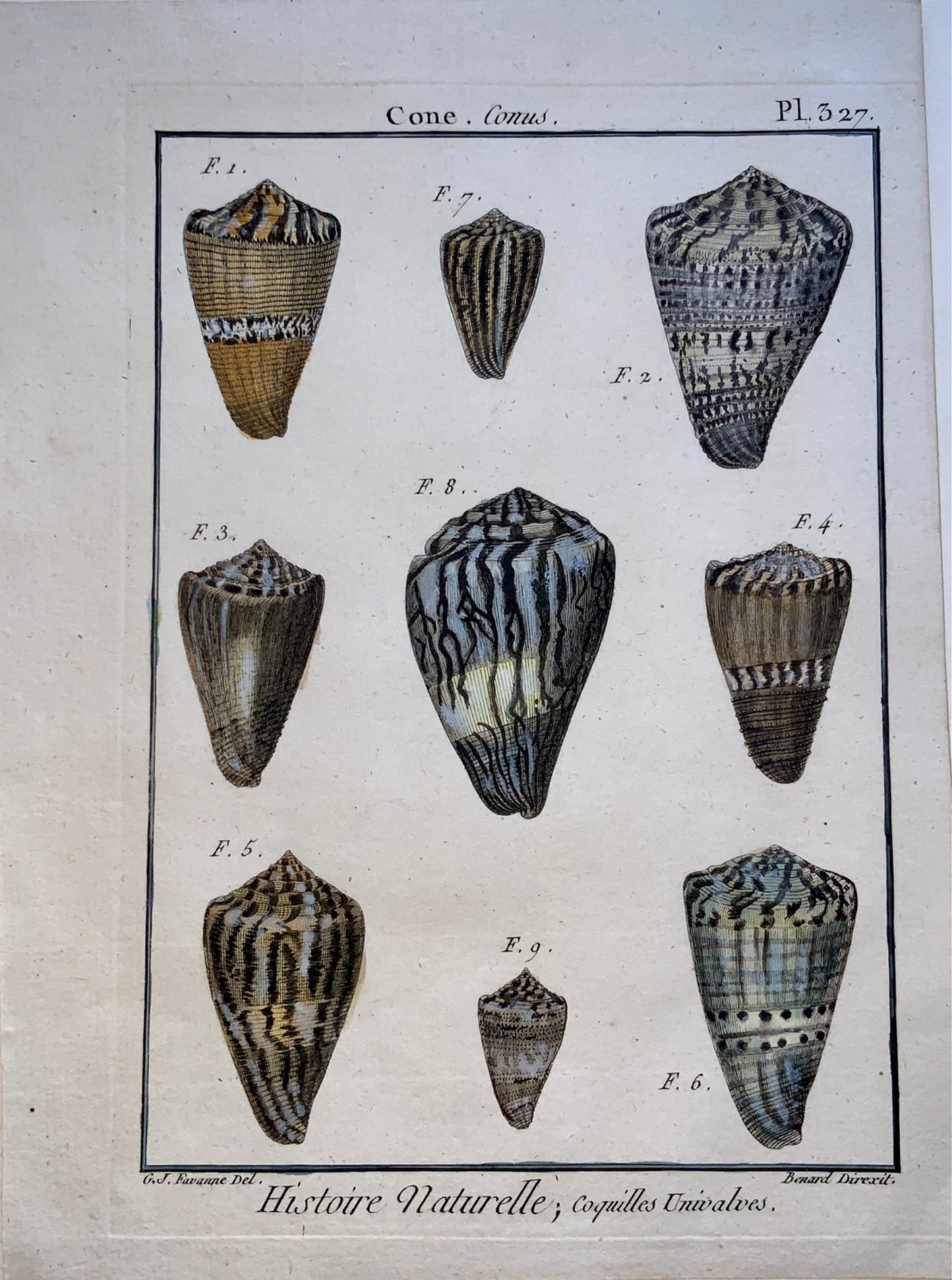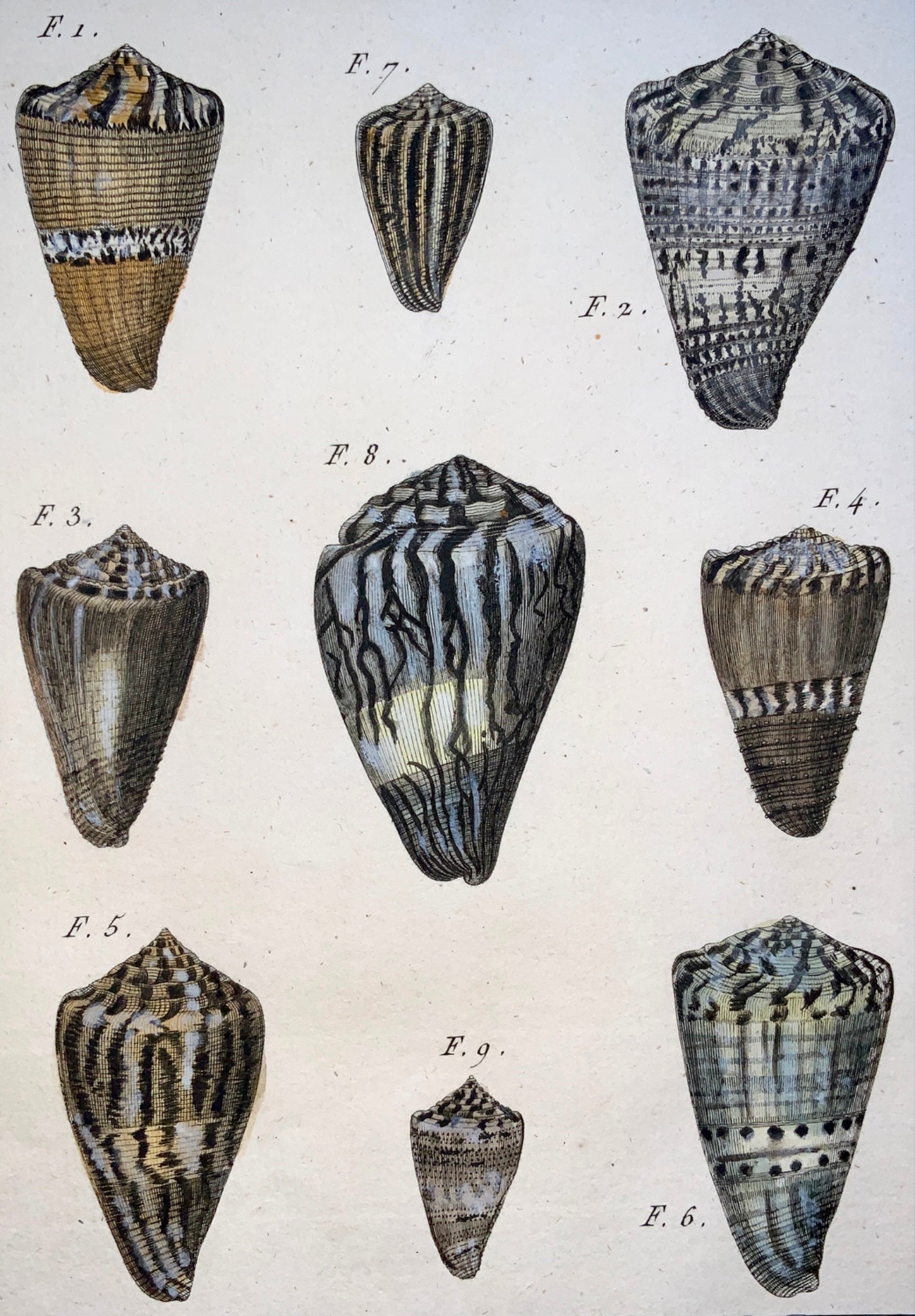 1789 J. G. Favanne; H.J. Redoute - CONE Conus Seashell Conchology hand colour