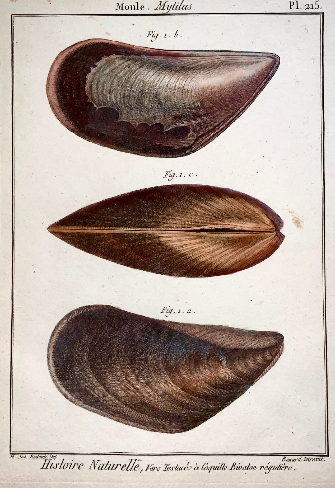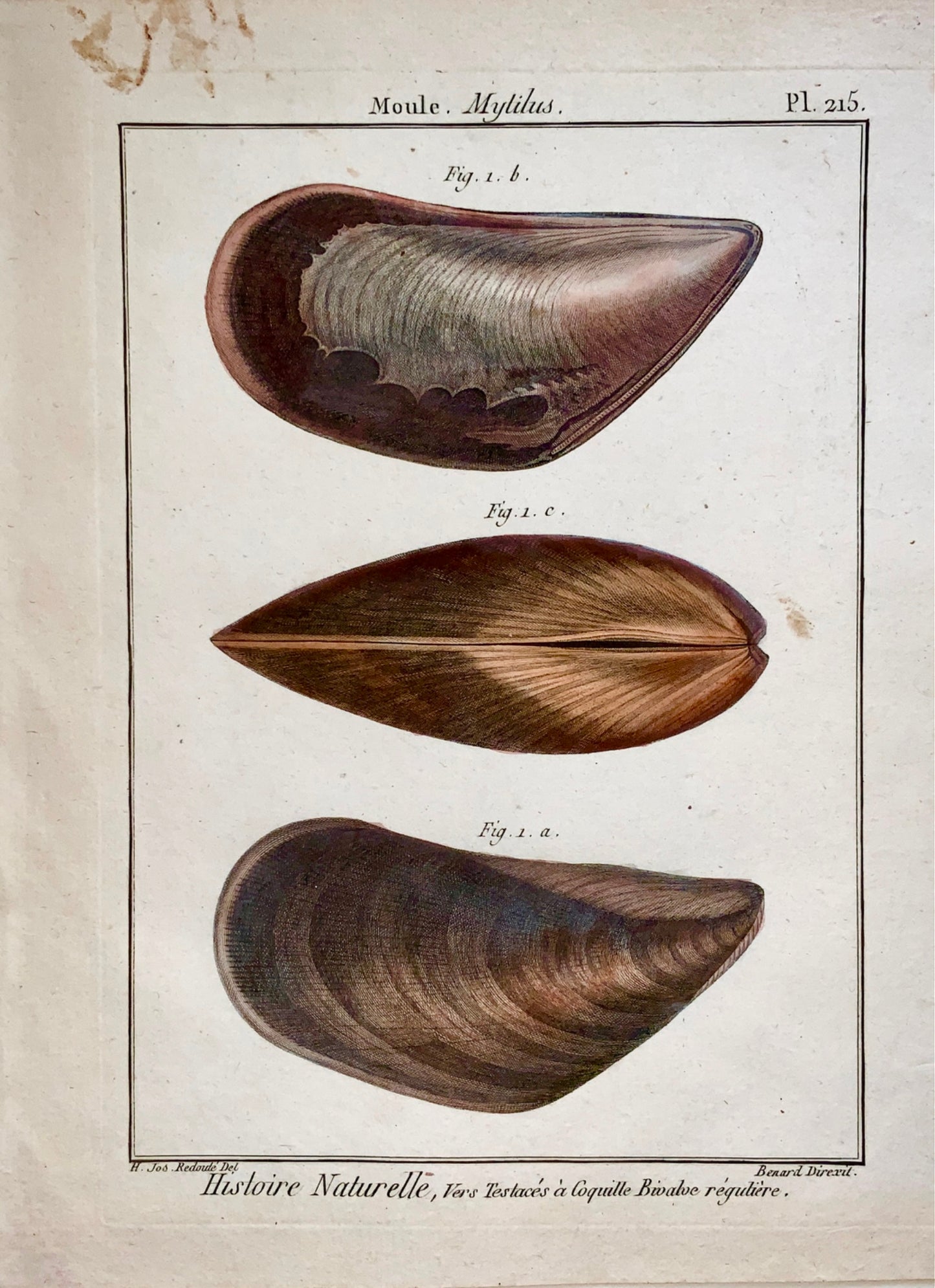 1789 Lamarck; Redoute - MOULE Shell Mussels, Conchology - Hand colour