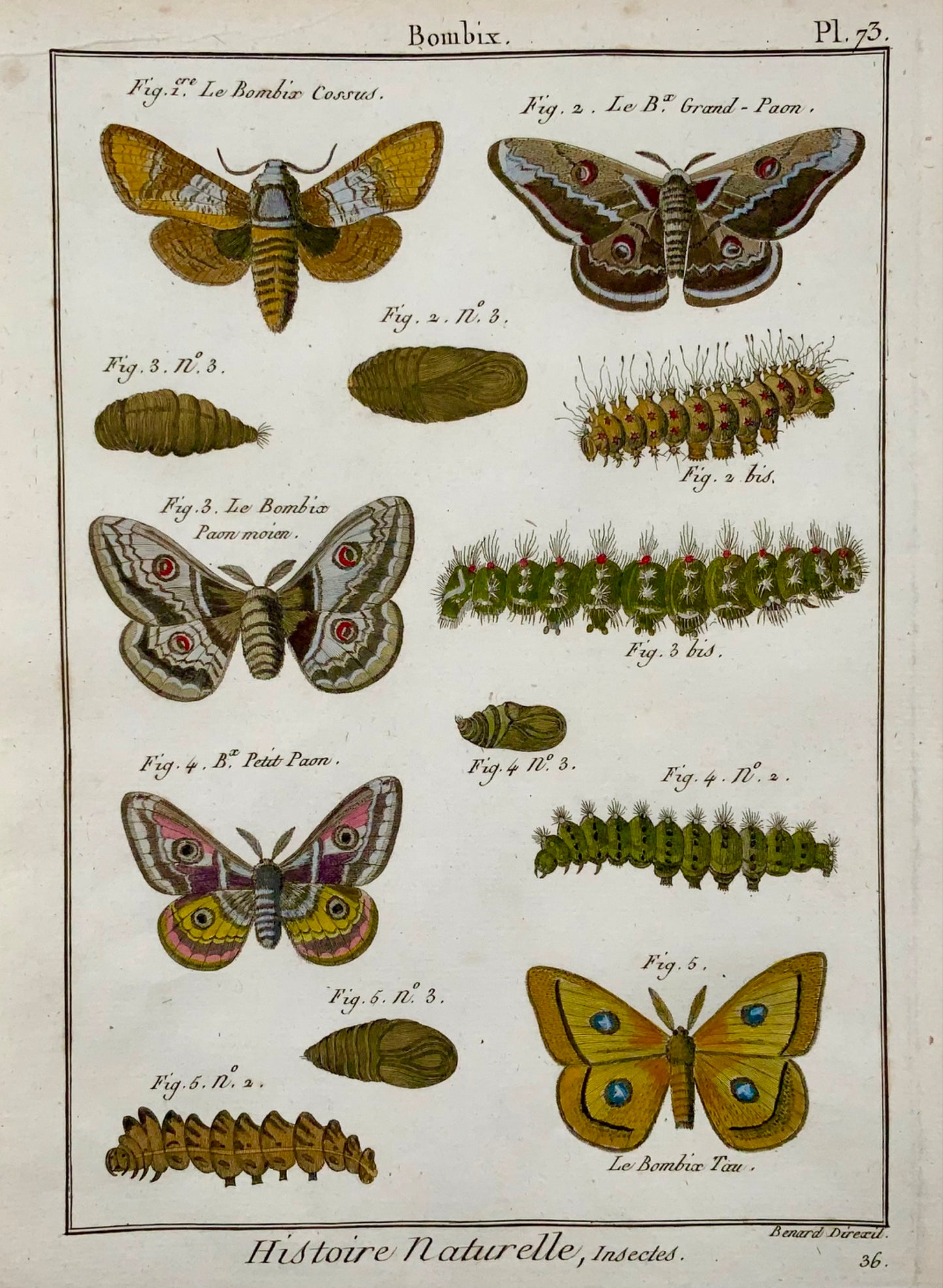 1790 Butterflies, Bombix, silk moths, Latreille, hand colour, quarto, engraving