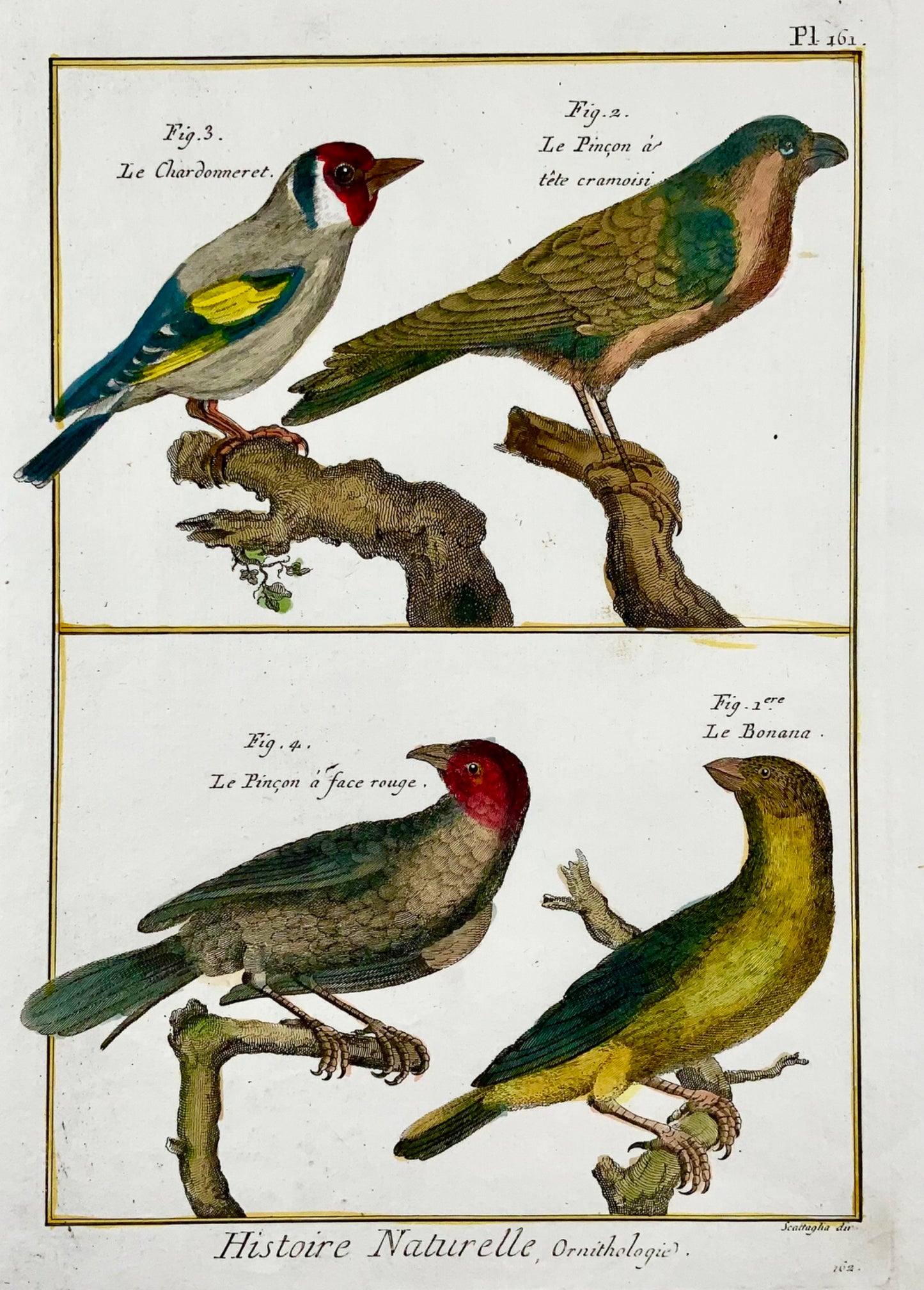 1790 Goldfinch, chaffinch, oriole, Scattalia, quarto hand coloured engraving, ornithology