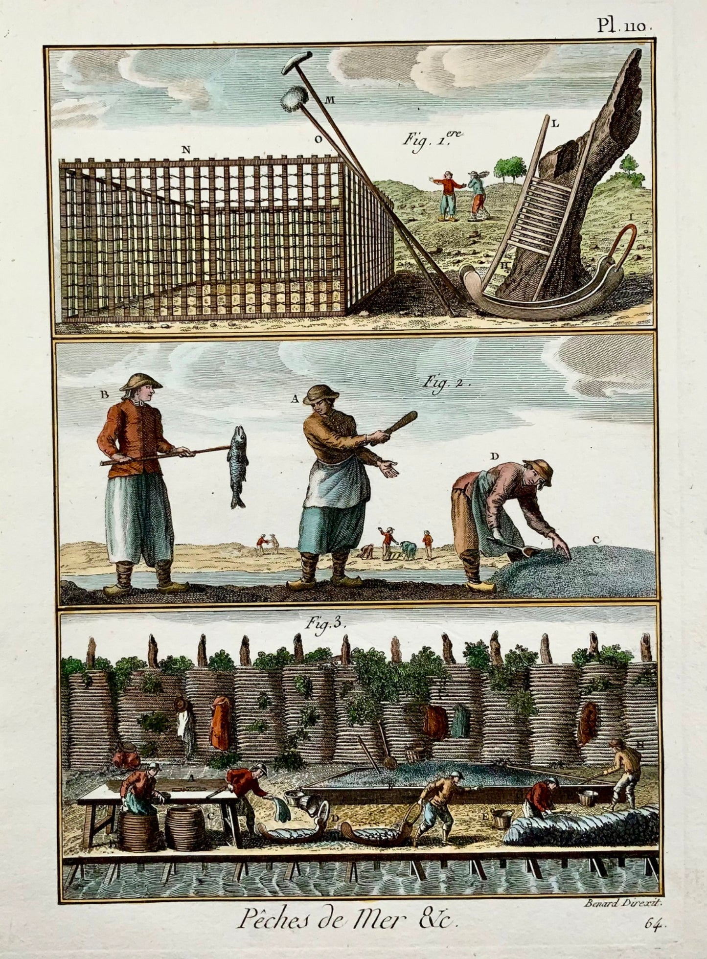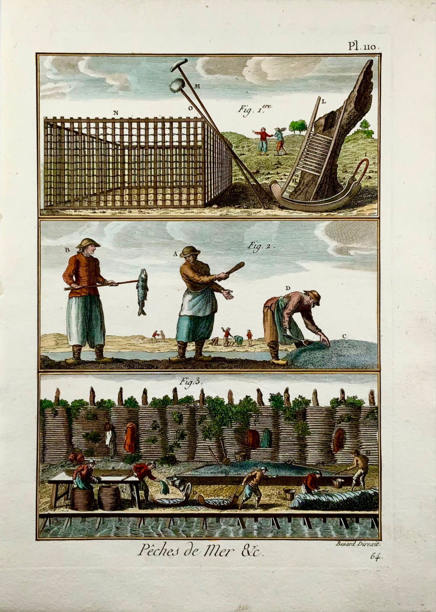 1793 Panckoucke, Sea Fishing, Cod processing, hand coloured, quarto