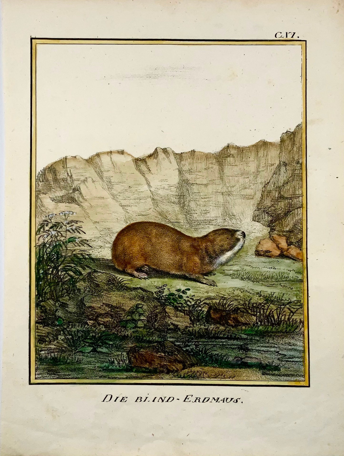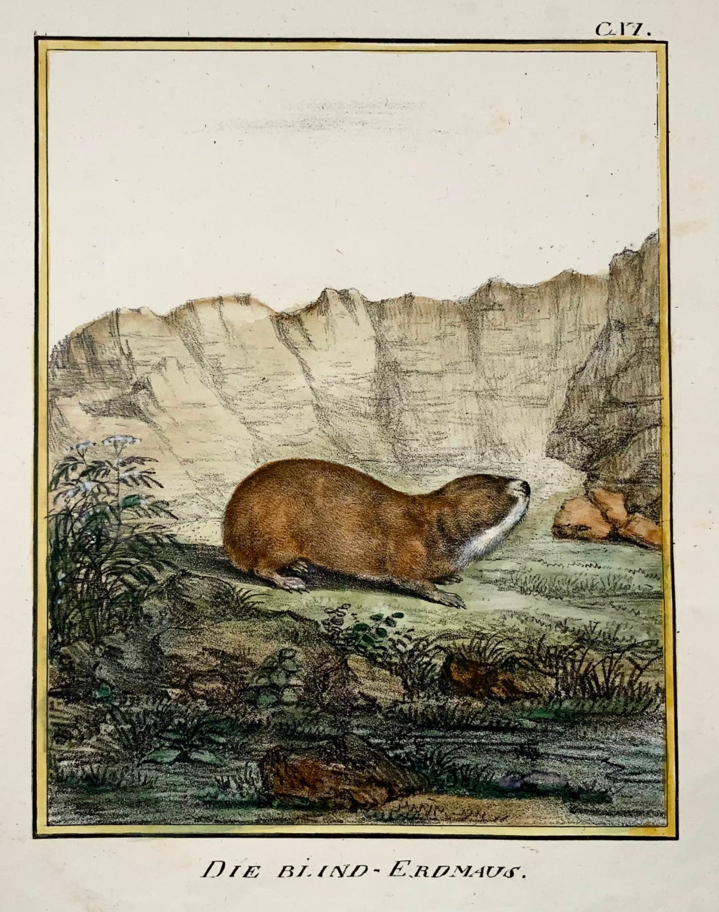 1818 Vole, Karl Schmidt, quarto, hand coloured, incunabula of lithography, mammal