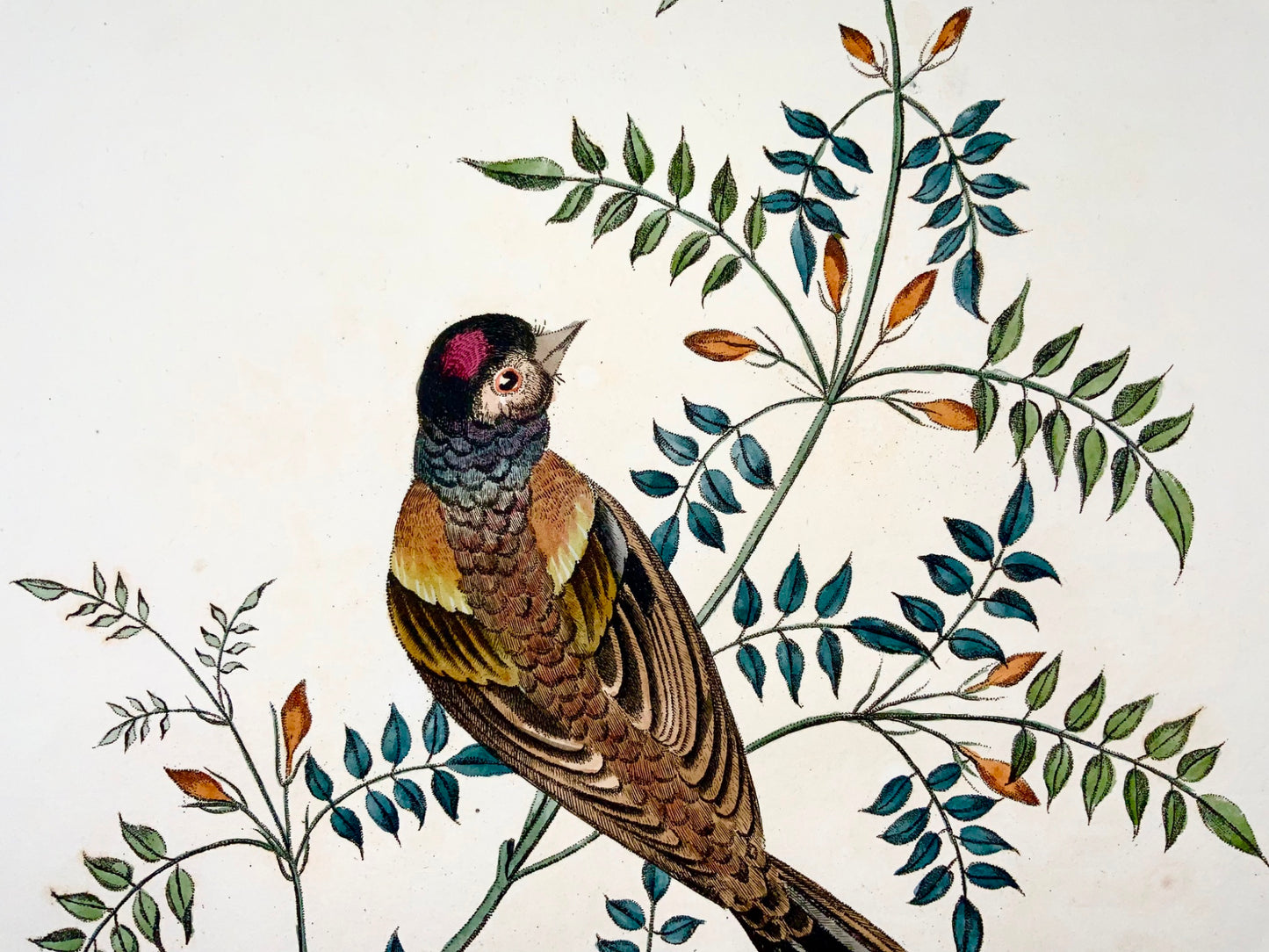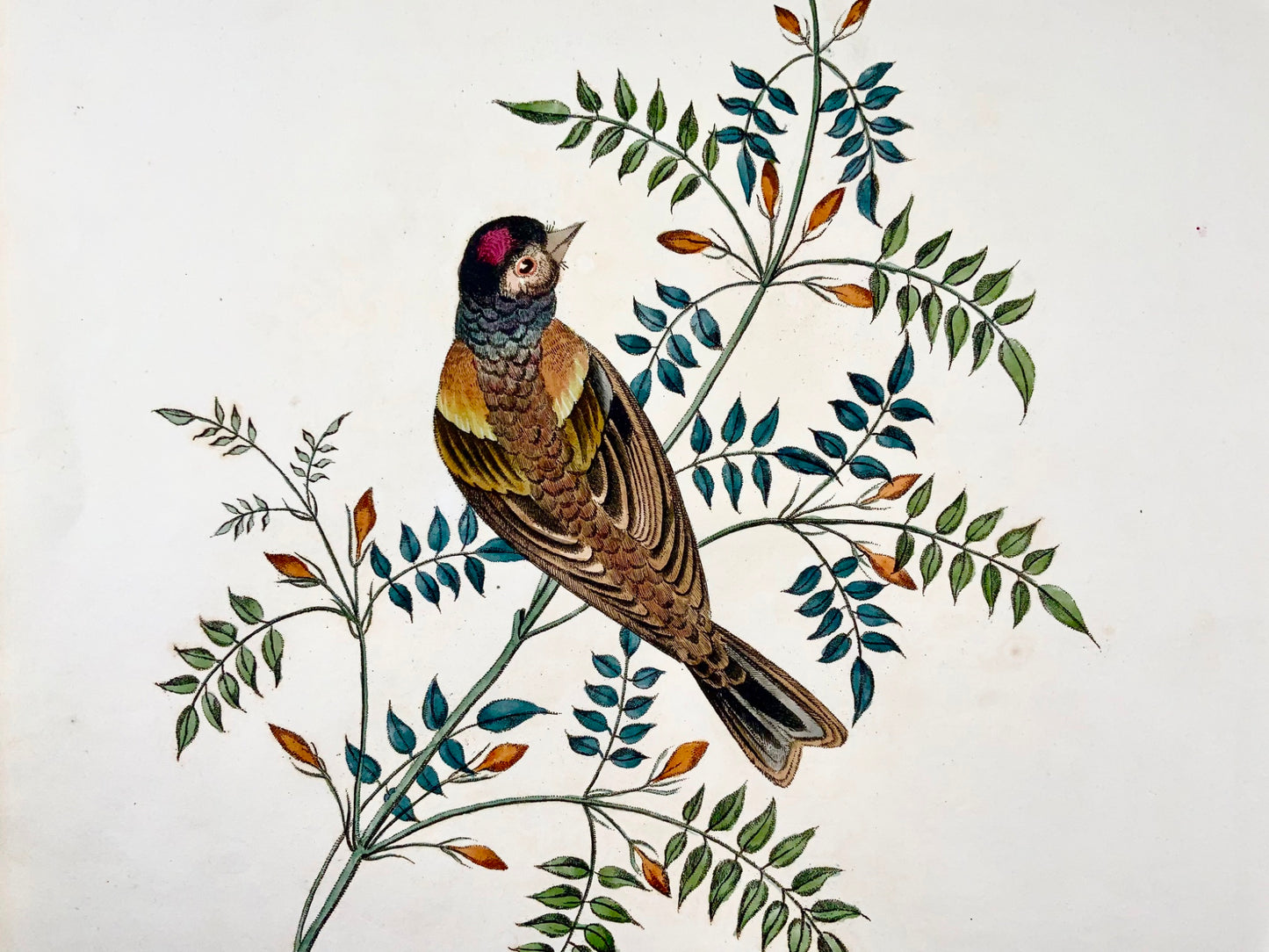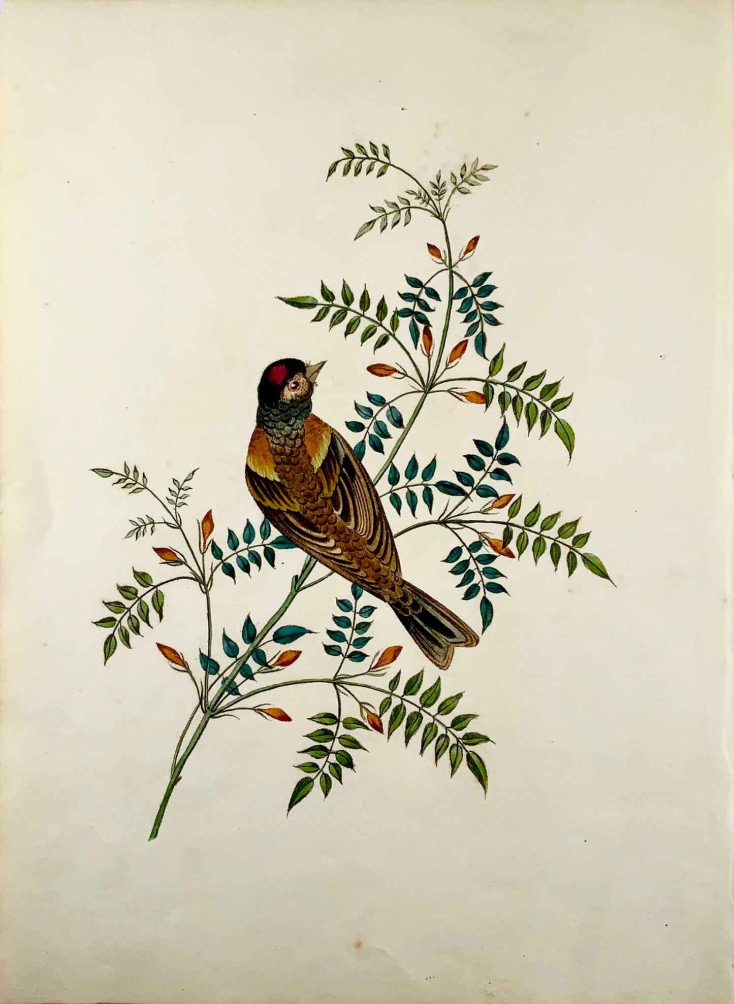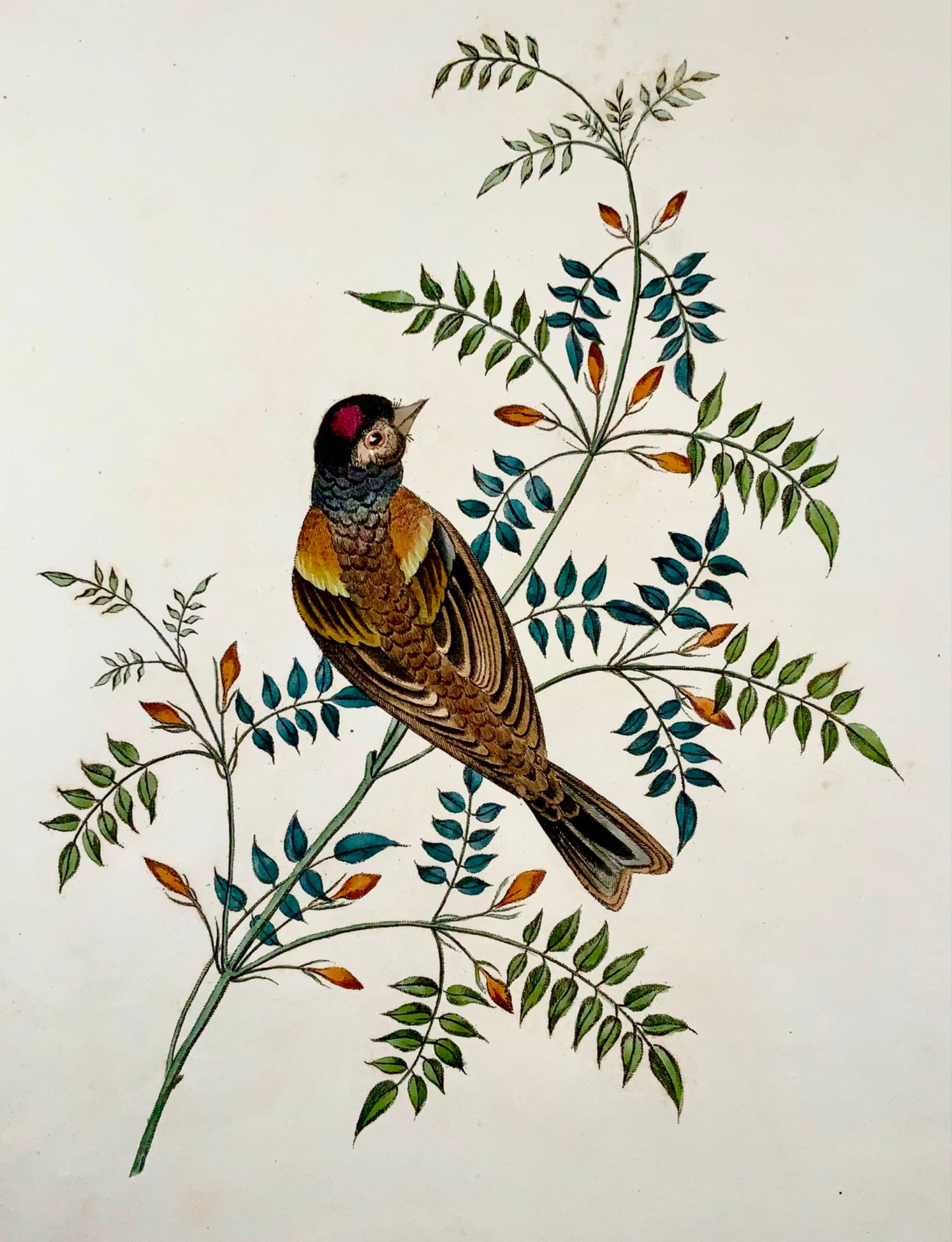 Issued in Brookshaw’s scarce monograph: Six birds, accurately drawn and coloured after nature, with full instructions for the young artist : intended as a companion to The treatise on flower painting… first issued in 1817.