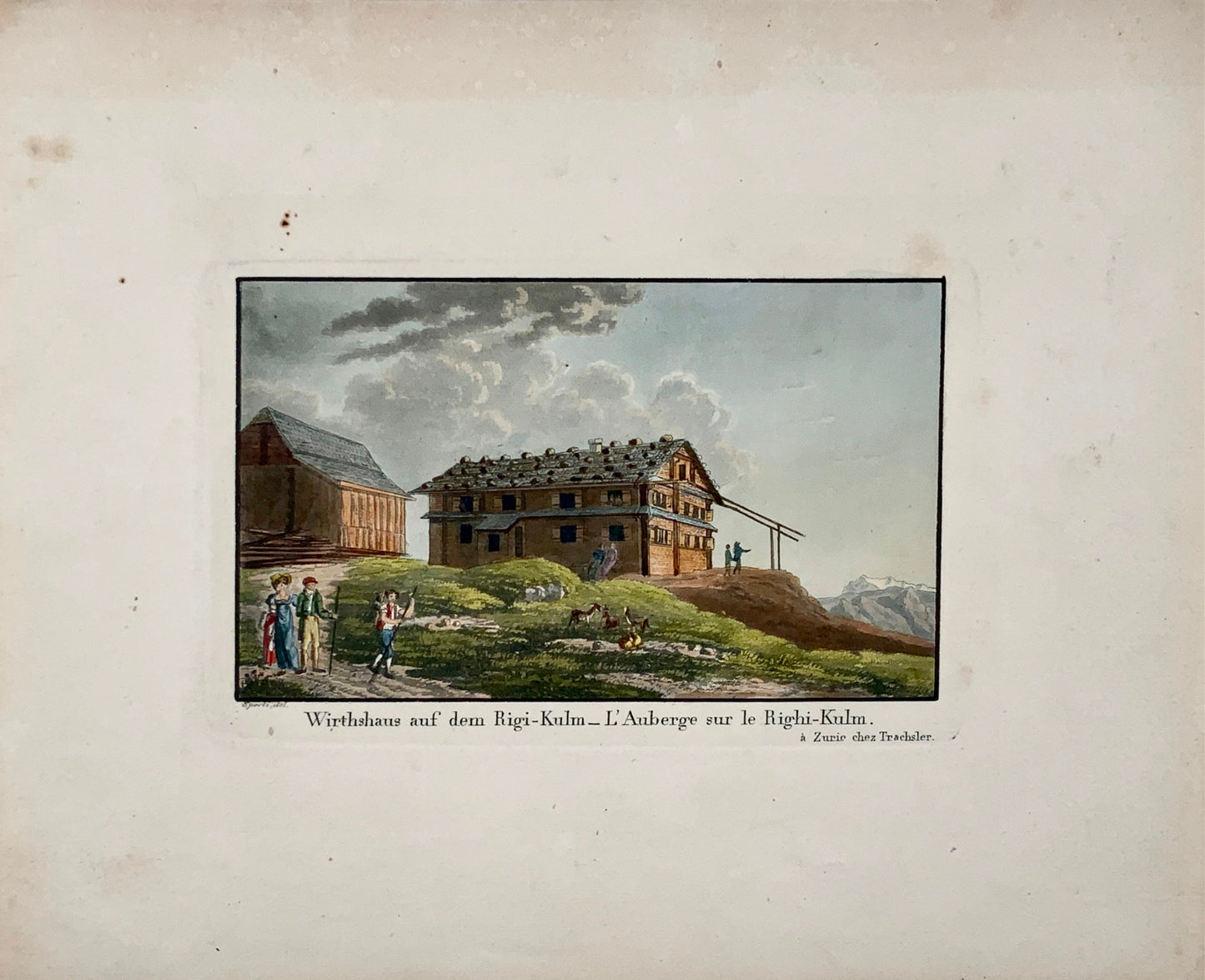 1820 c RIGI KULM Lucerne Switzerland - Hand coloured aquatint by Trachsler