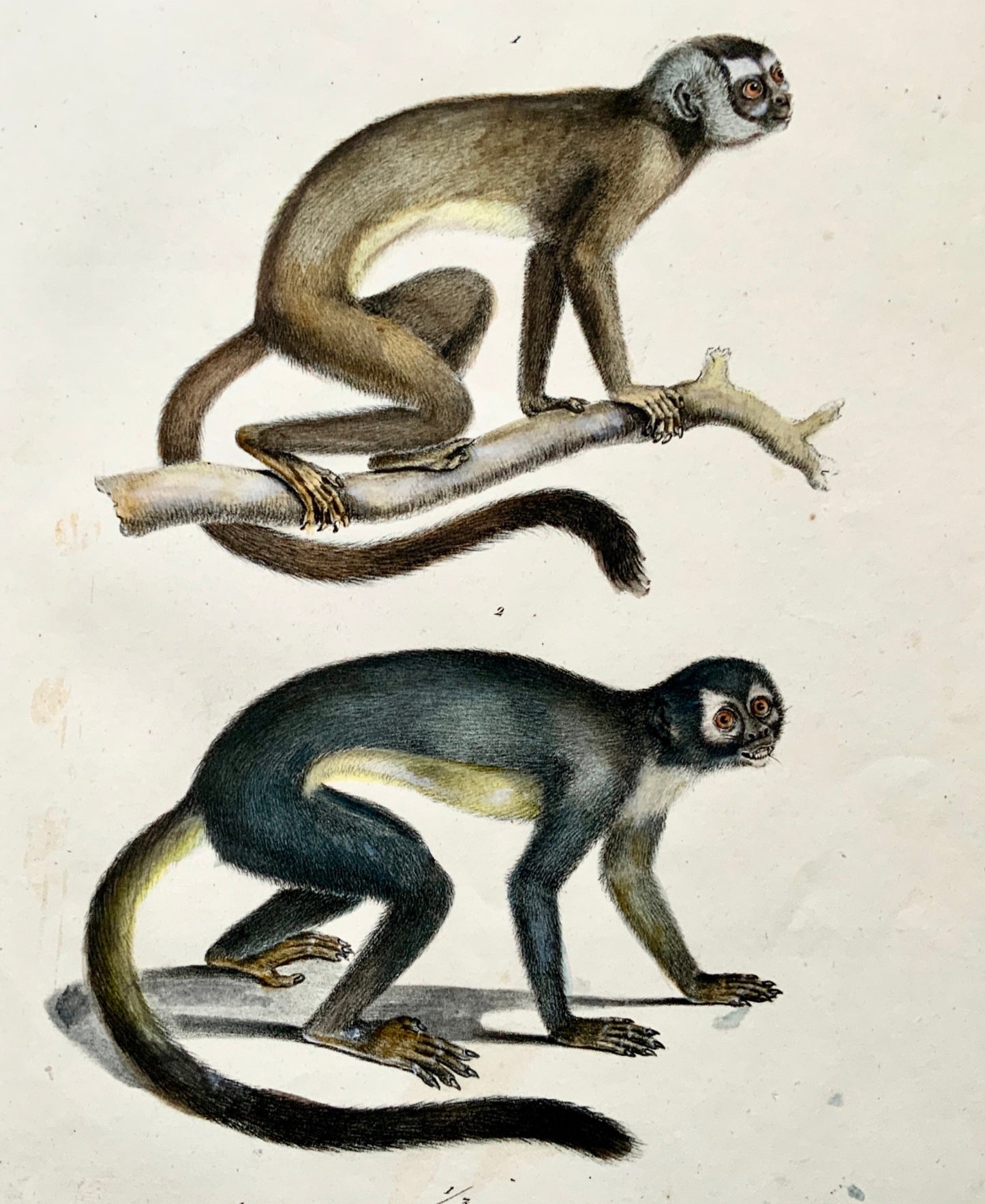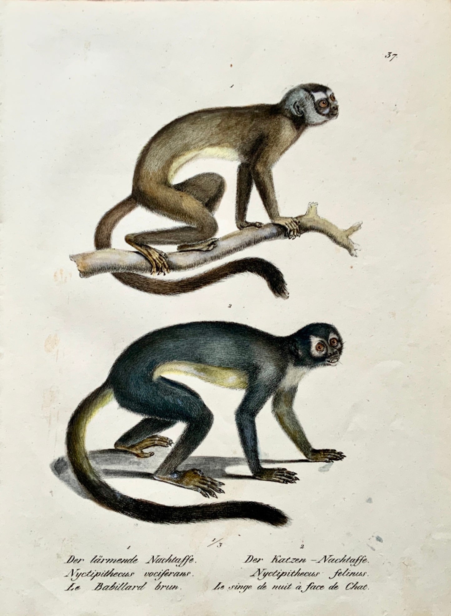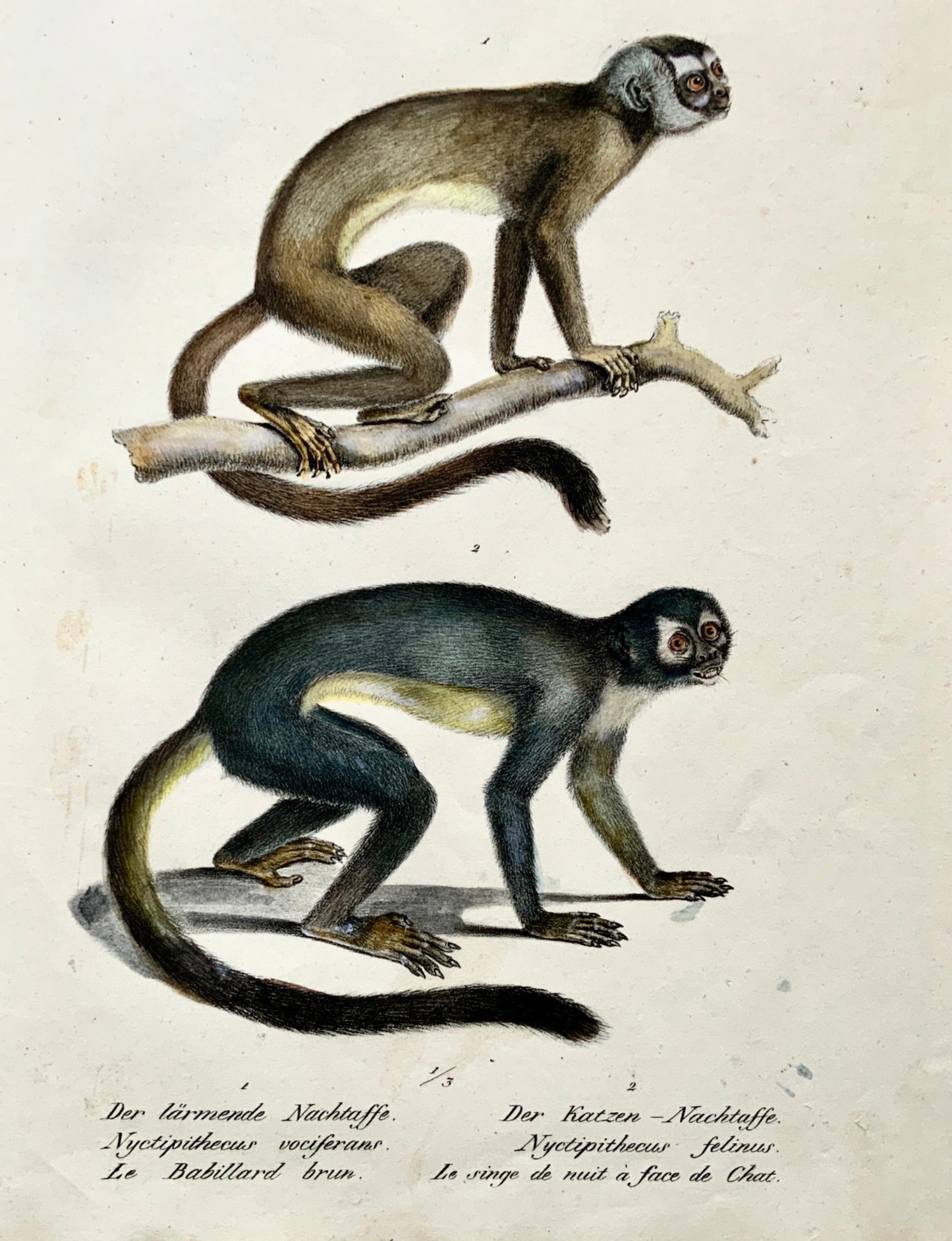 1824 NIGHT MONKEYS - K. Brodtmann ORIGINAL handcol FOLIO stone lithography - Mammal