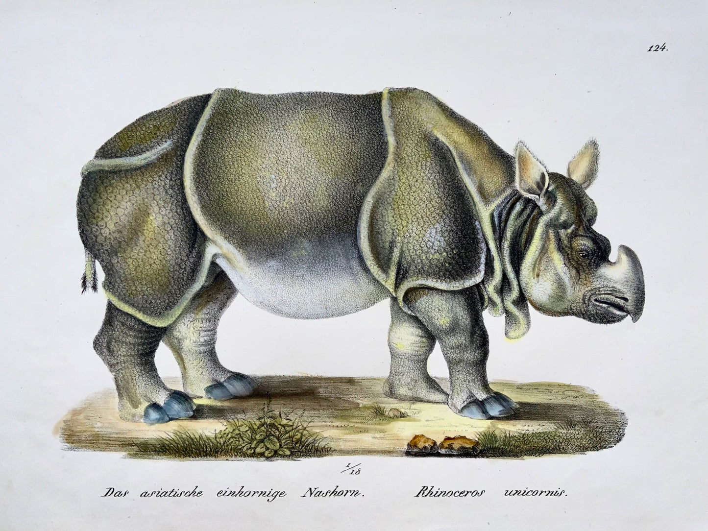 1824 Rhinoceros, Brodtmann, folio, stone lithograph, mammal