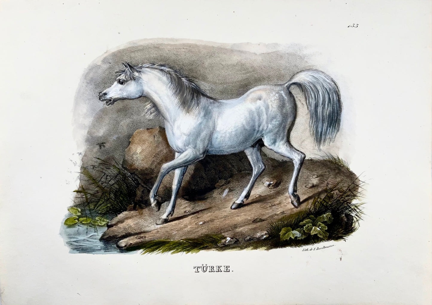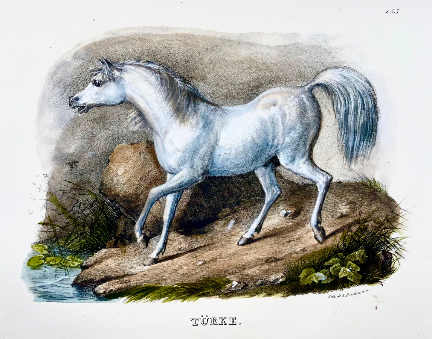 1824 Turkish horse, Turkmene, K.J. Brodtmann, hand colored, folio lithograph, mammal