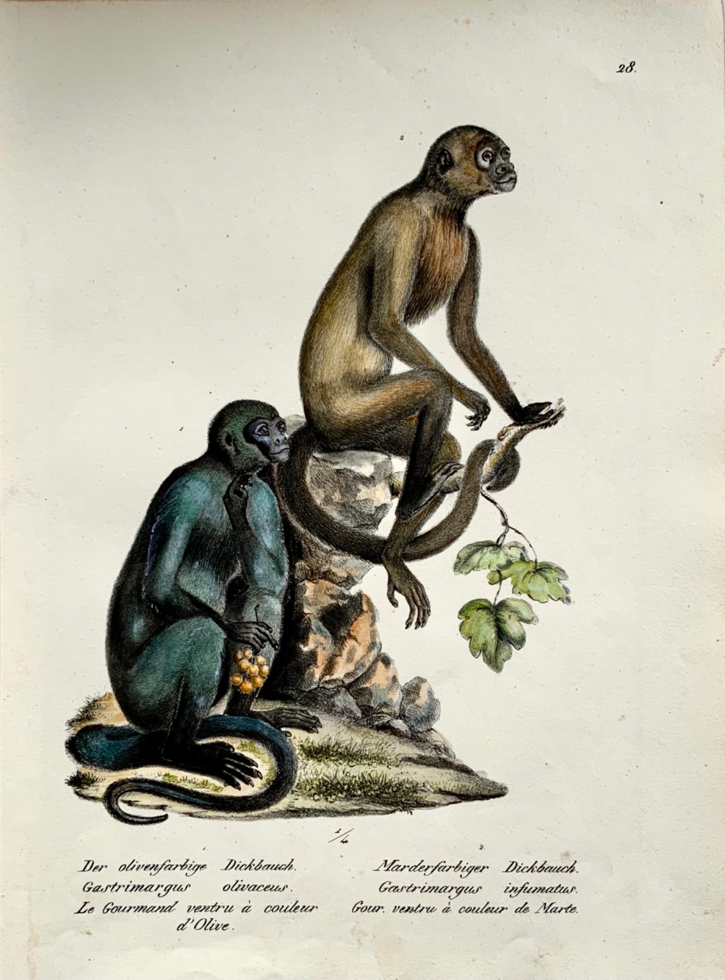 1824 Woolly Monkeys - Mammal - K.J. Brodtmann - handcolor FOLIO lithography