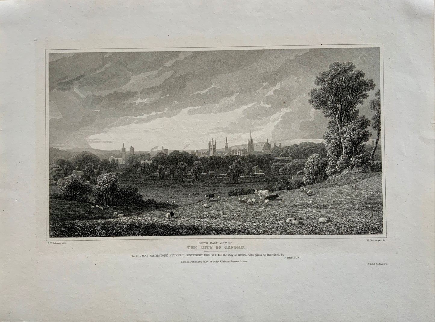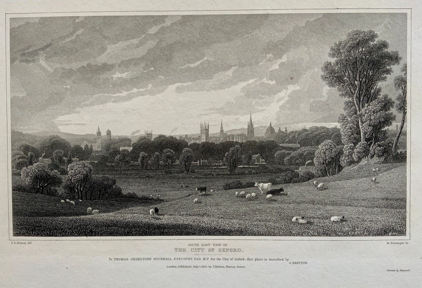 1826 Barenger after Robson - City of Oxford - Copper engraving - Topography