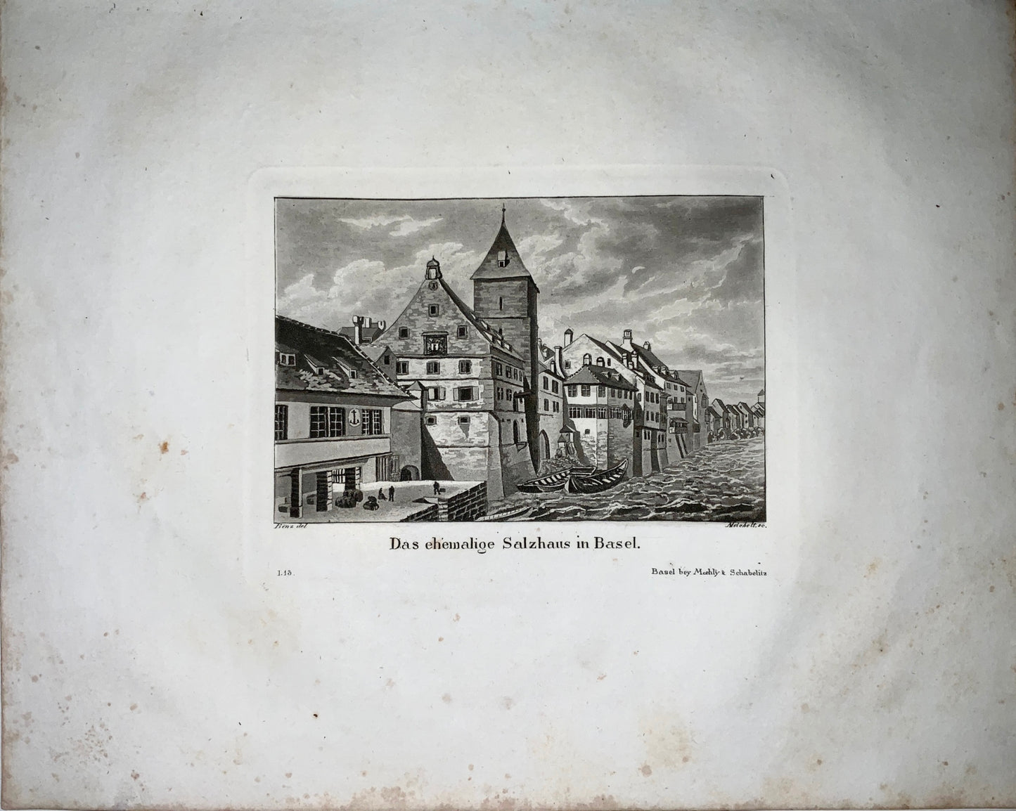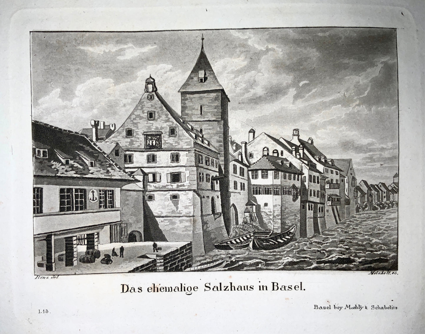 1830 c. Meieholt; Benz - Salzhaus in BASEL - Aquatint - Switzerland