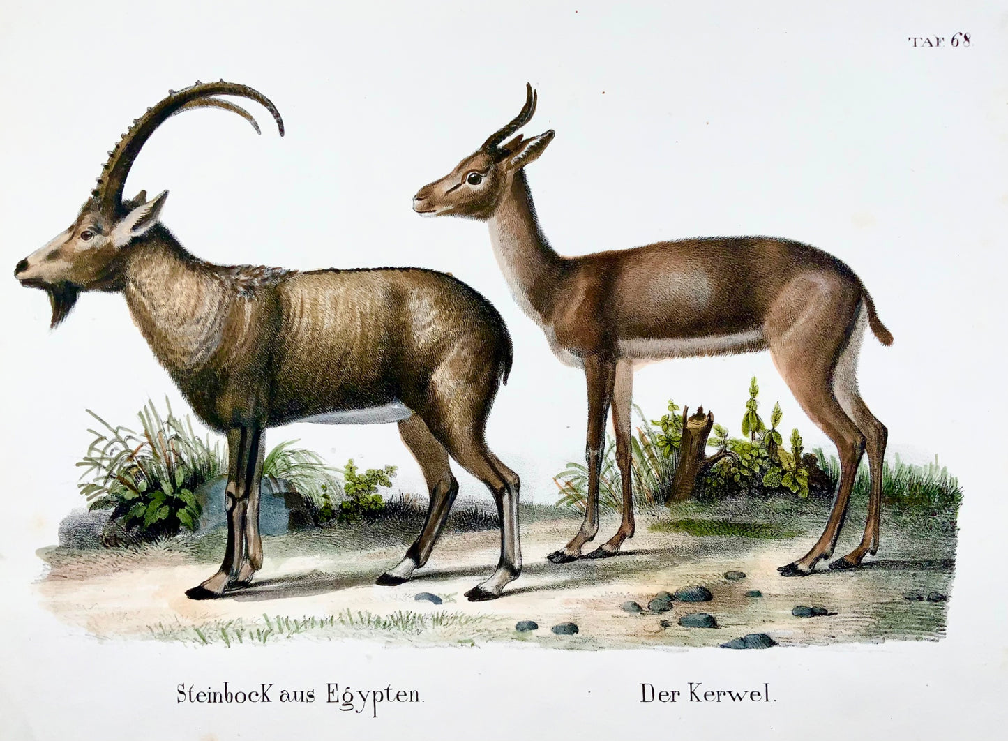 1830 Ibex, Capra, Goats, Schinz, hand colored, folio, stone lithograph, mammals