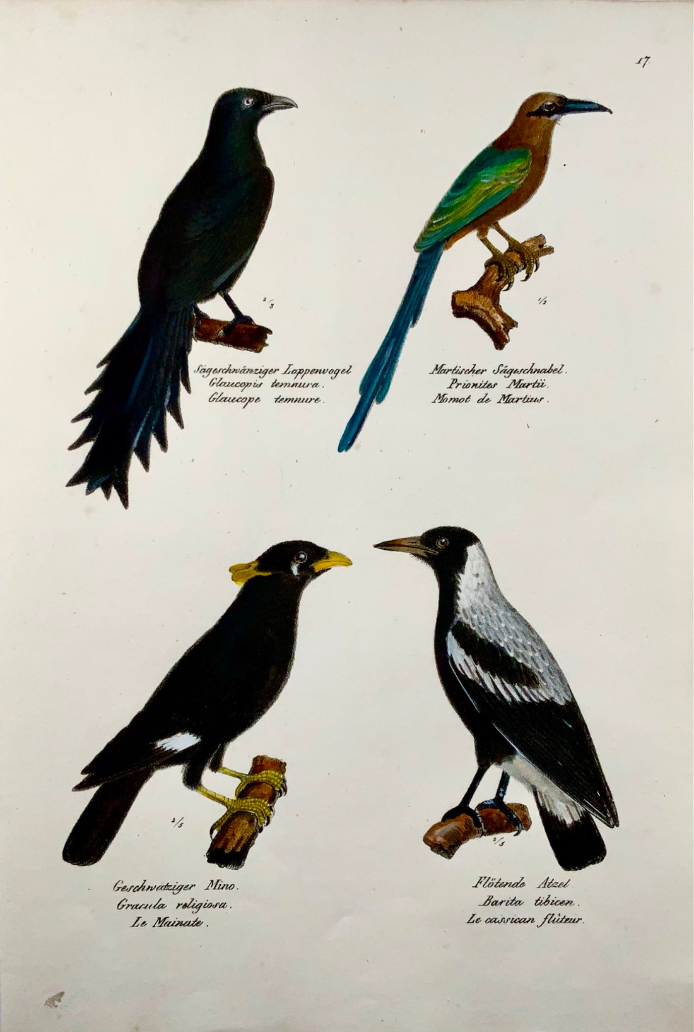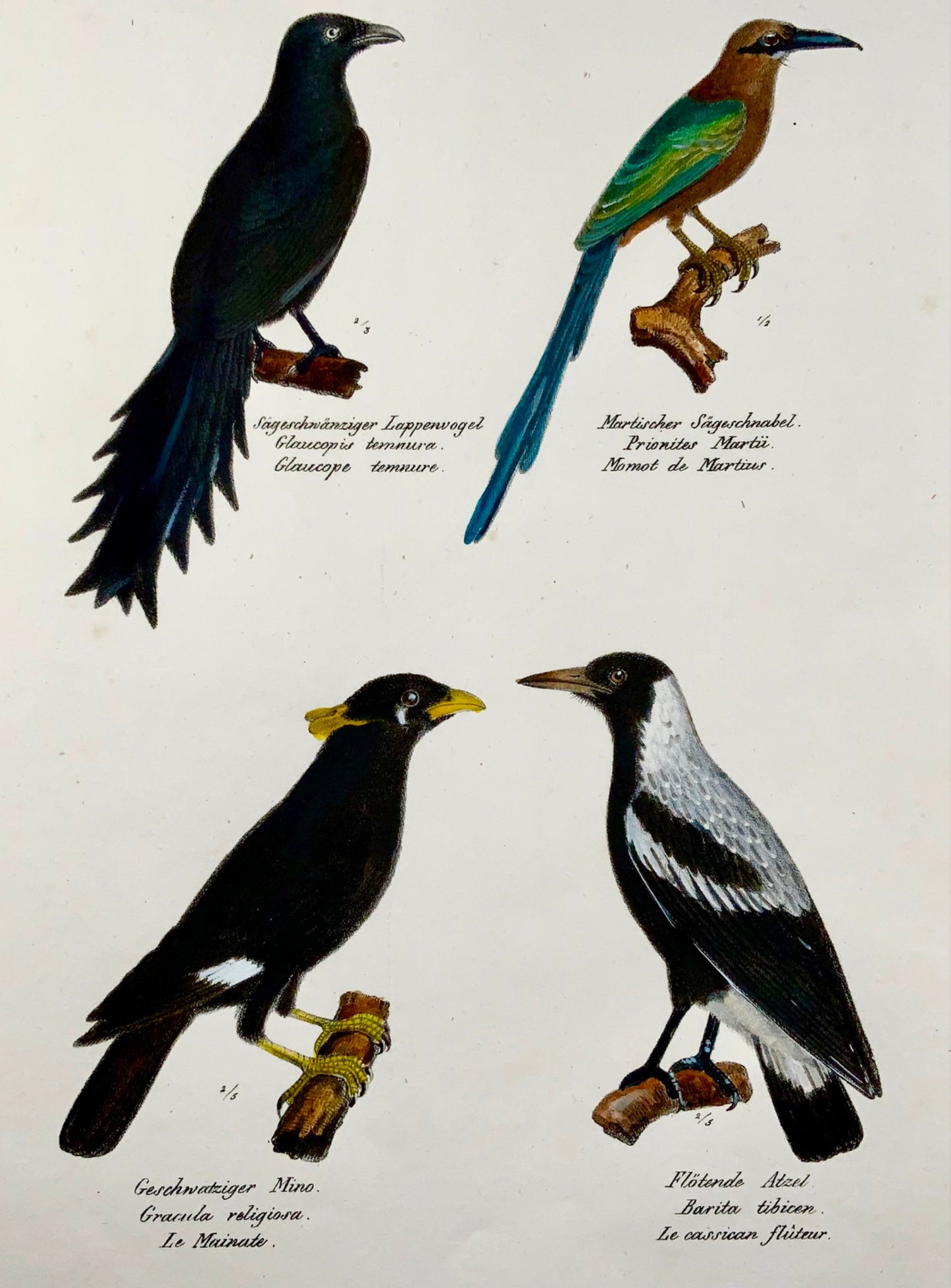 1830 Motmot, Myna, ornithology, Brodtmann, hand coloured folio lithograph