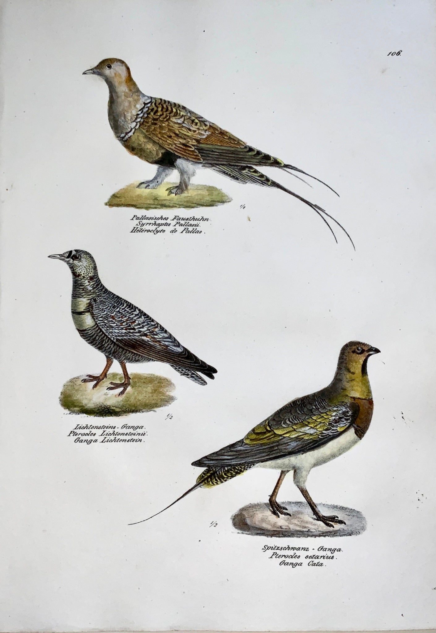 1830 SANDGROUSE - Ornithology - Brodtmann hand coloured FOLIO stone lithograph