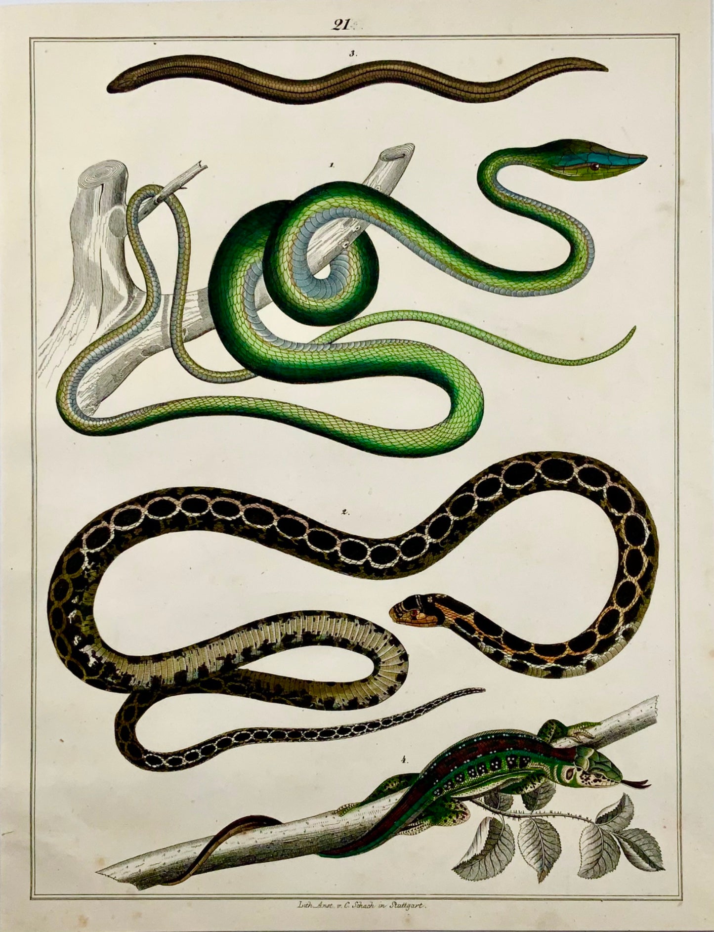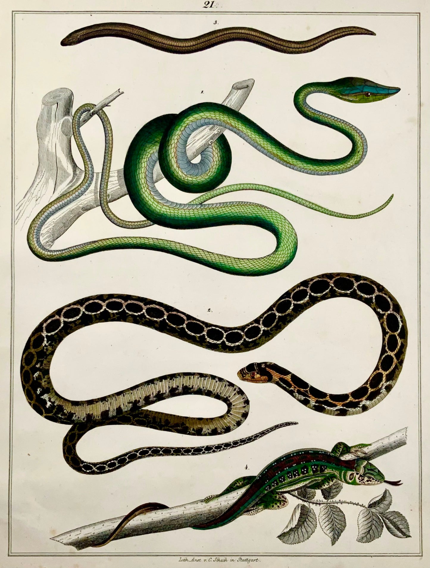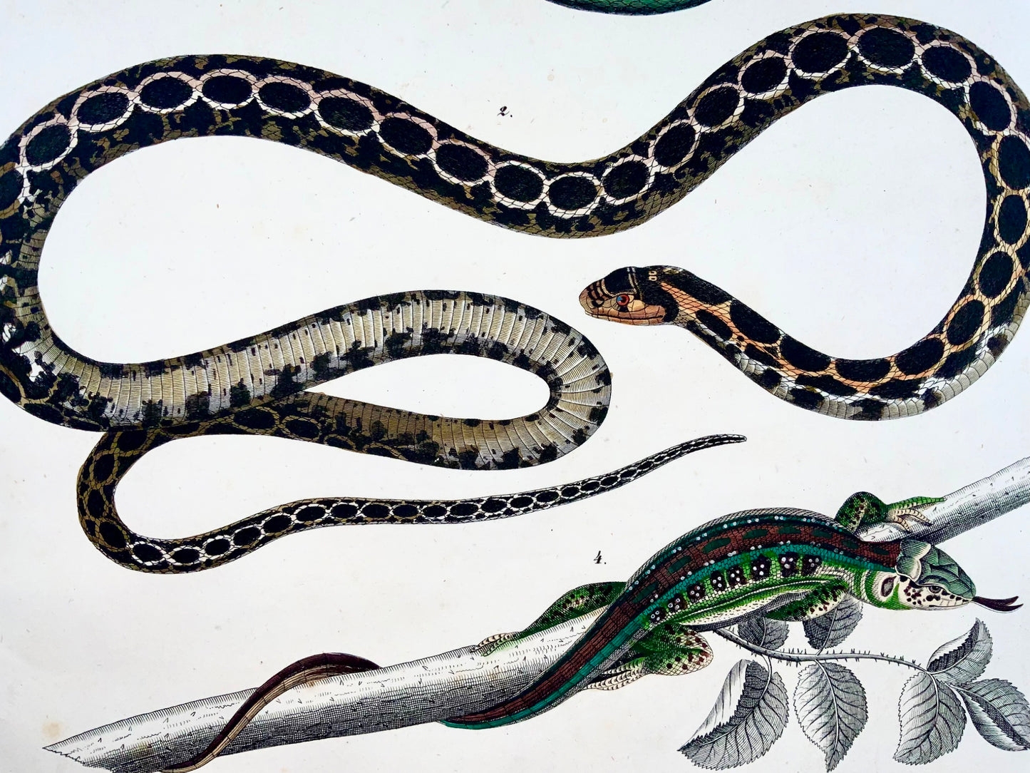 1831 SNAKES Skinks - Large Folio - hand coloured engraving for Oken - Reptiles