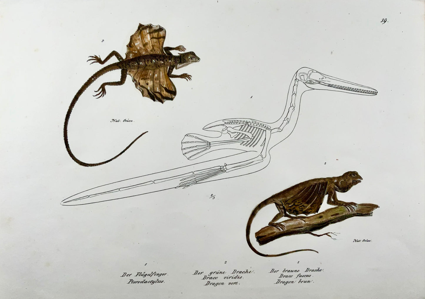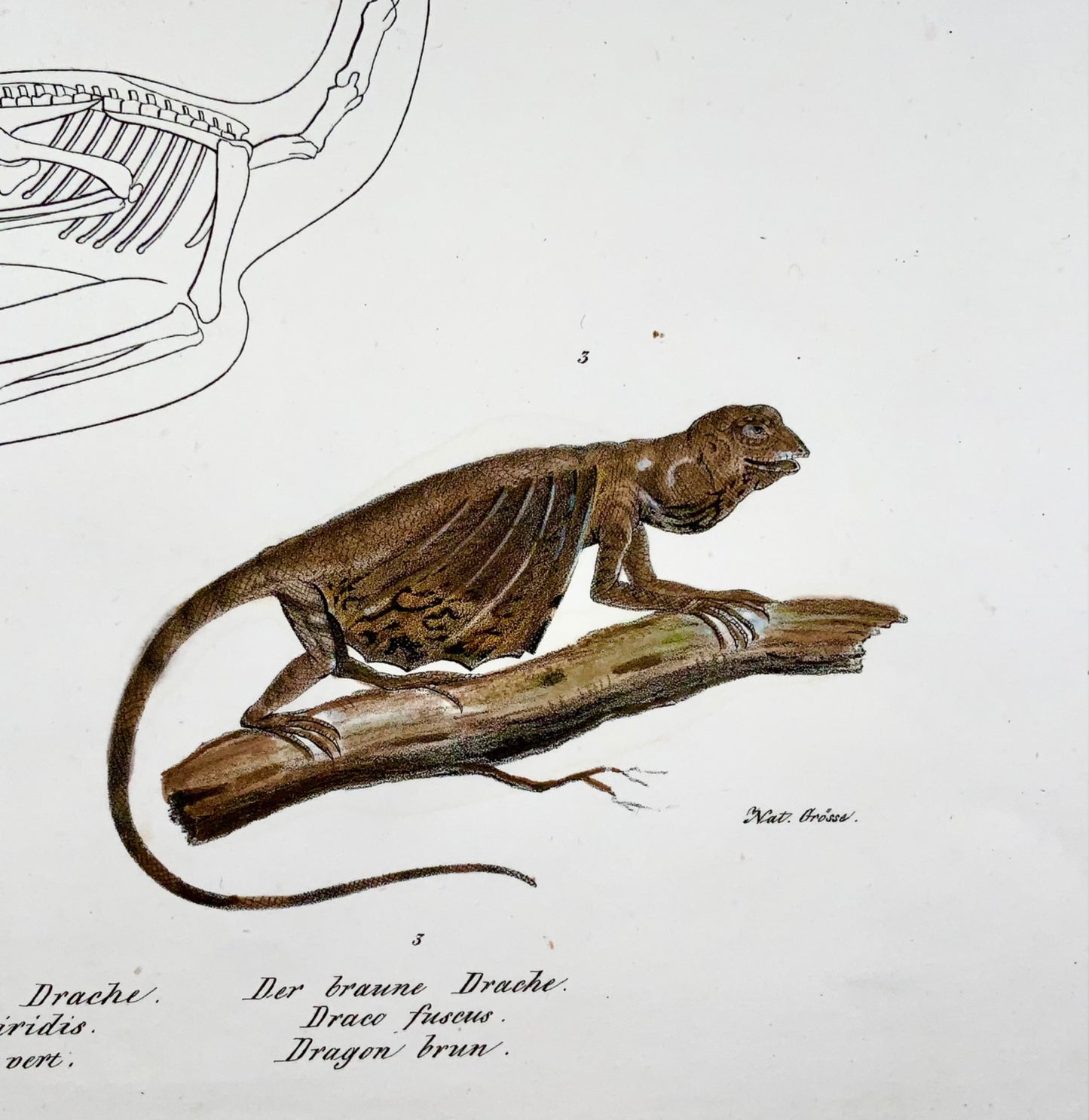 1833 H.R. Schinz (b1777), Dragon lizard, hand coloured stone lithograph, reptile
