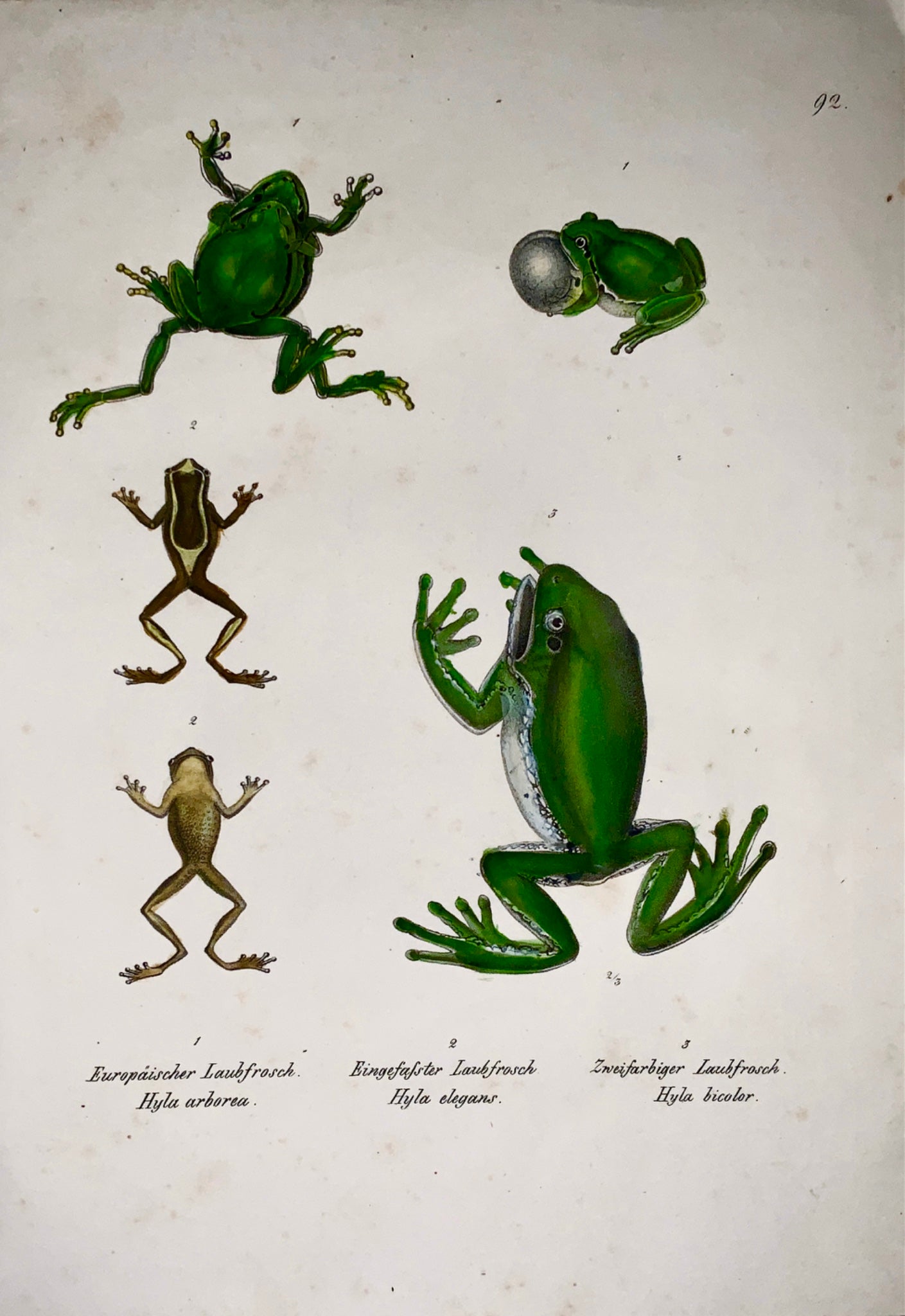 1833 H.R. Schinz (b1777) TREE FROGS - Handcoloured stone lithograph - Amphibians