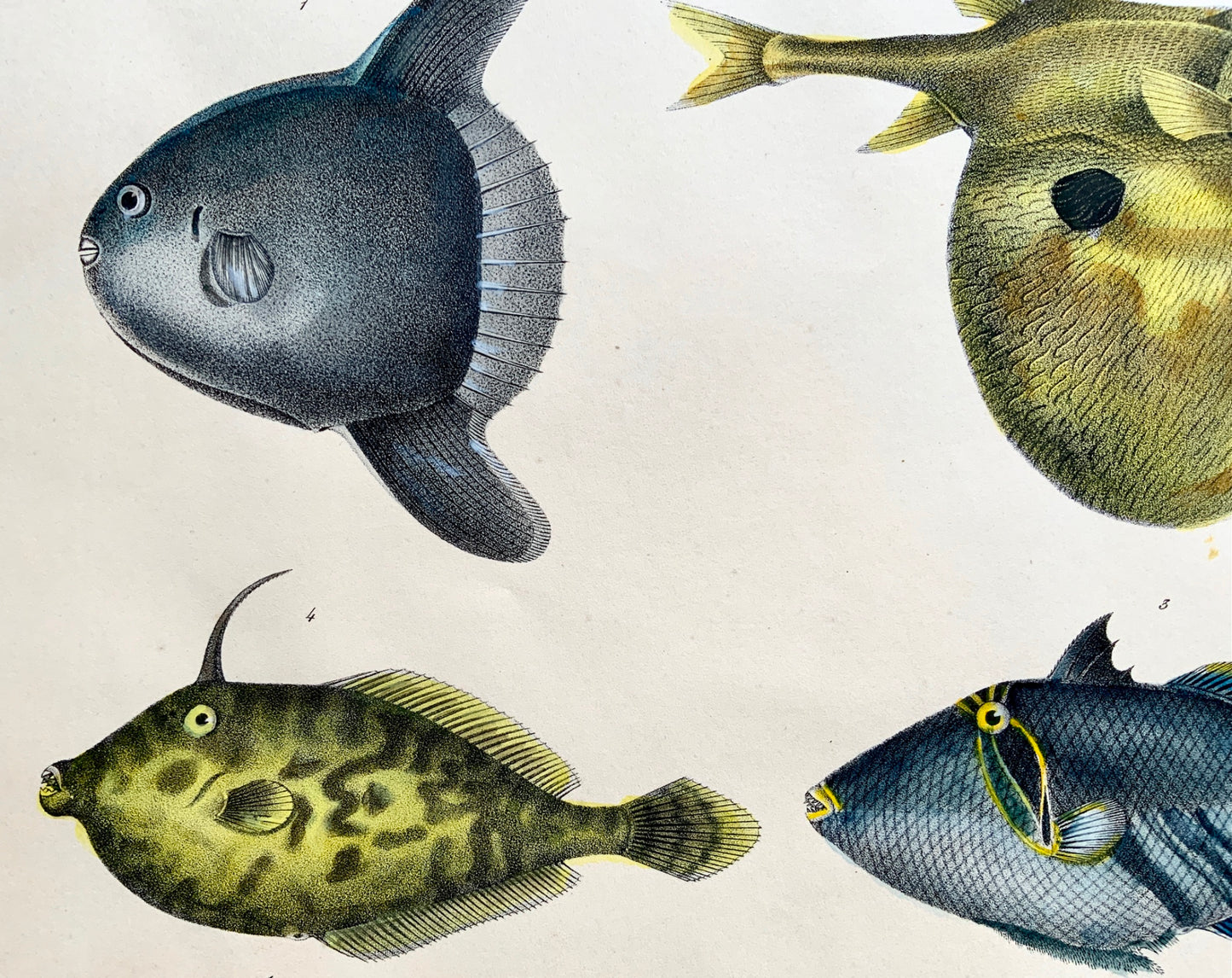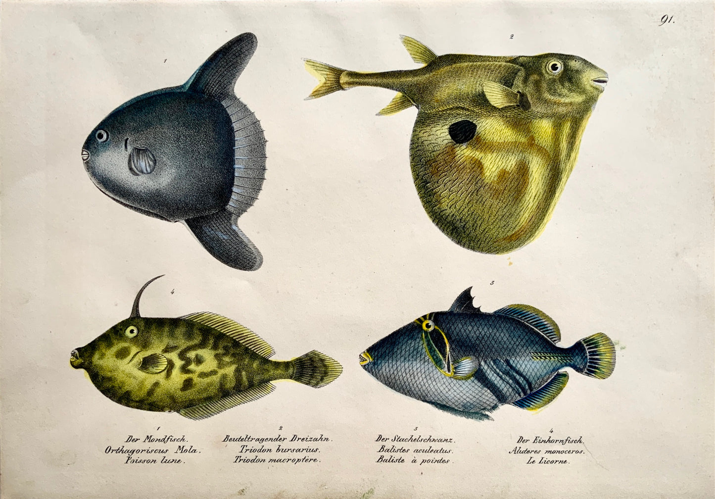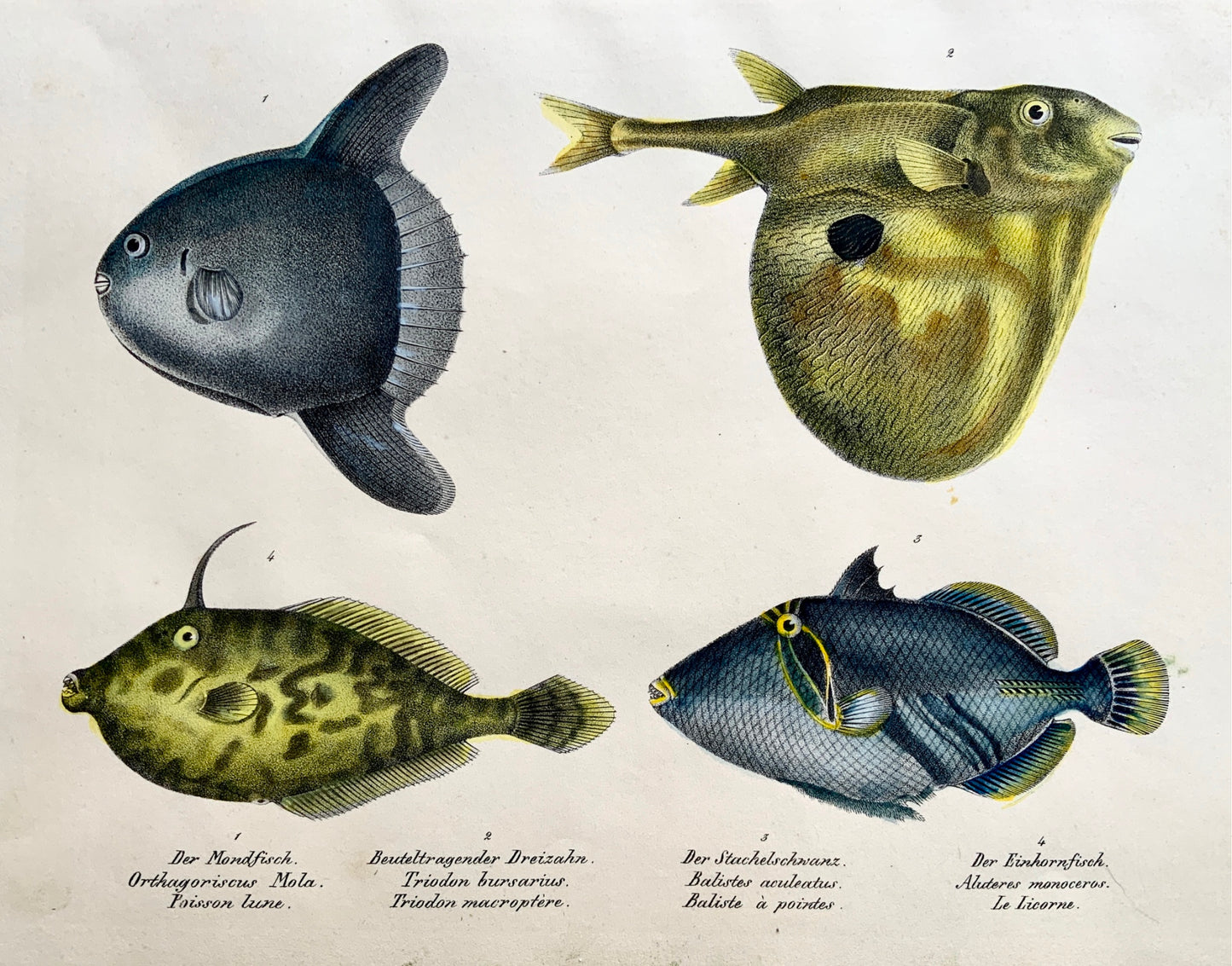 1833 H. Schinz (1777-1861) MOON TRIGGER PUFFERFISH Hand colour stone lithograph