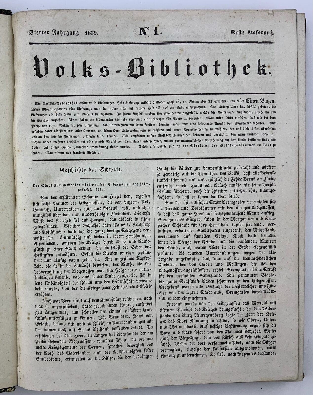 1836-44 Volks-Bibliothek, rare complete set, illustrated, Swiss magazine