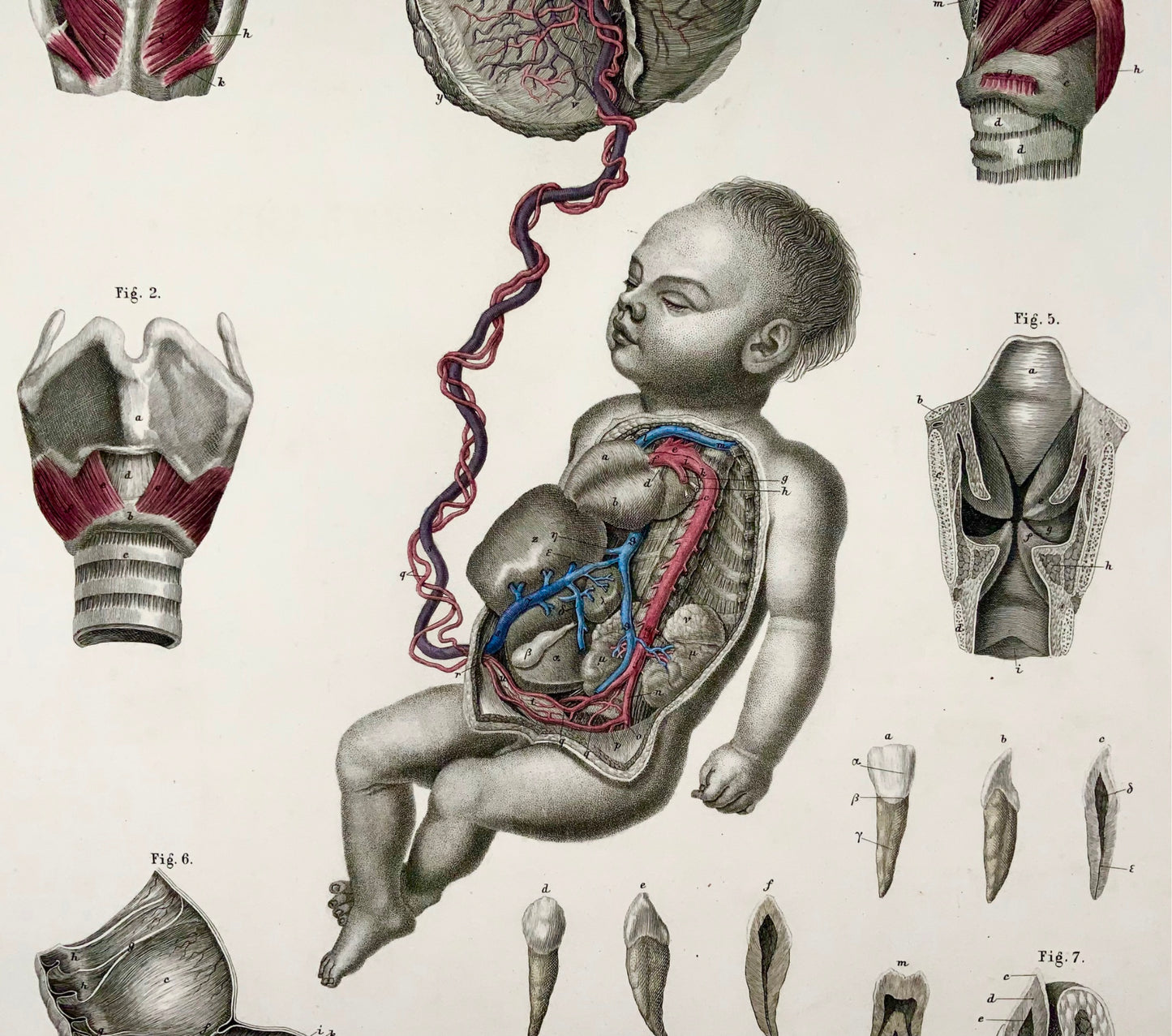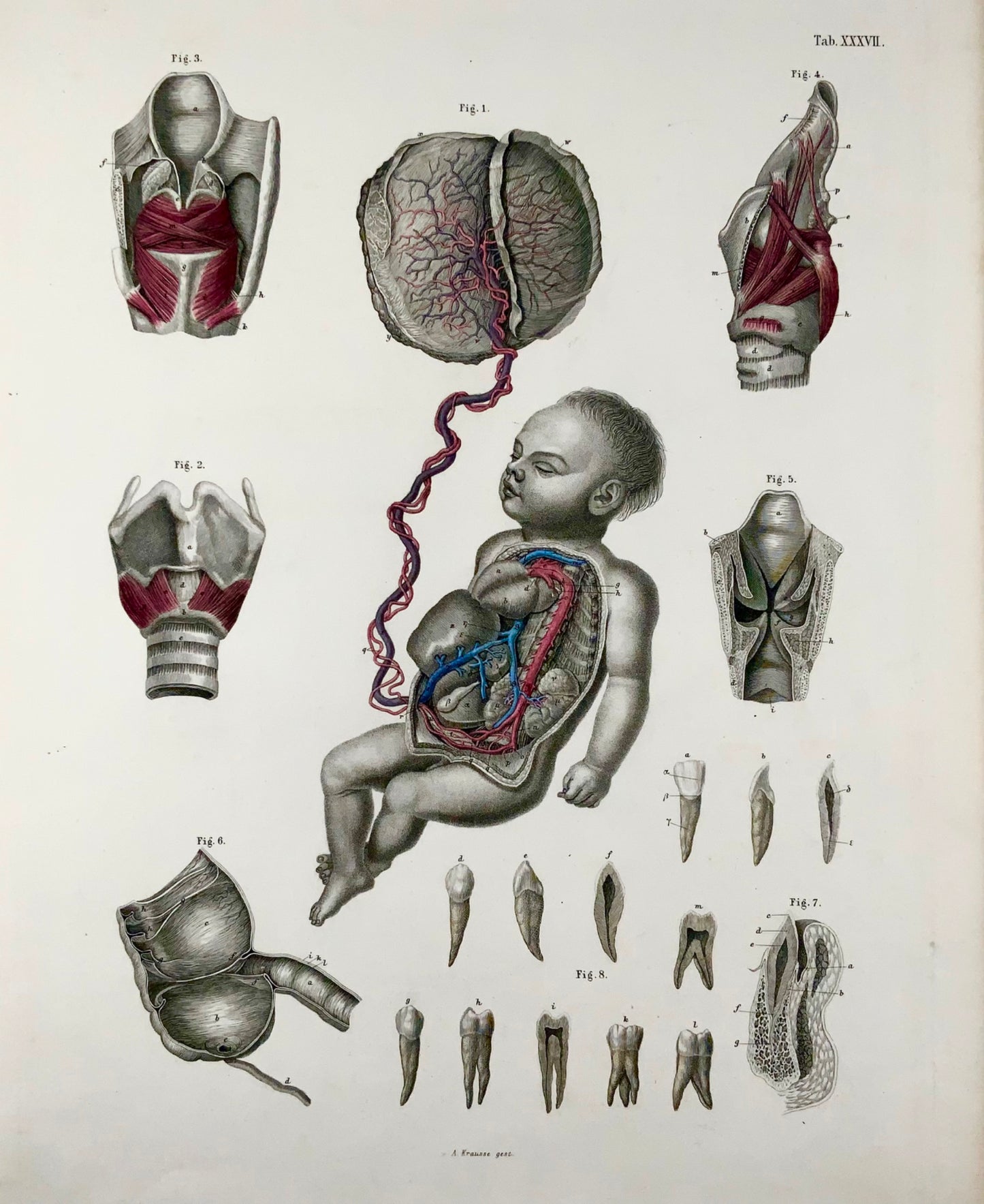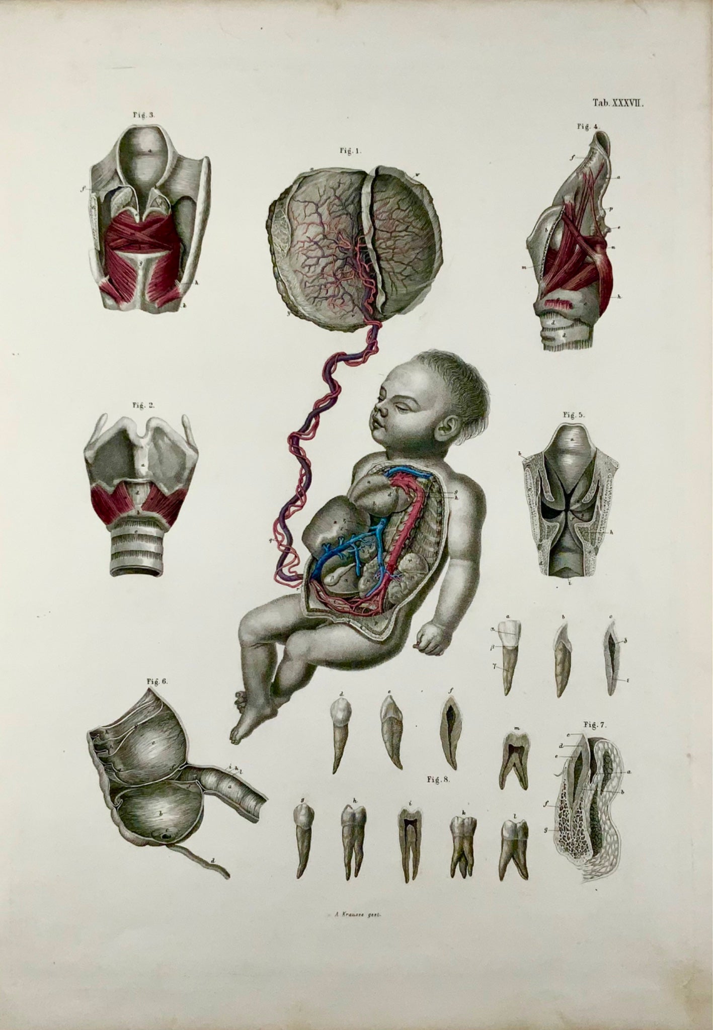 1840 Human anatomy, gynecology, hand coloured folio, Krausse & Eltzner
