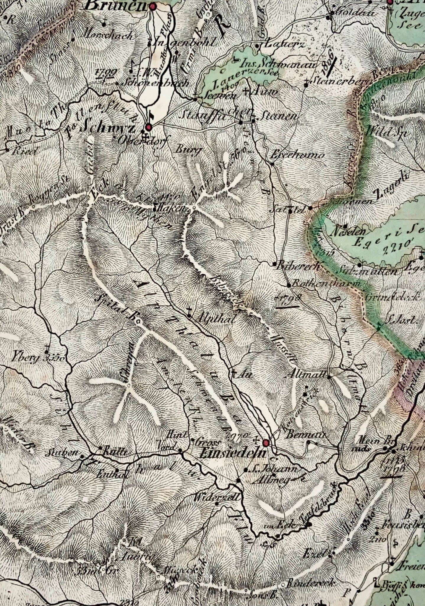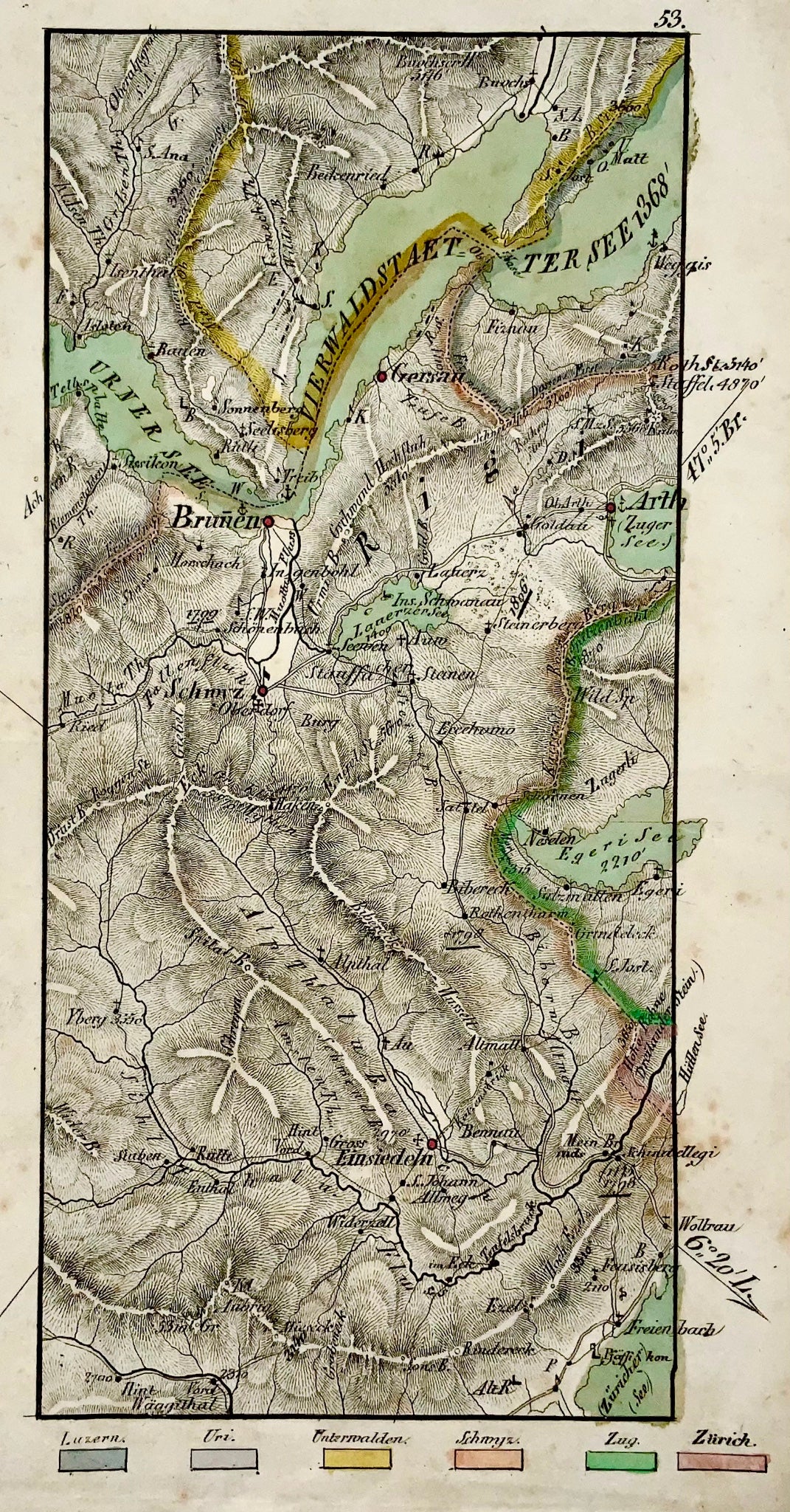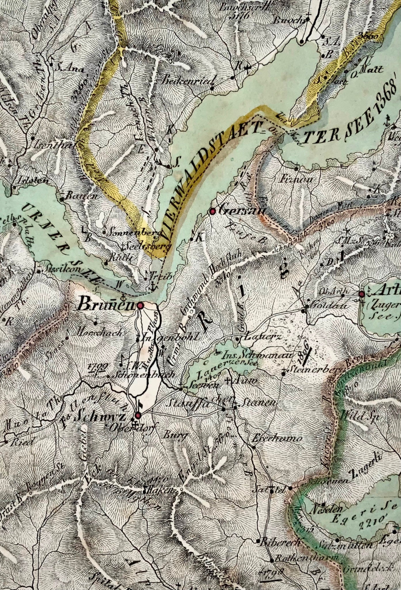 1840c Rare detailed map of Central Switzerland, hand coloured