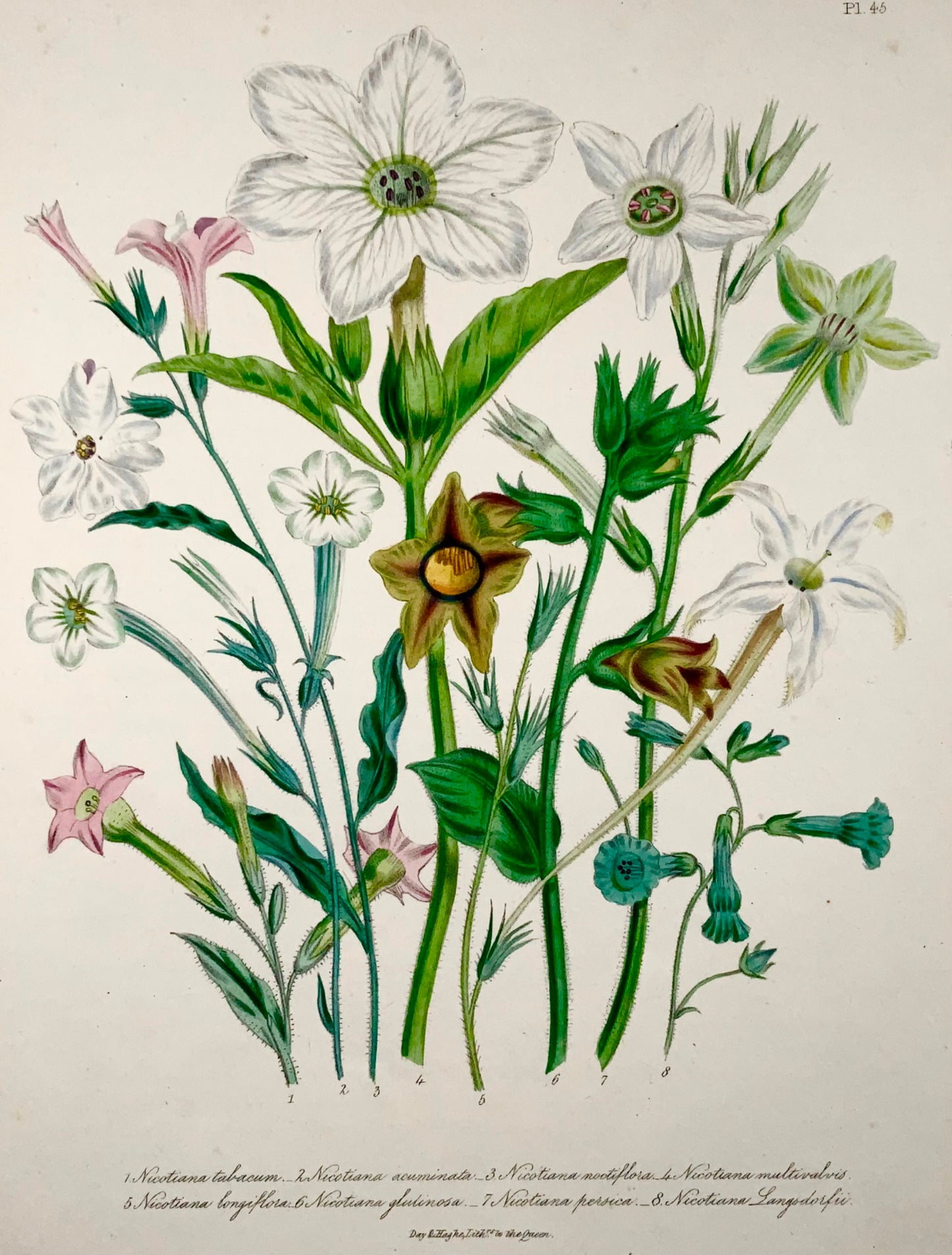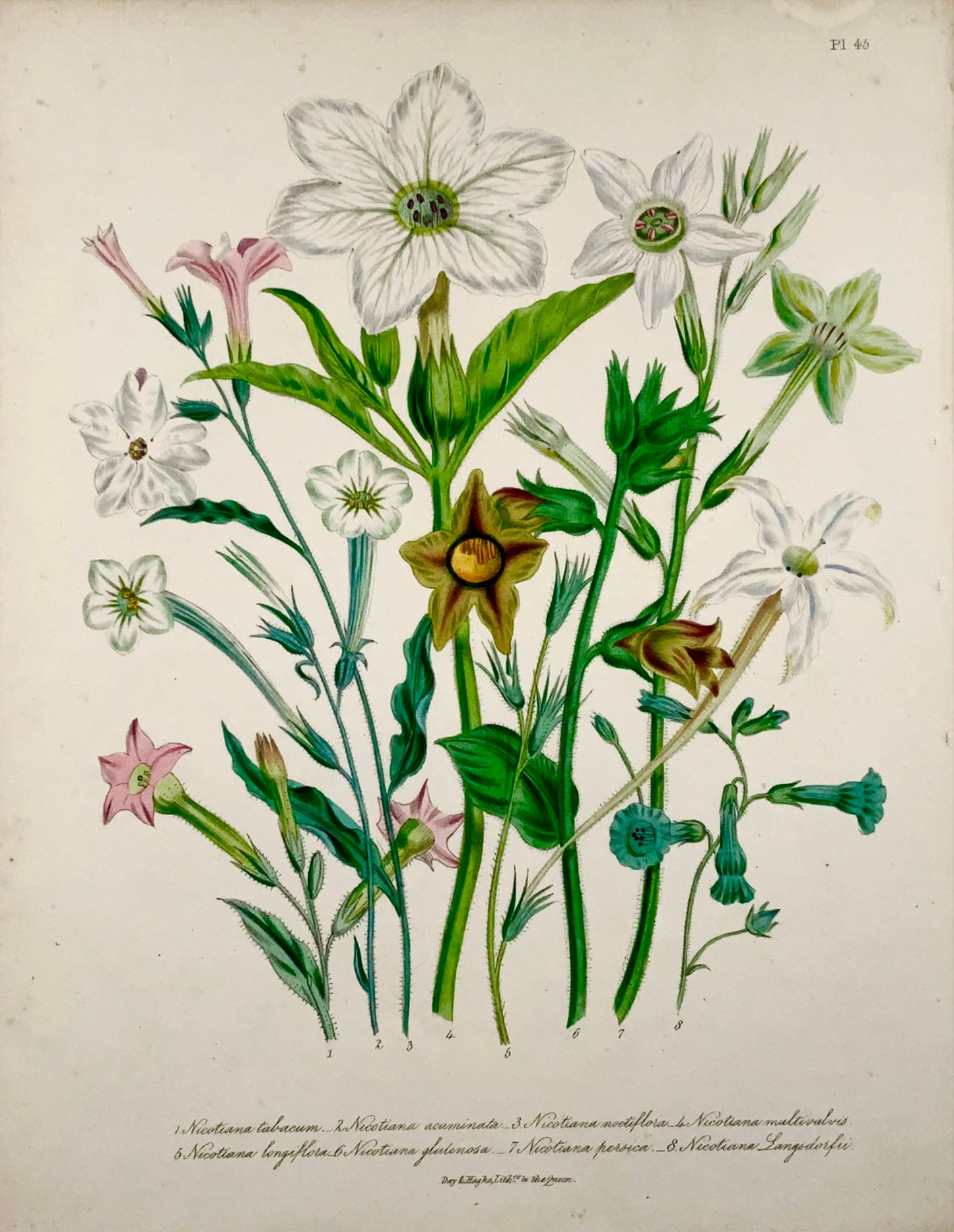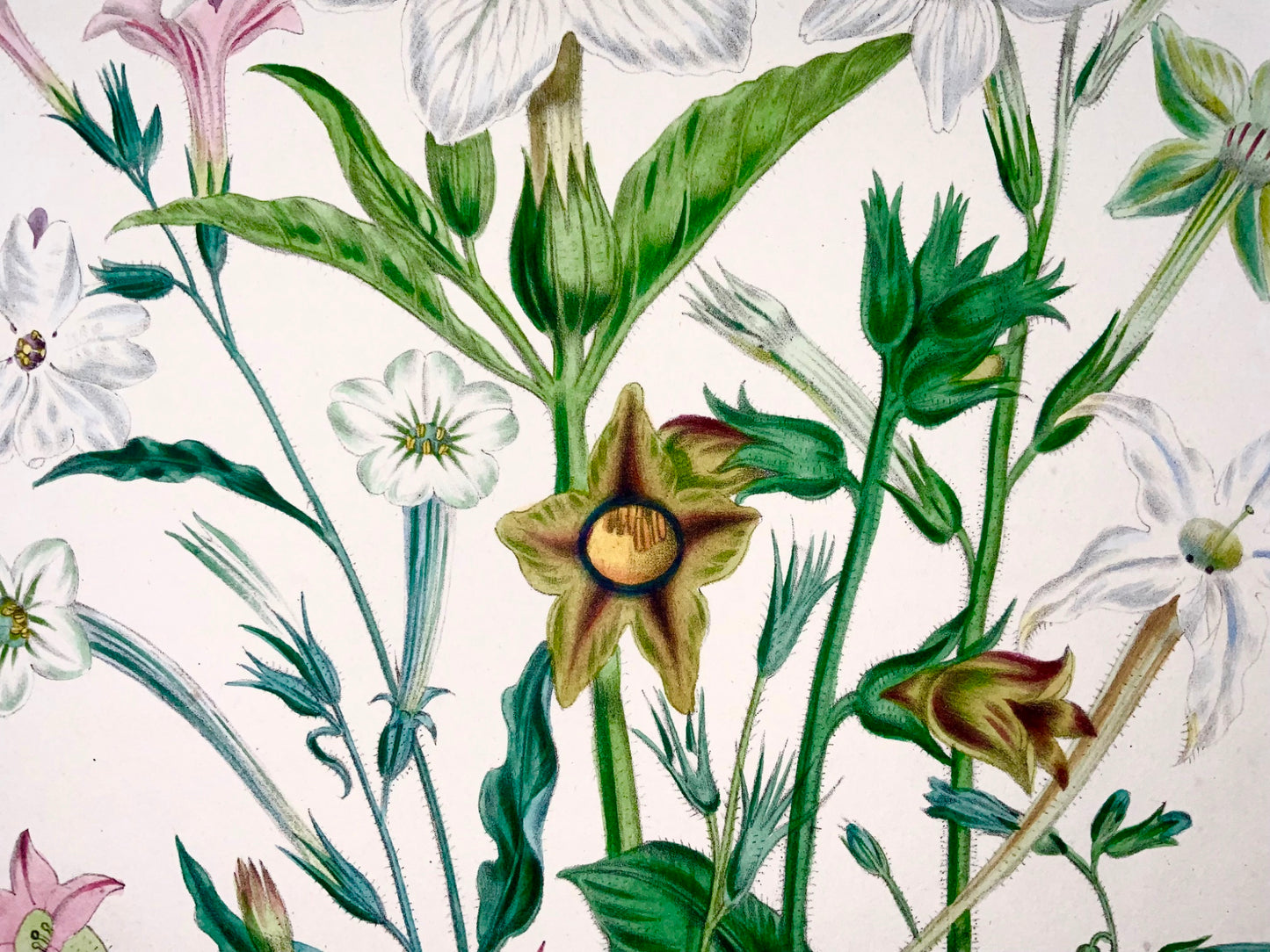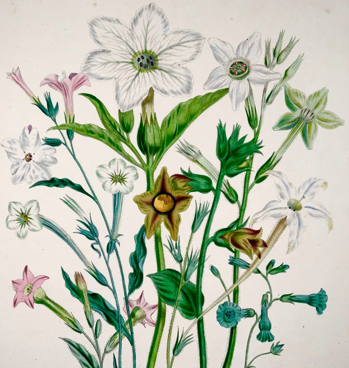 1841 Tobacco, Nicotiana, Jane Loudon, quarto, hand coloured lithograph