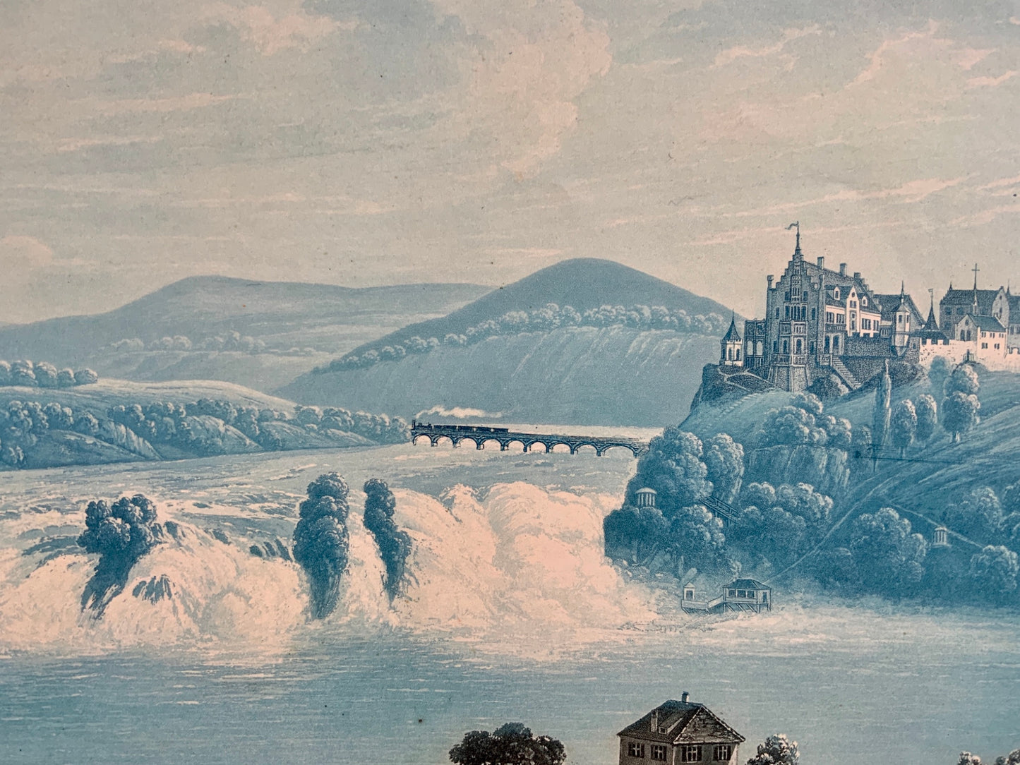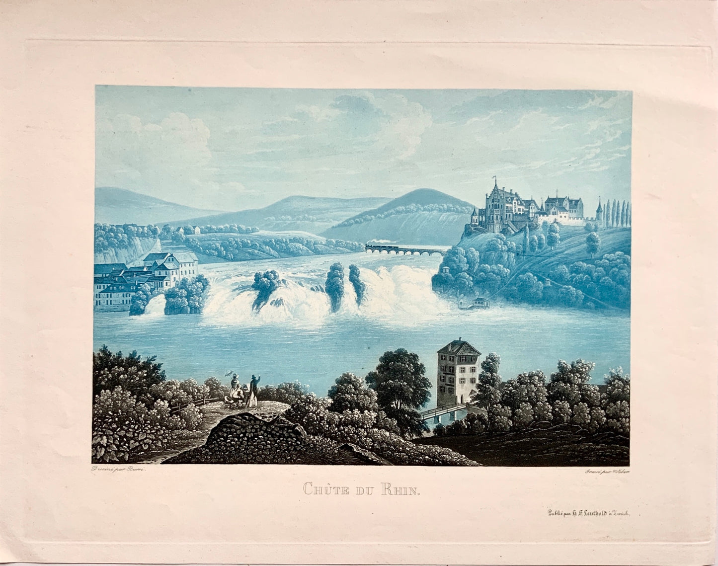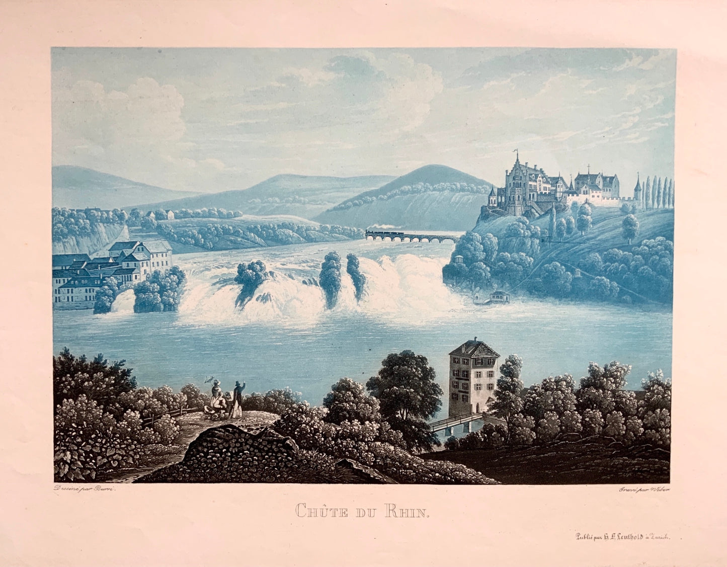 1850 Weber after Burri - RHINEFALLS SCHAFFHAUSEN - large aquatinta 36.6 cm Switzerland