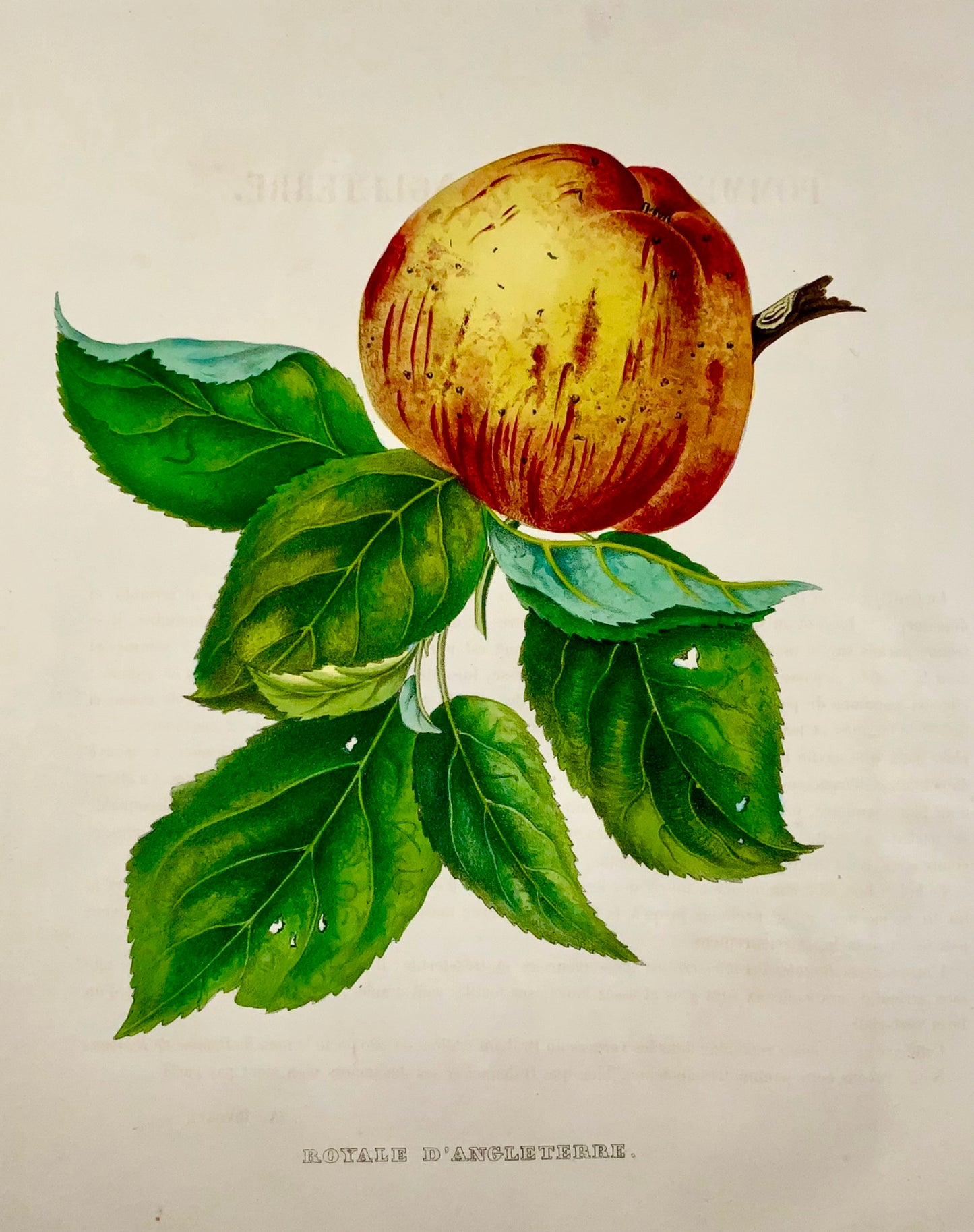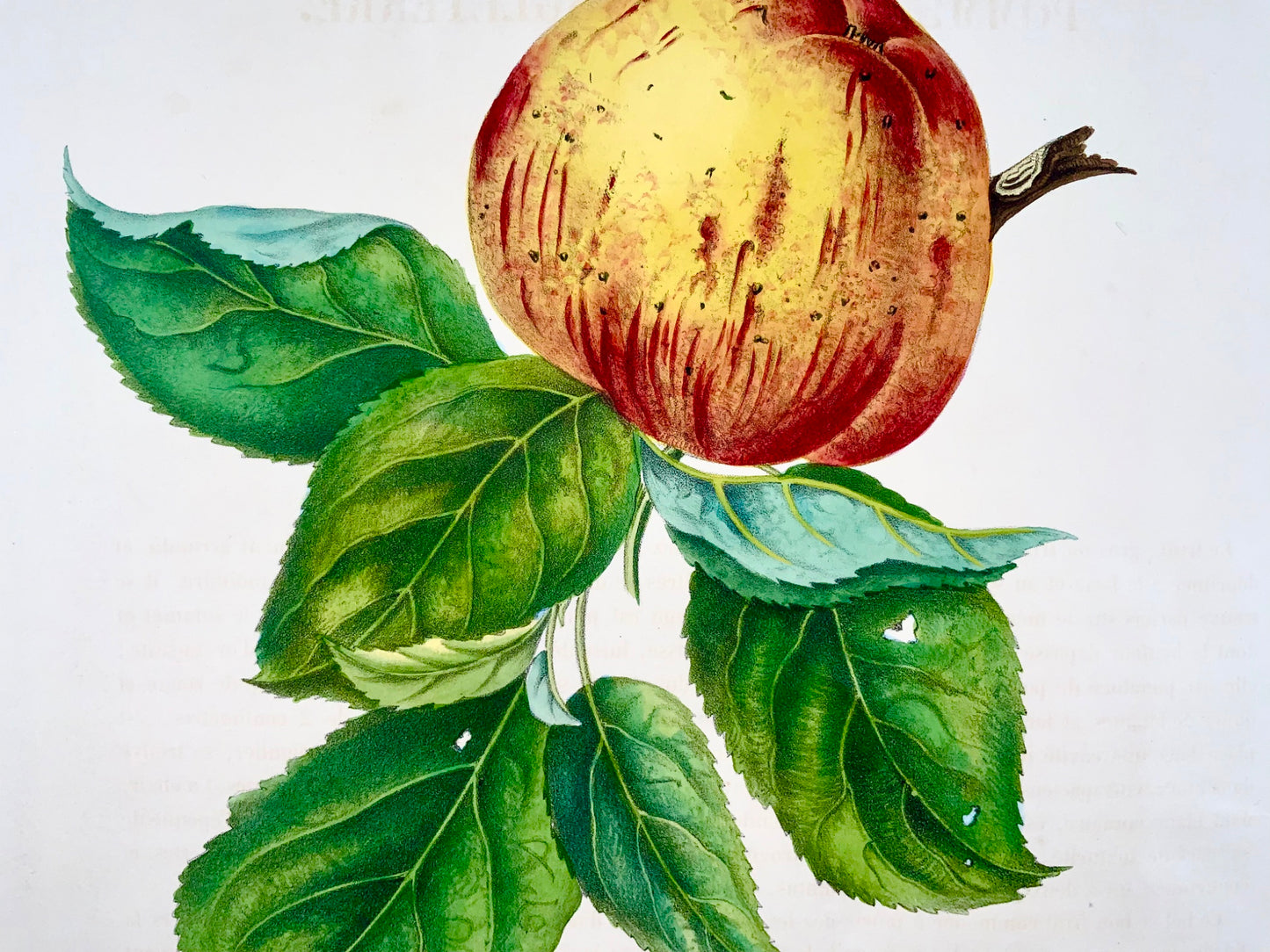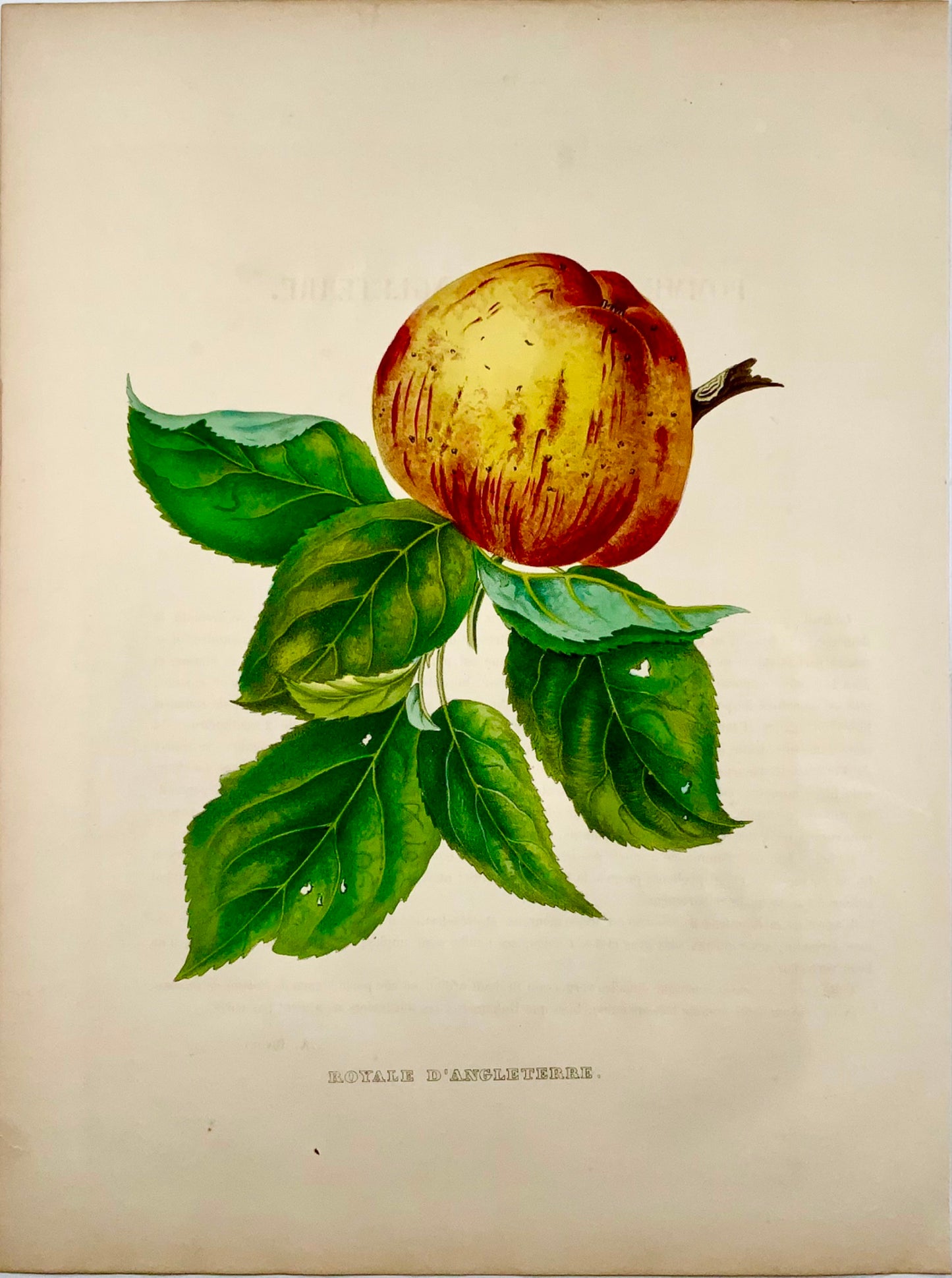 1853 A. Bivot; Pomology, English Royal Apple, Fruit, 35cm fine hand colour