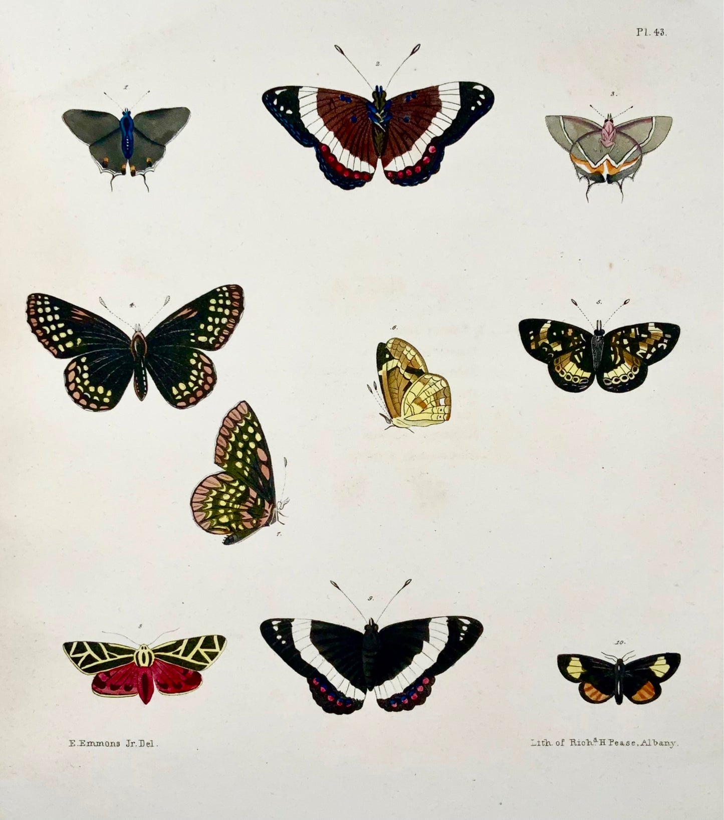 1854 Pease lith; Emmons - Butterflies Phaeton - hand coloured stone lithograph