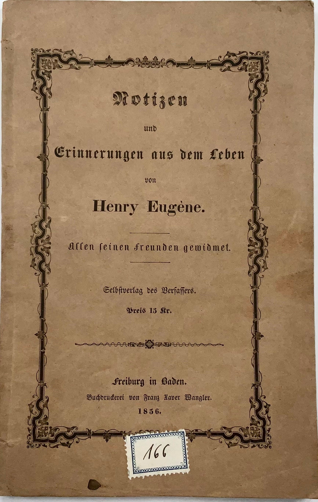 29.5 cm. Freiburg in Baden, printed by F.X. Wangler, 1856.