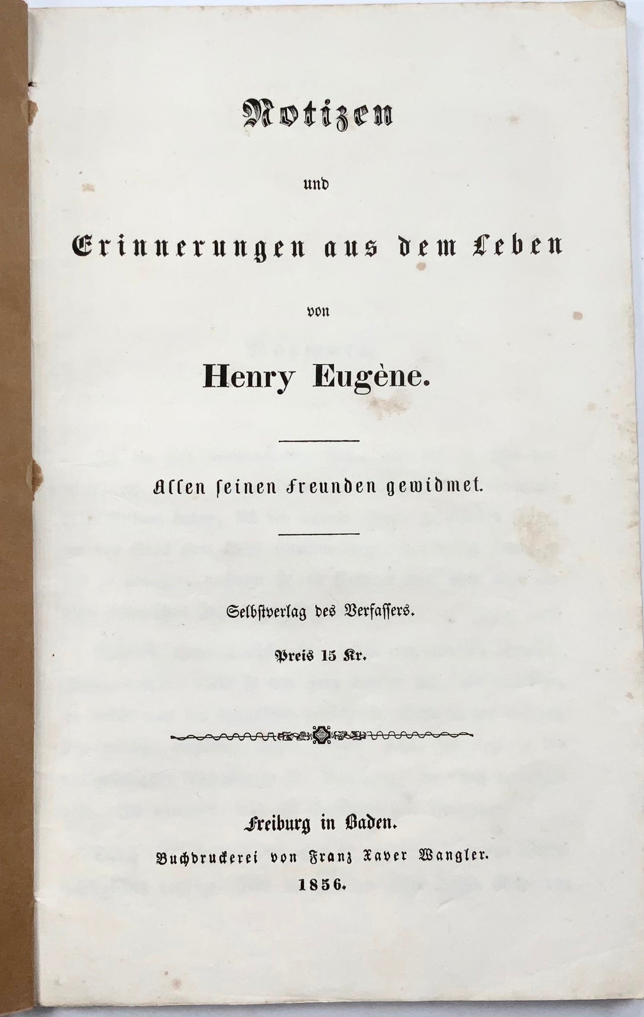 Notizen und Erinnerungen aus dem Leben. Allen seinen Freunden gewidmet. [Notes and Memories from my Life. Dedicated to all of his Friends.]